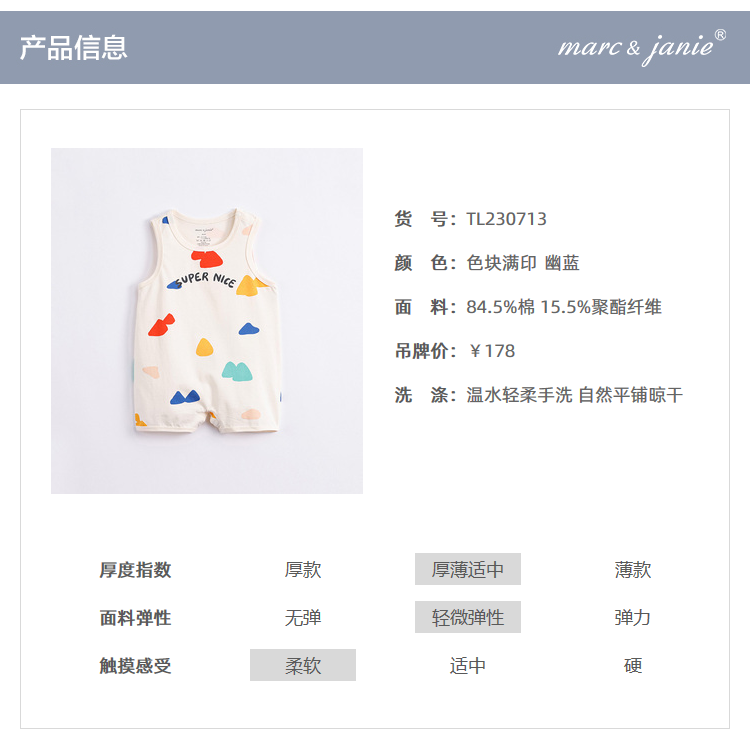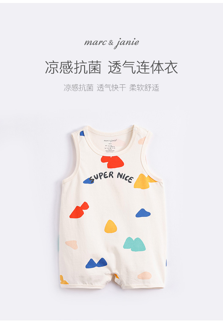 【科技凉感】马克珍妮夏装 男宝宝趣味图案背心连体衣230713