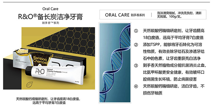 R&O牙膏 备长炭去渍美白口气清新防牙周敏感牙膏100g 临期产品,介意慎拍 (限用日期最早为2024.11.16)
