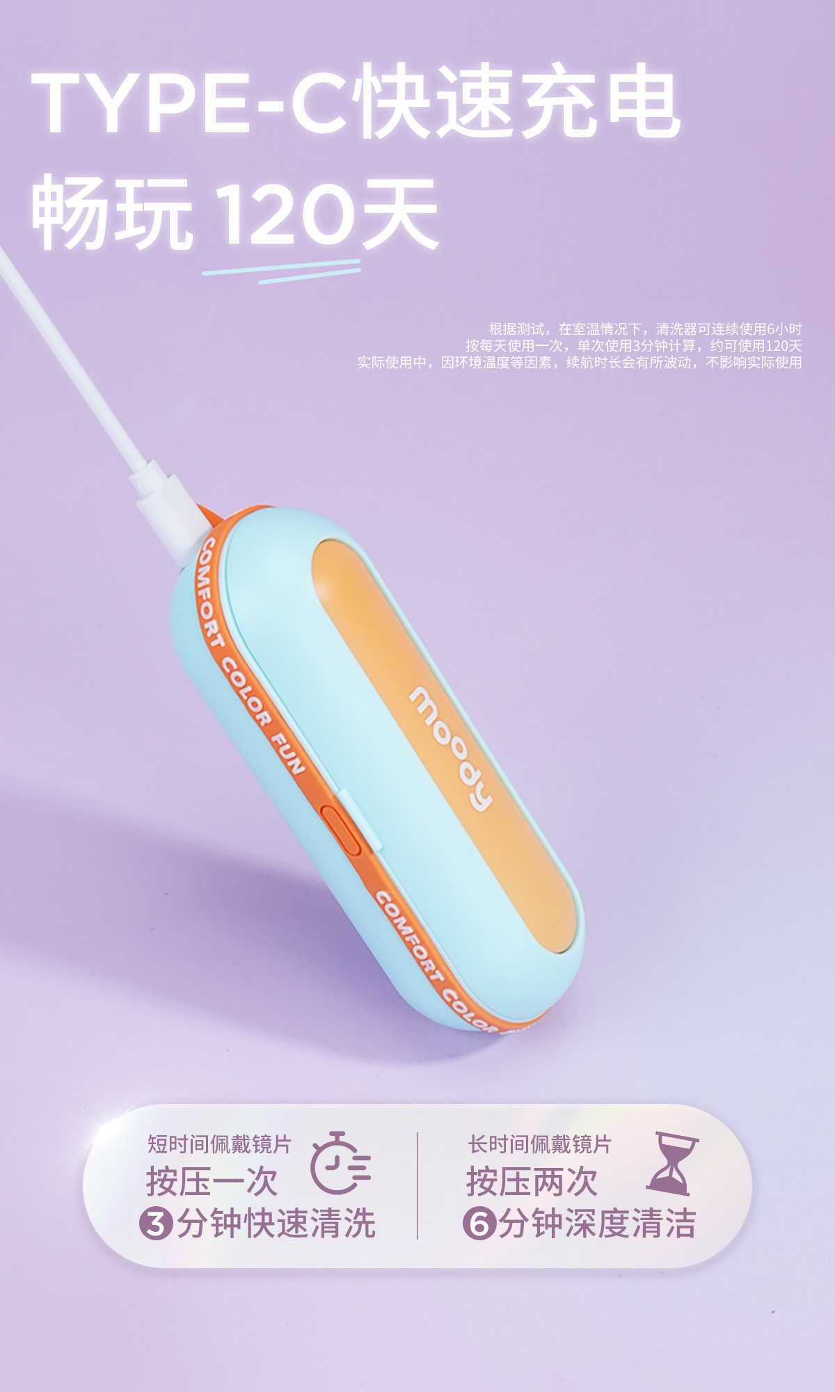 【便携充电款】moody时空胶囊隐形眼镜电动清洗器自动便携可充电一体式收纳