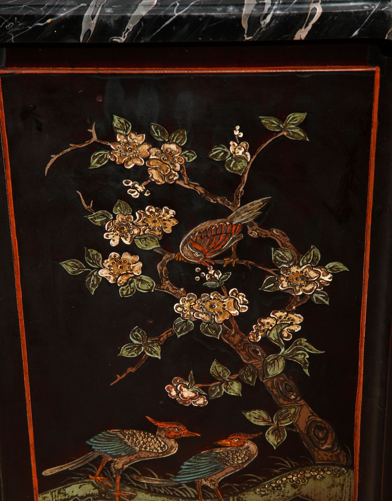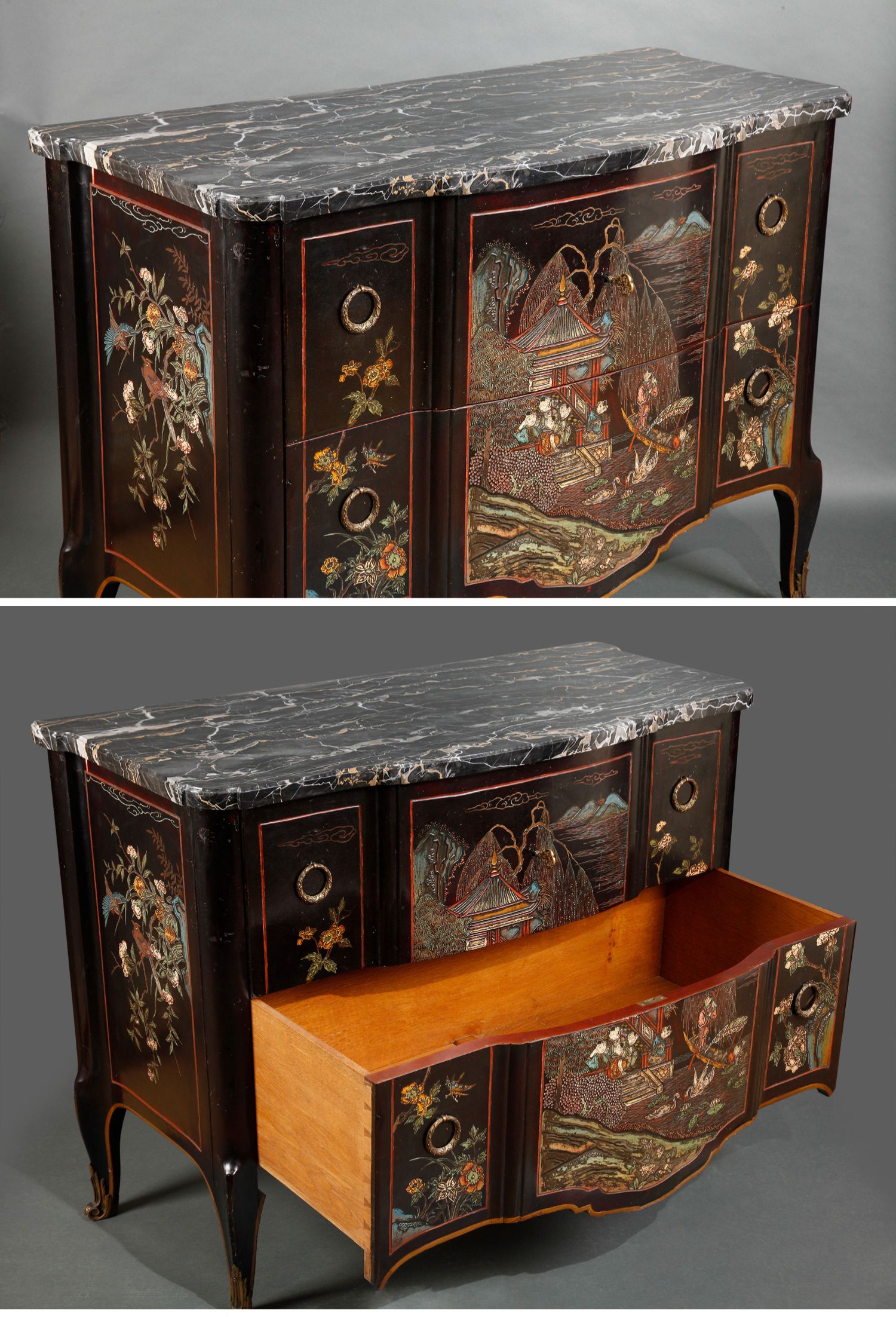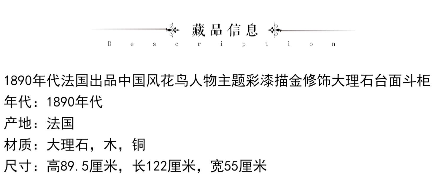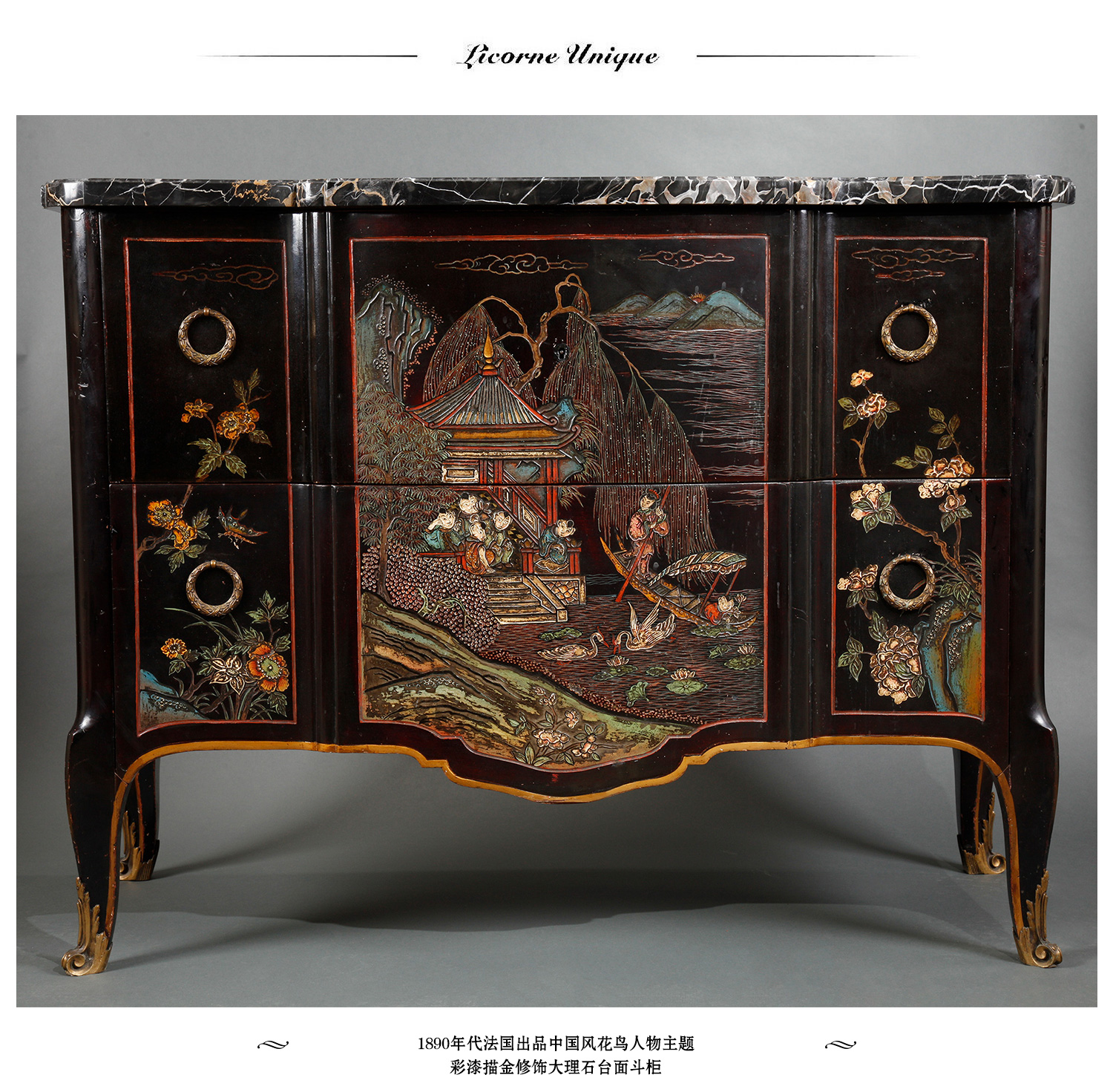 独角鹿西洋古董家具中国风花鸟人物彩漆描金大理石台面斗柜边柜