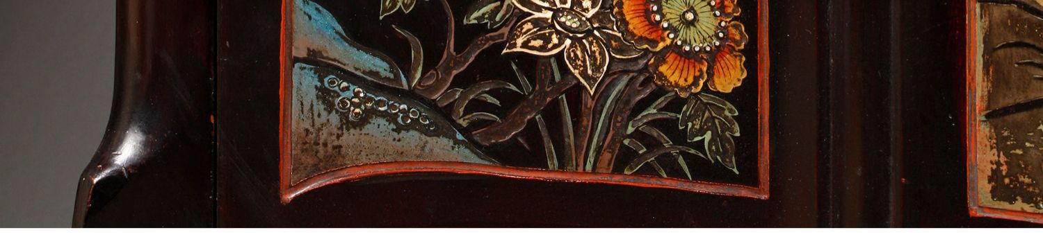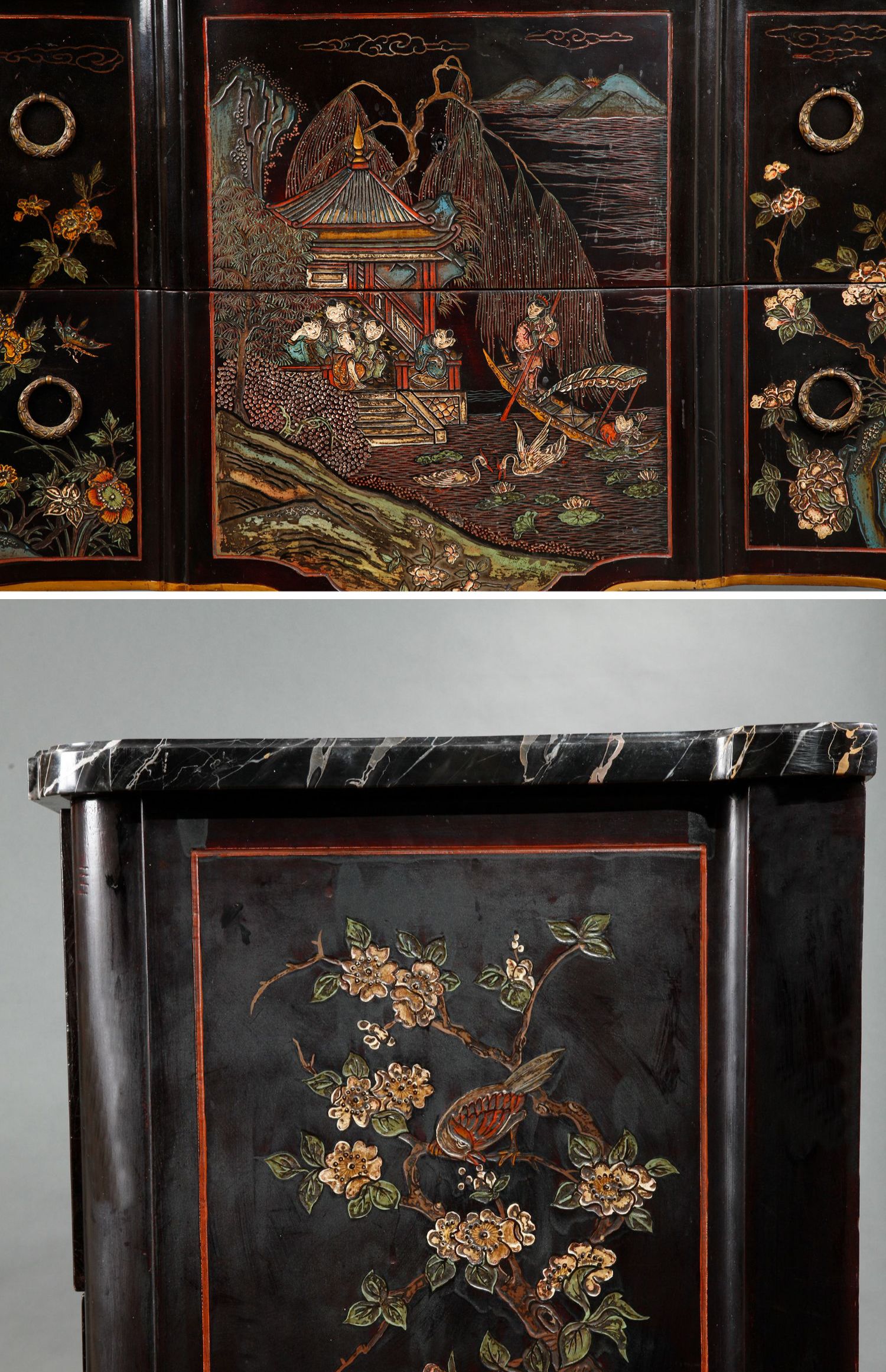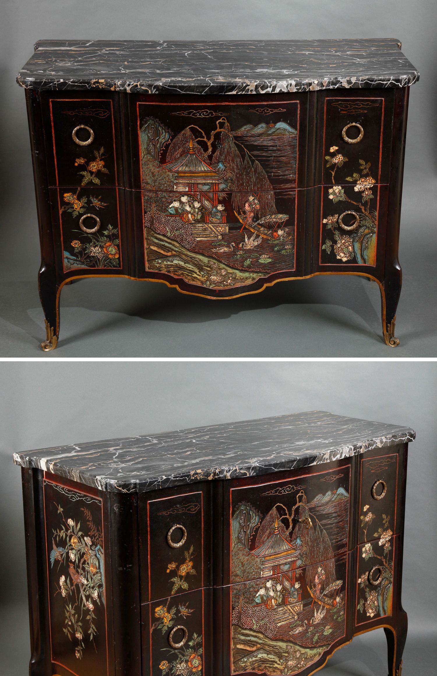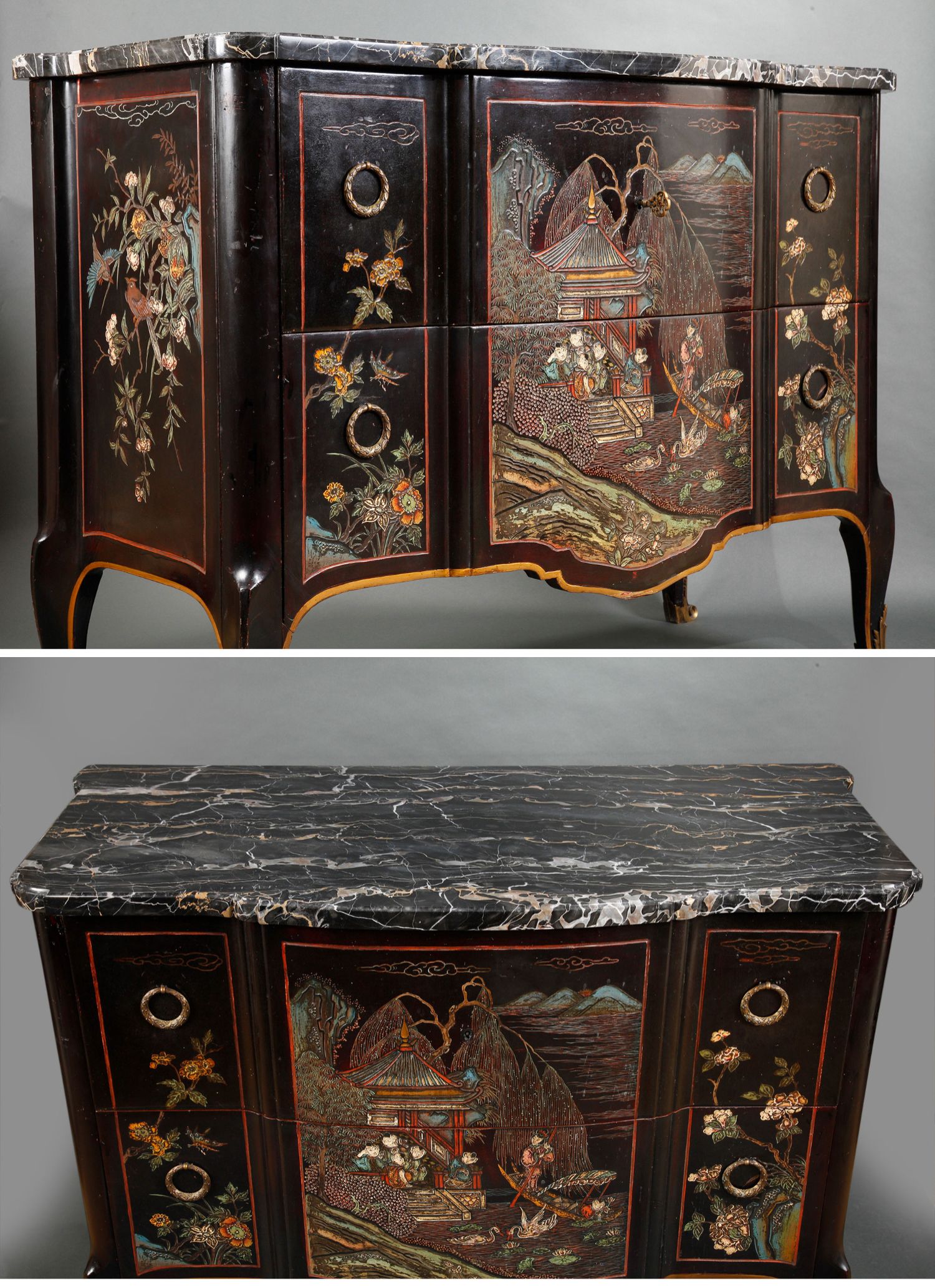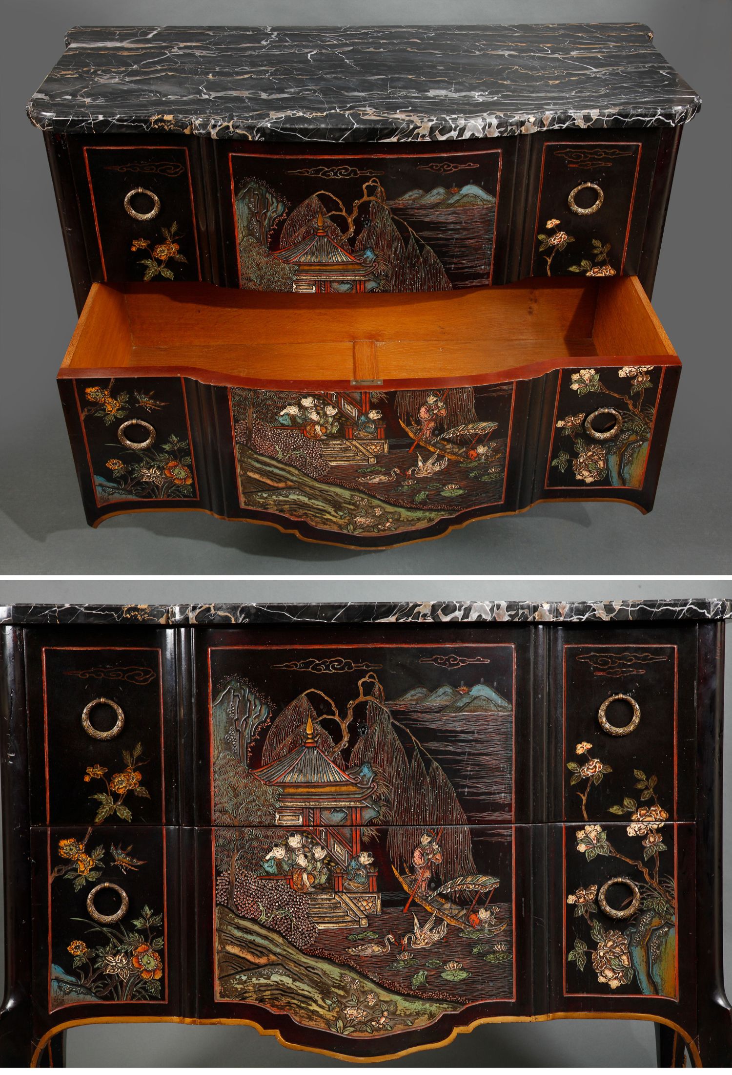 独角鹿西洋古董家具中国风花鸟人物彩漆描金大理石台面斗柜边柜