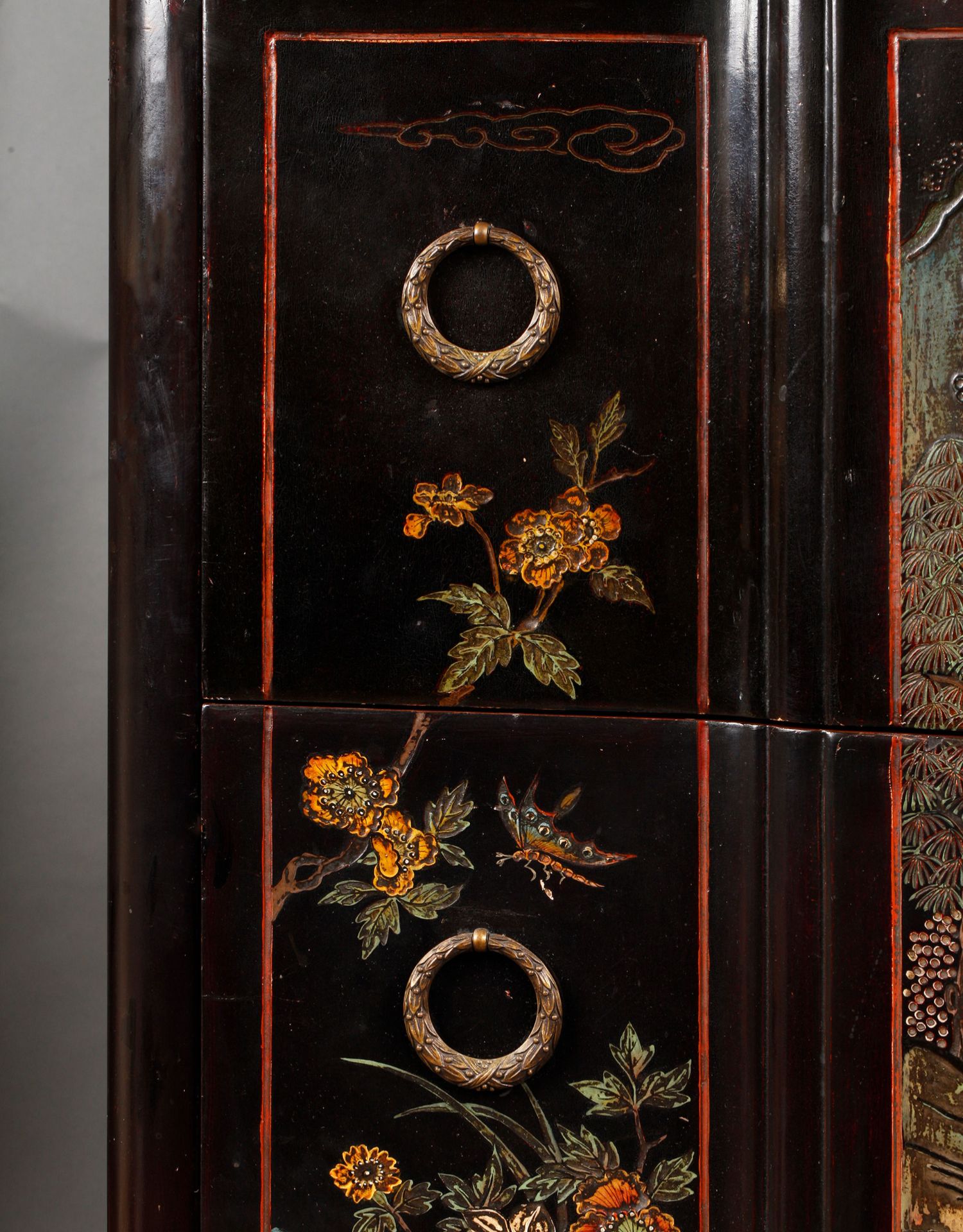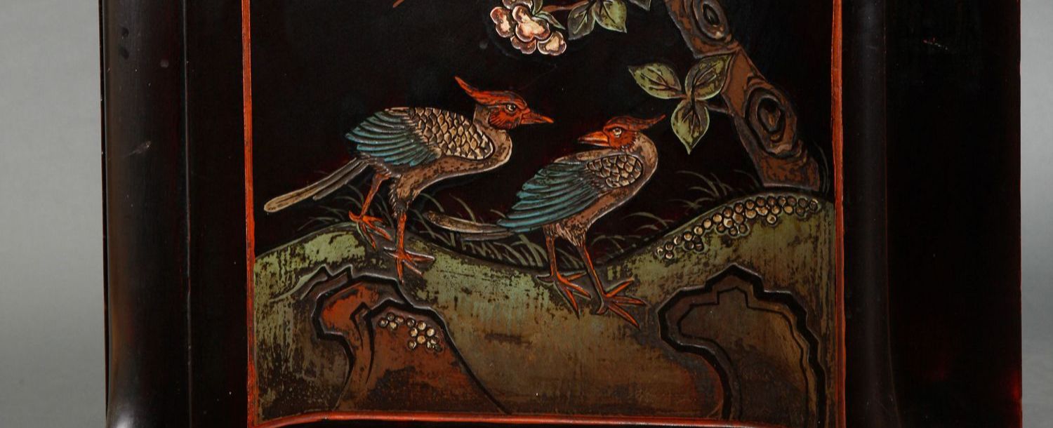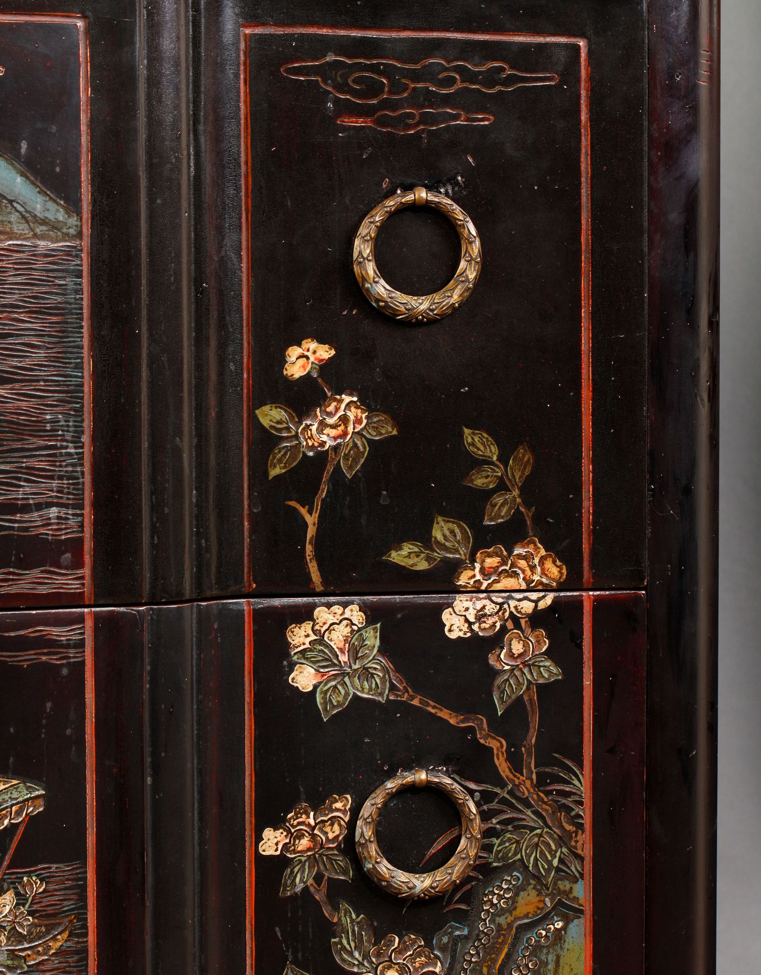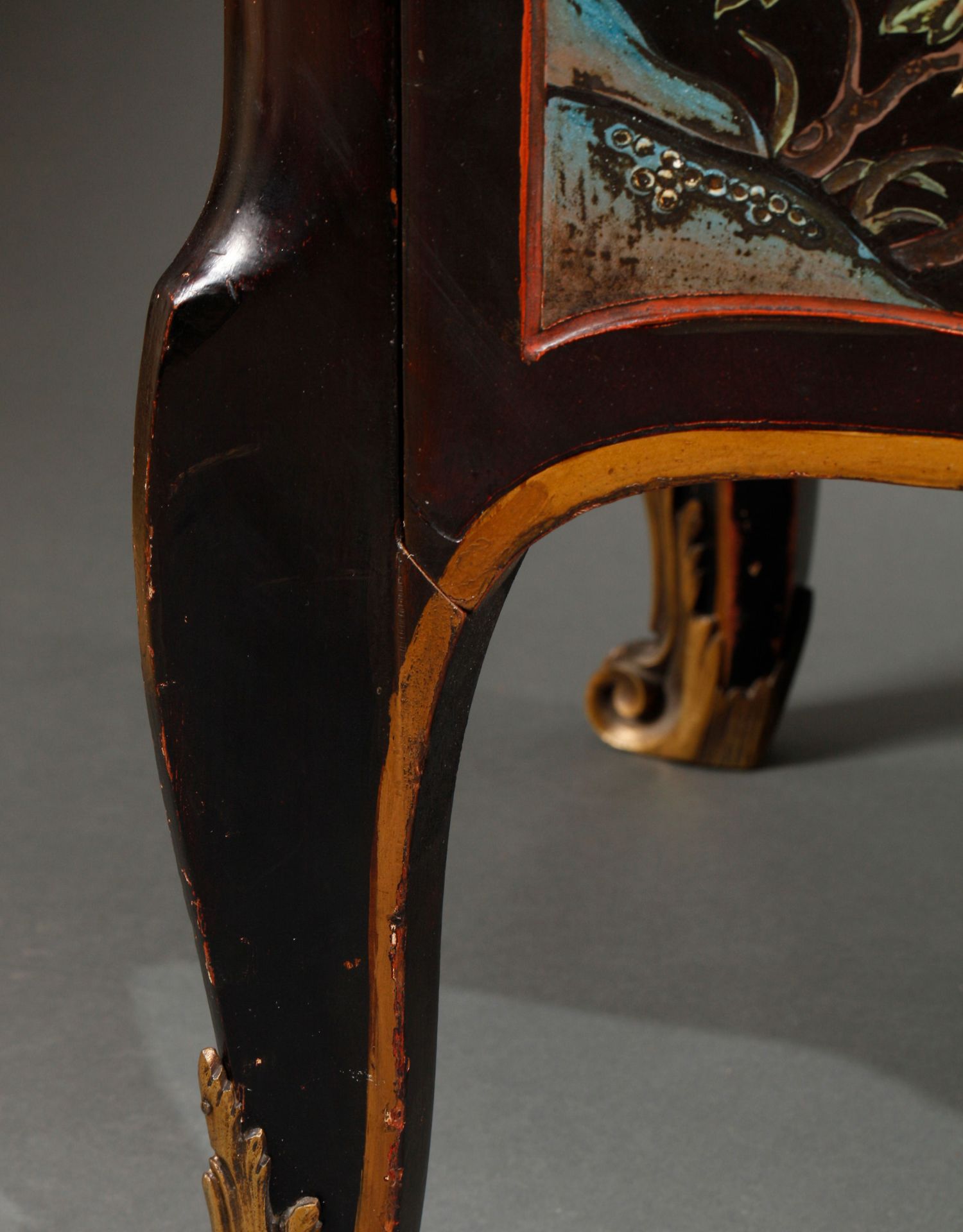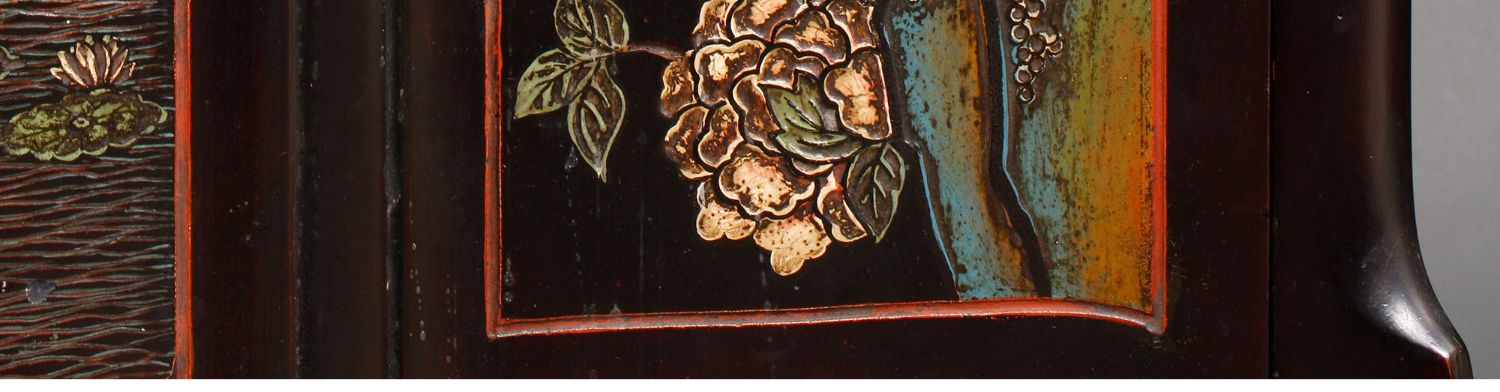 独角鹿西洋古董家具中国风花鸟人物彩漆描金大理石台面斗柜边柜