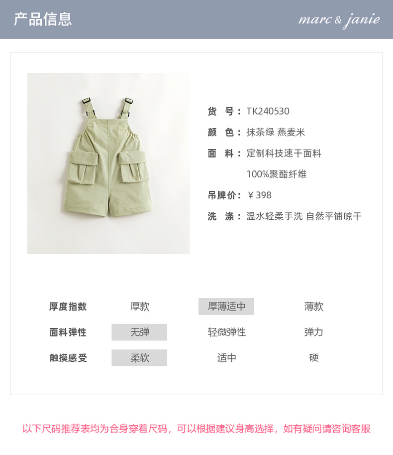 [吸湿速干]马克珍妮女童城市户外工装背带裤2024年夏装新款240530
