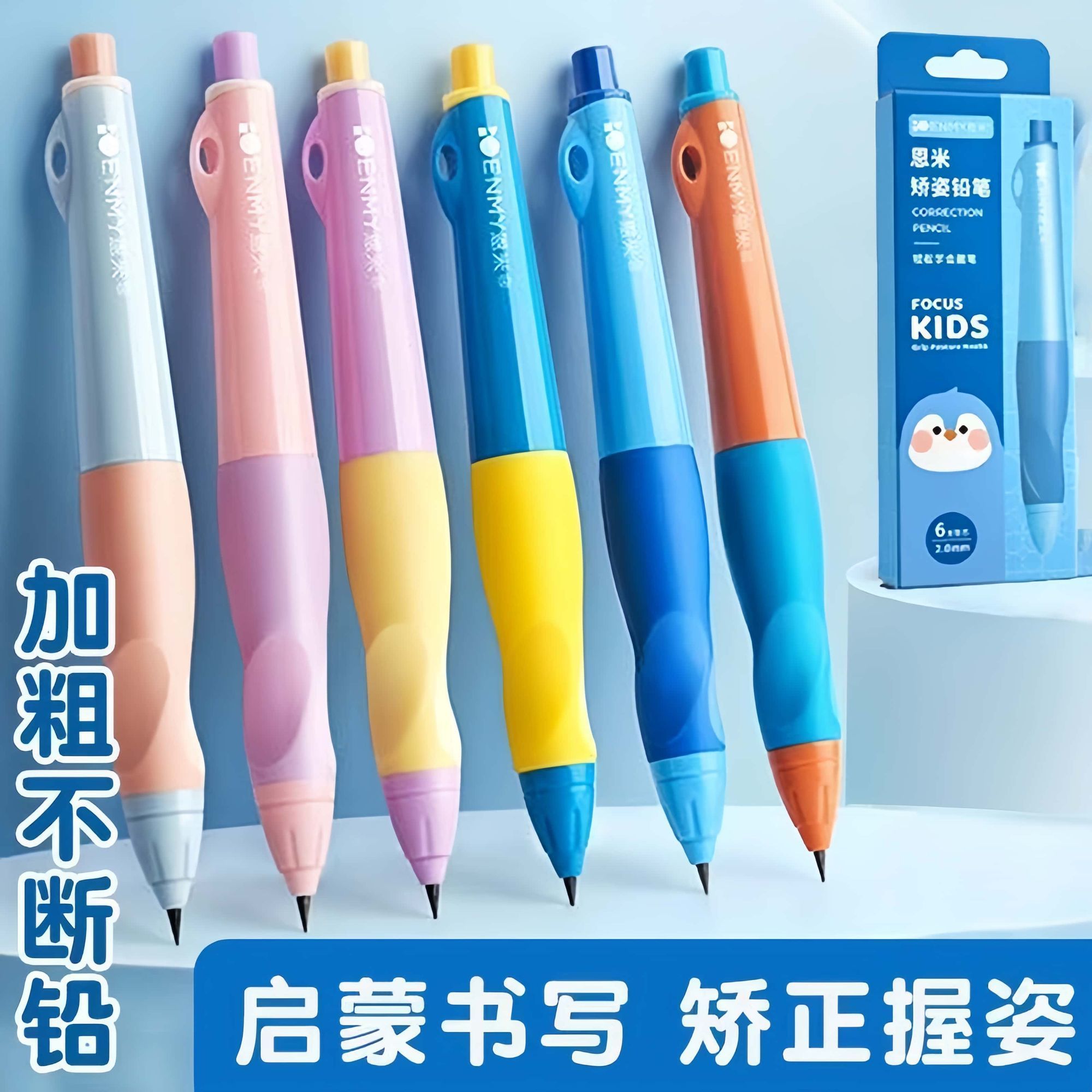 开学季福利!恩米自动正姿铅笔2.0小学生无毒一二年级自动铅洞洞高颜值幼儿园永恒hb自动笔儿童按动活动控笔训练粗铅笔