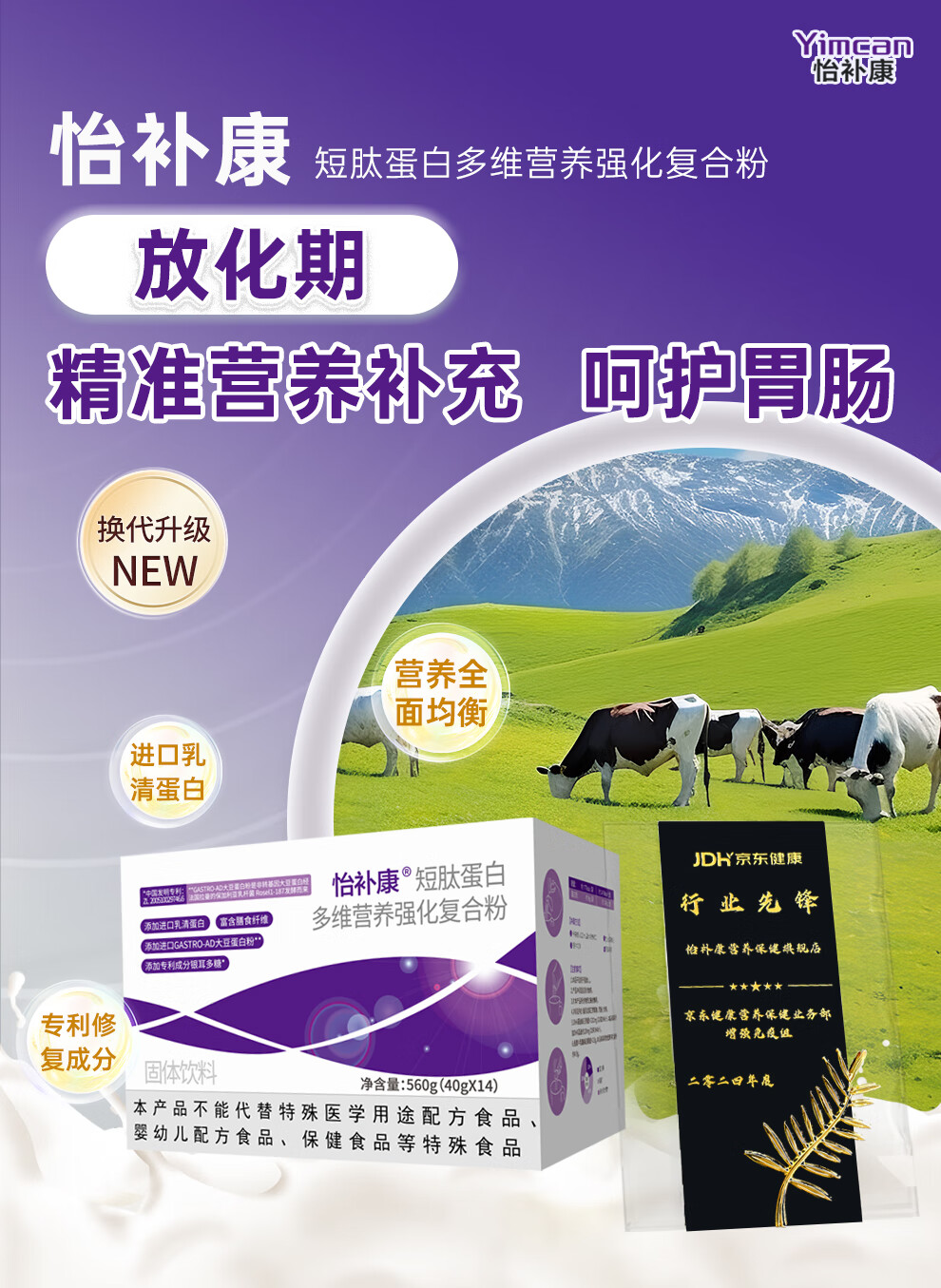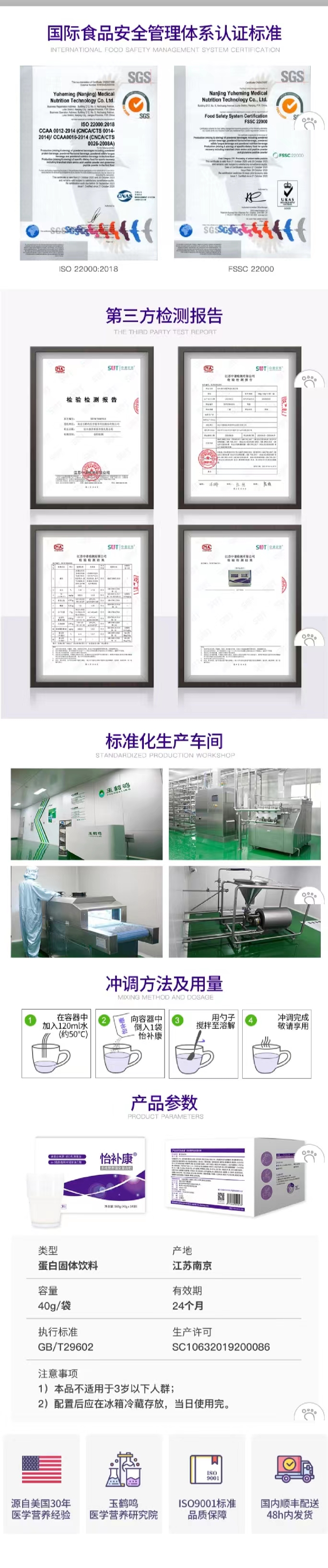 国产怡补康 营养品 粉素专用蛋白粉 40g*14袋/盒