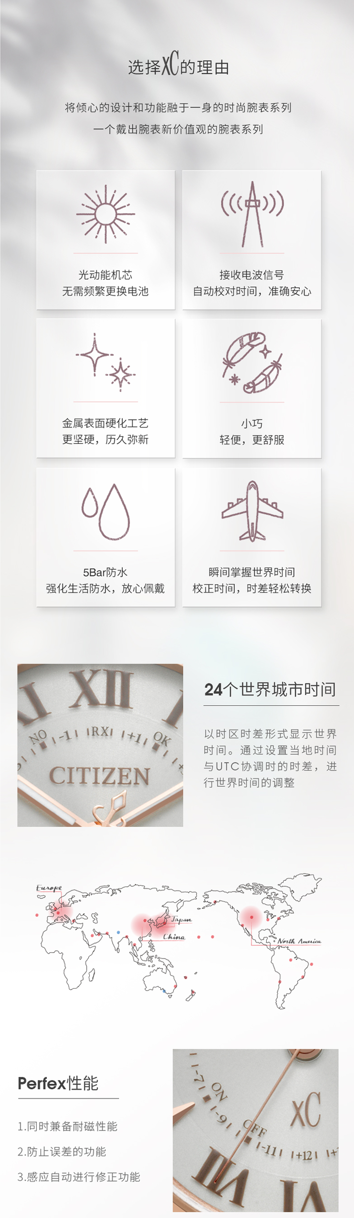 西铁城日本官方正品光动能万年历多局电波对时舒博钛樱花粉红色女表ES9442-55A