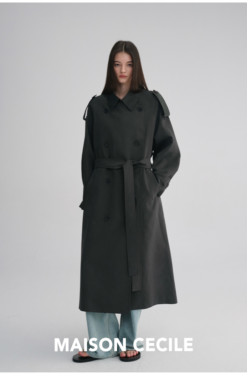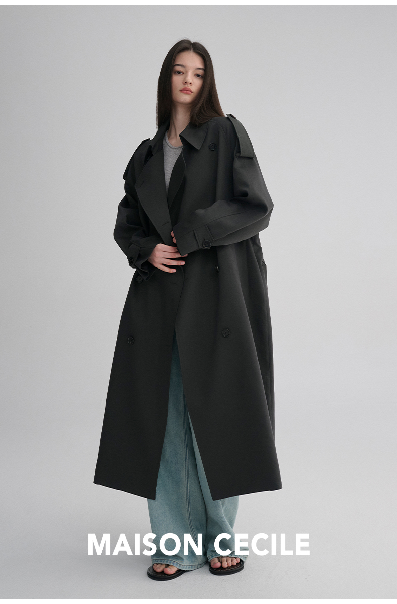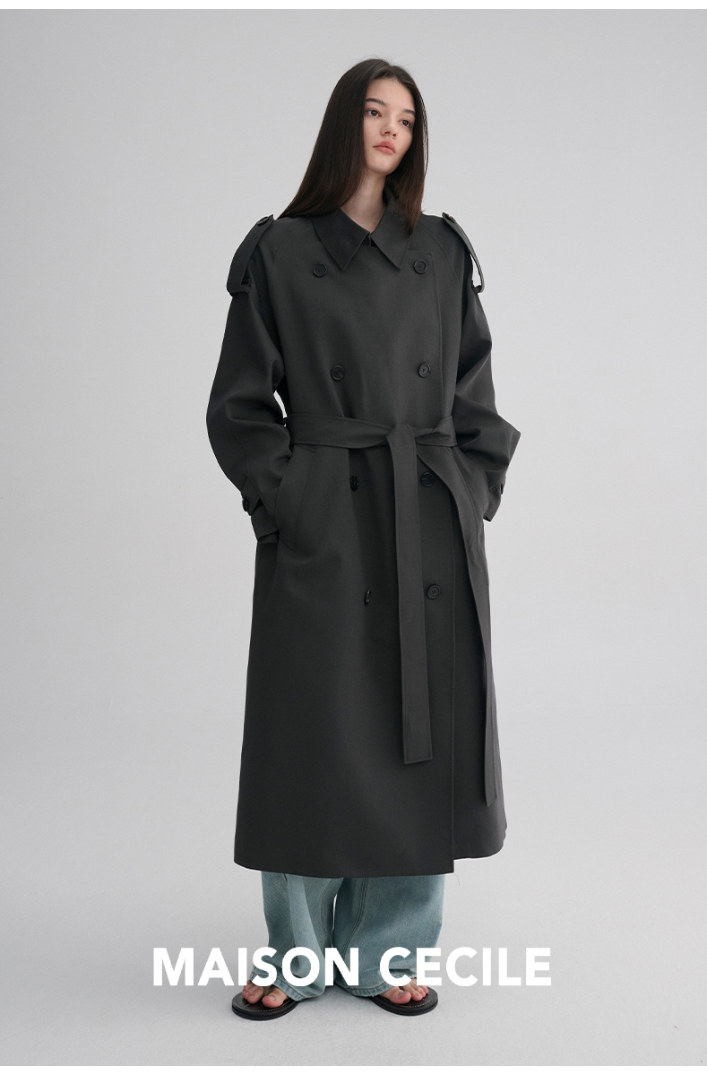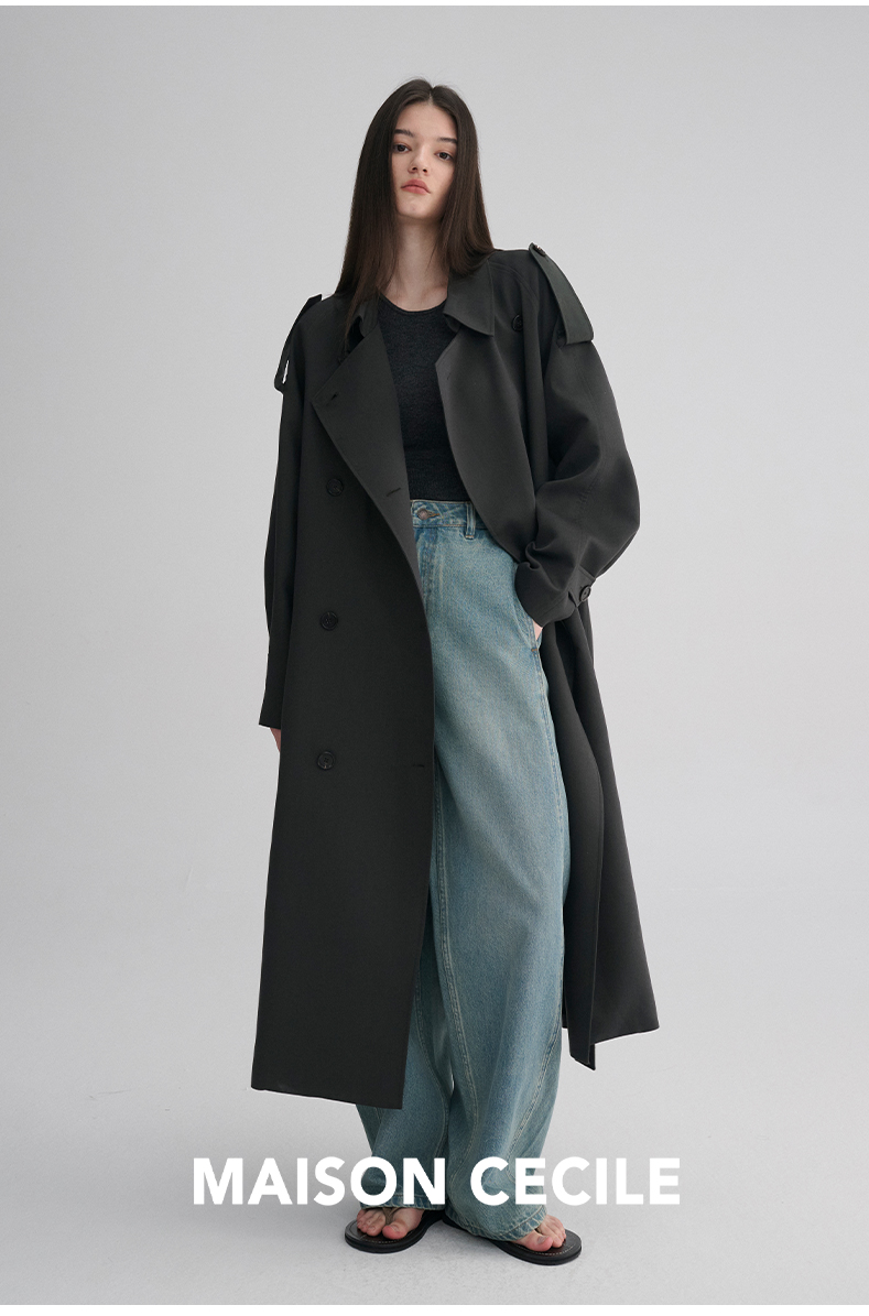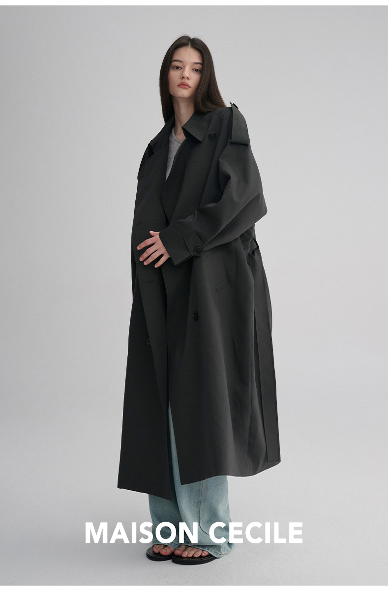 MAISON CECILE 两色|天丝羊毛抗皱垂感松弛廓形双排扣翻领长风衣