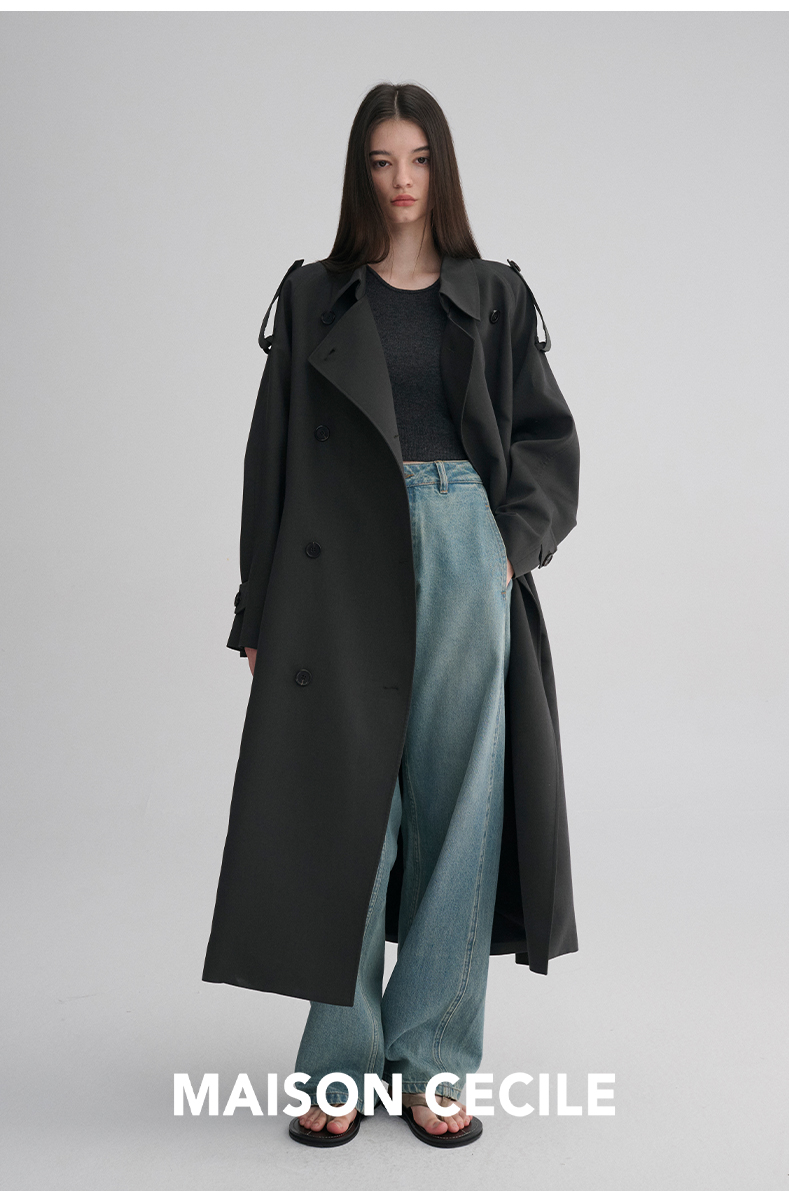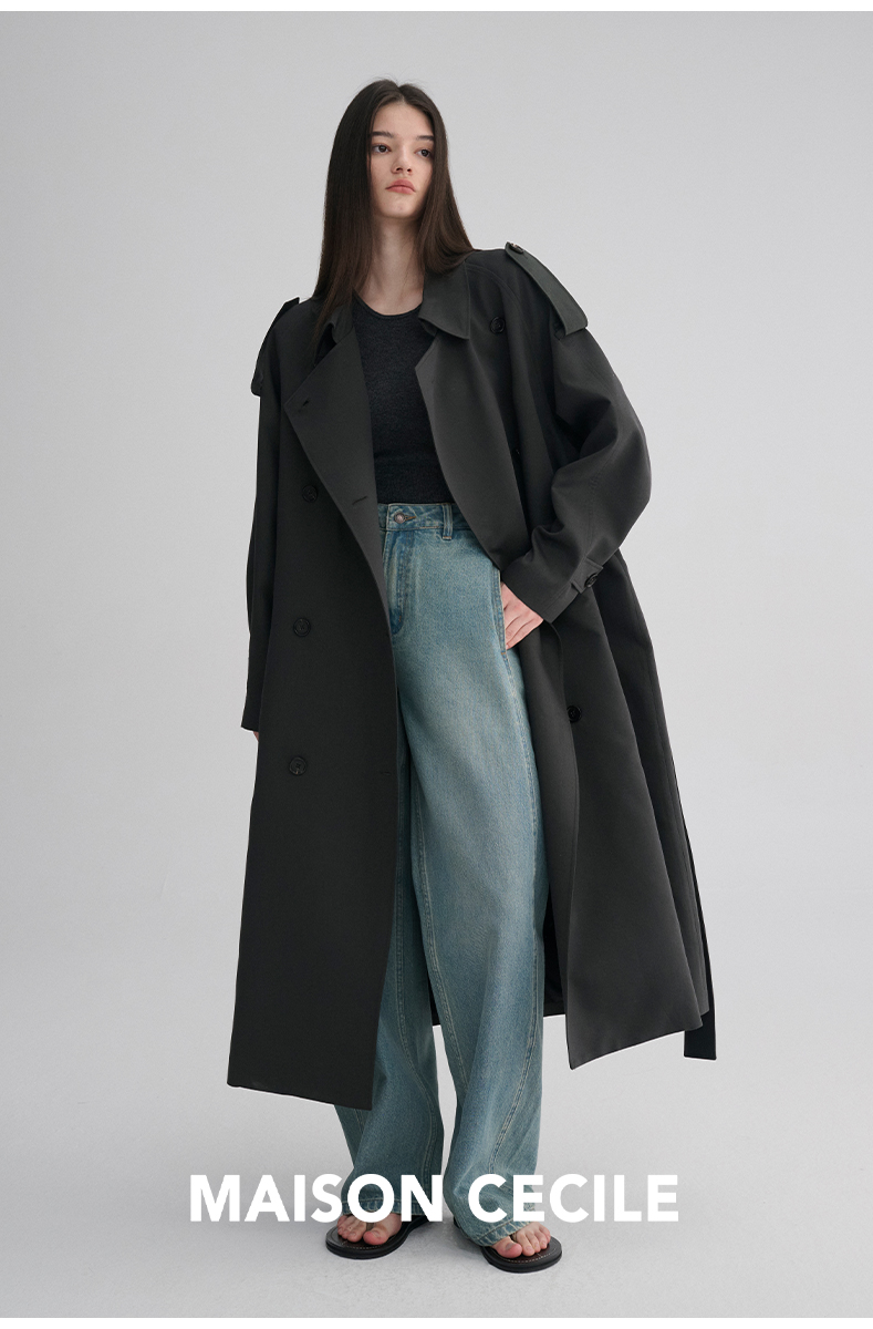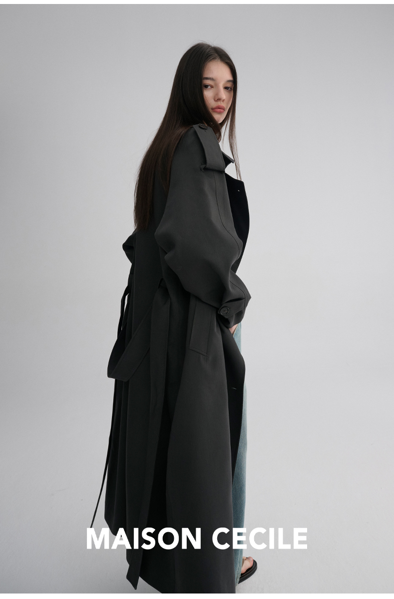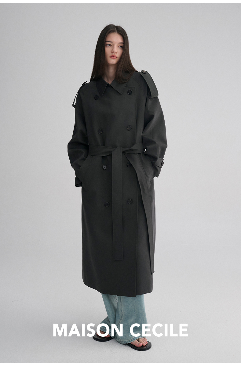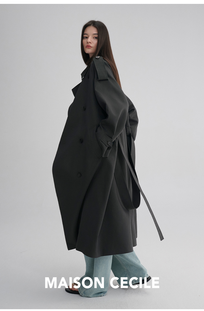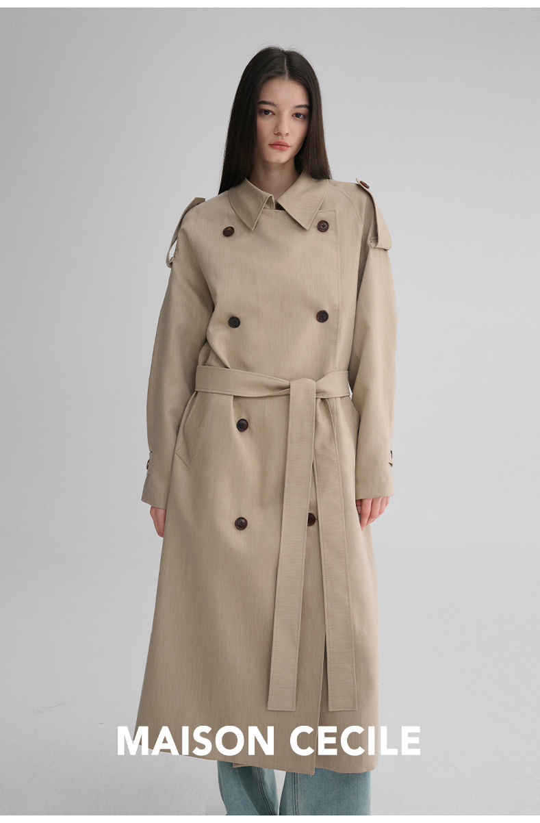 MAISON CECILE 两色|天丝羊毛抗皱垂感松弛廓形双排扣翻领长风衣