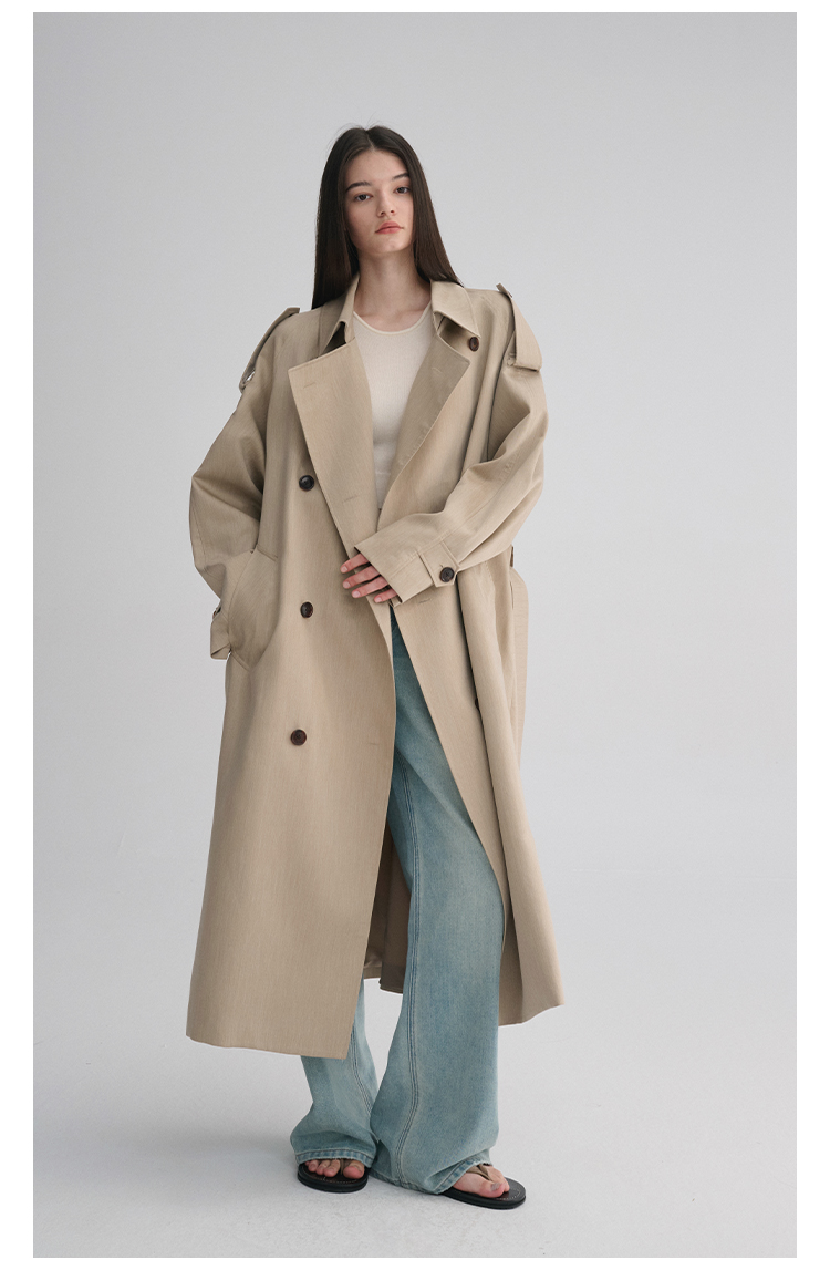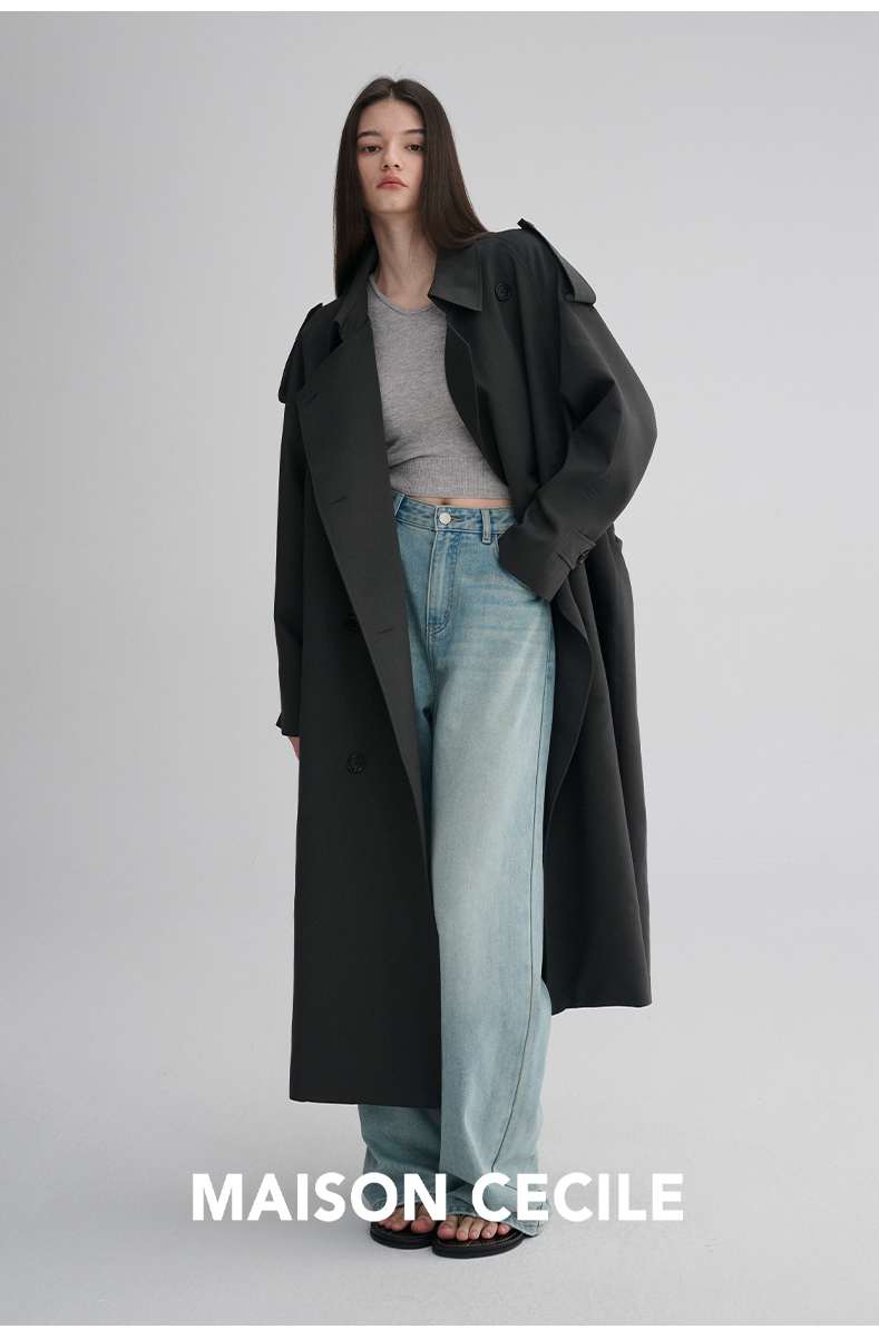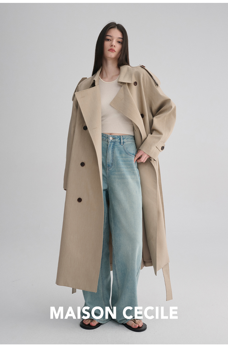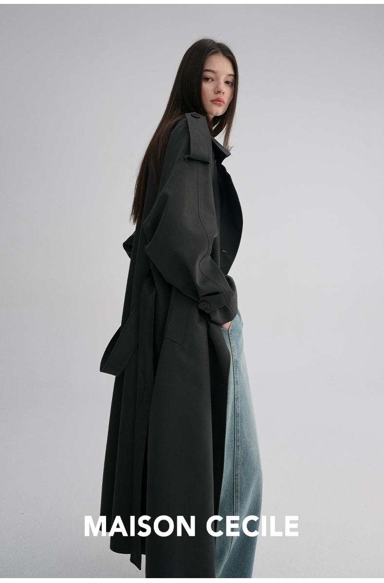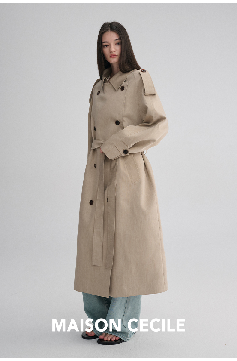 MAISON CECILE 两色|天丝羊毛抗皱垂感松弛廓形双排扣翻领长风衣