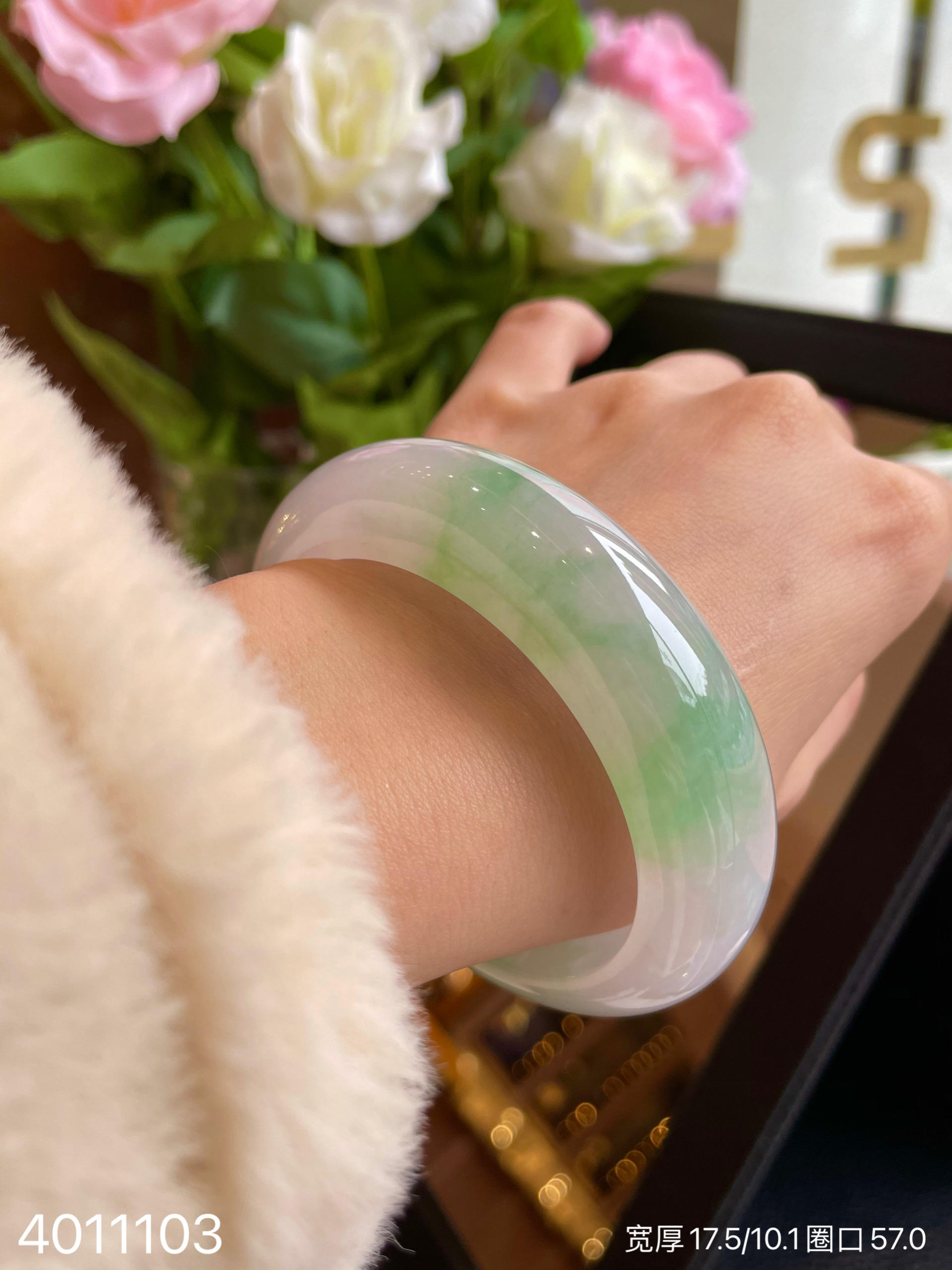 冰飘翠手镯【4011103】圈口57.0~具体价格微信咨询