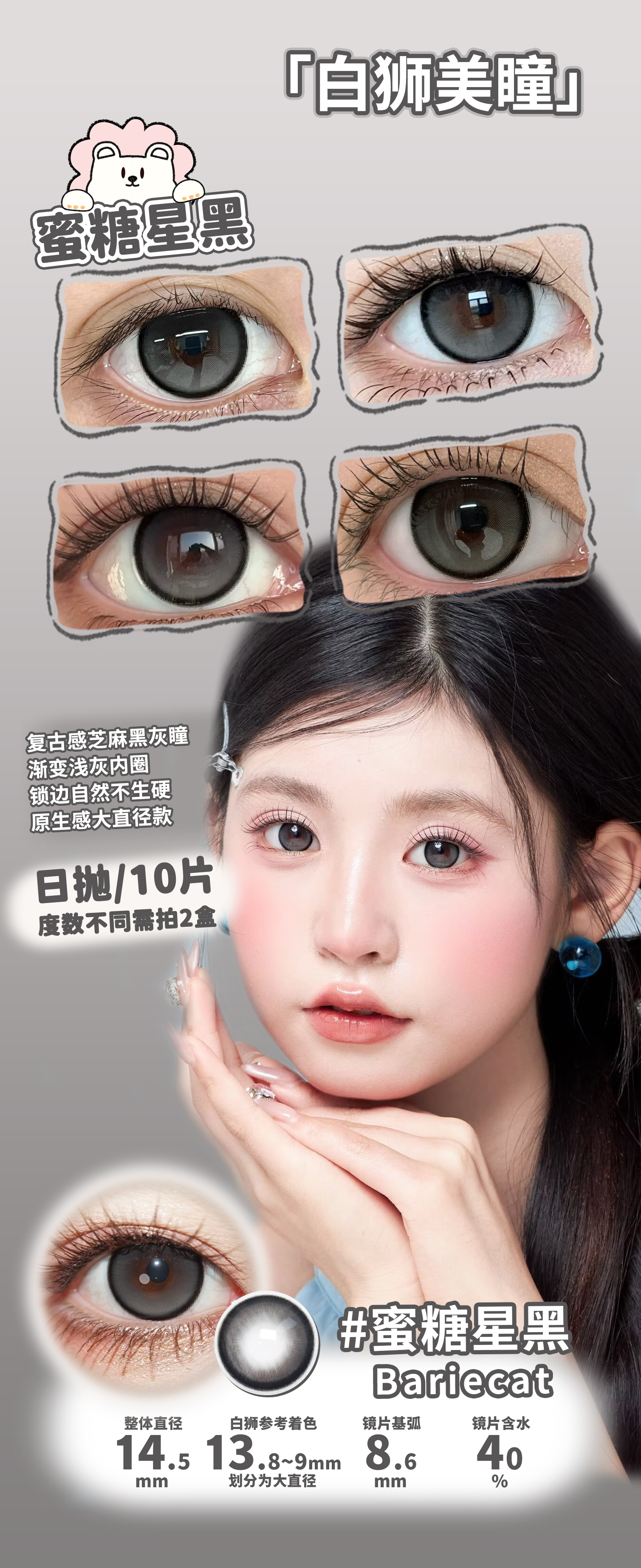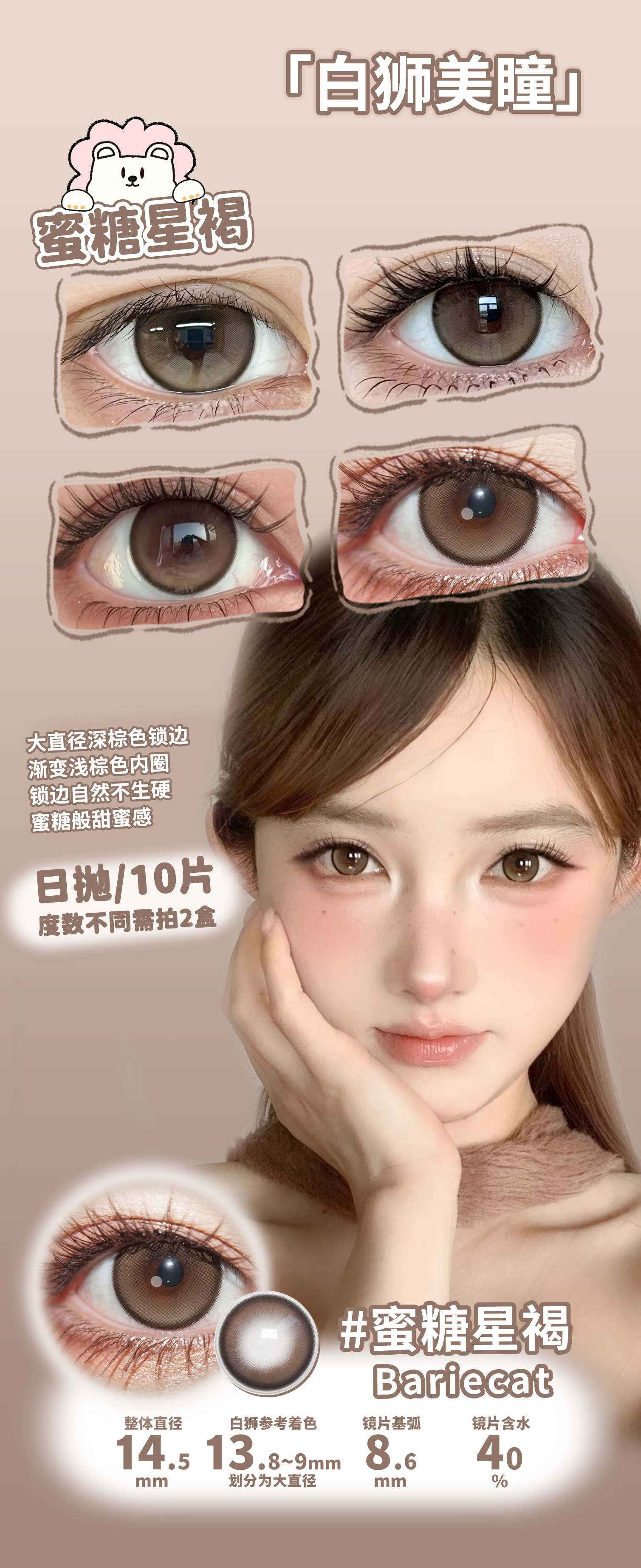 Bariecat日抛 · 蜜糖星褐&蜜糖星黑· 14.5mm白狮参考着色大直径 · 十片装