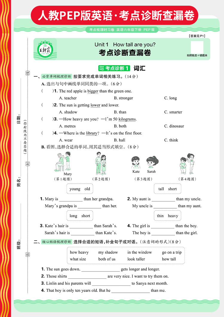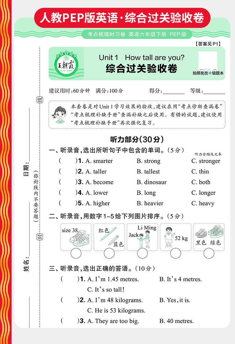 2026春考点梳理时习卷1-6年级(下册)语/数/英同步单元卷