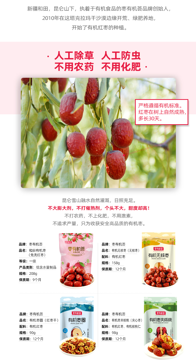 臻如意枣有机荟||新疆和田小枣系列 沙漠有机枣夹核桃去核枣圈新疆沙地树上吊干和田小枣无核枣夹核桃香甜不腻