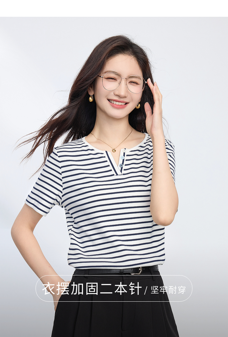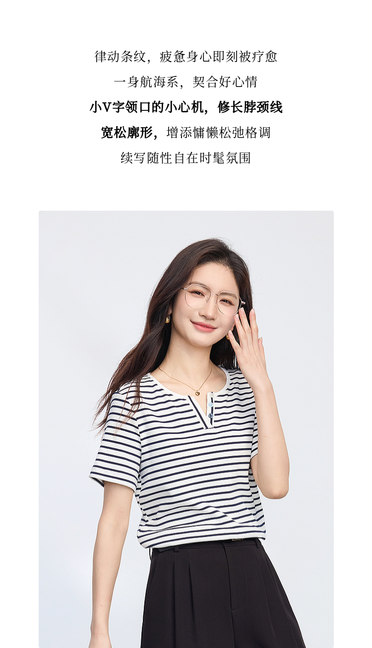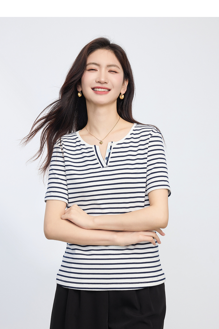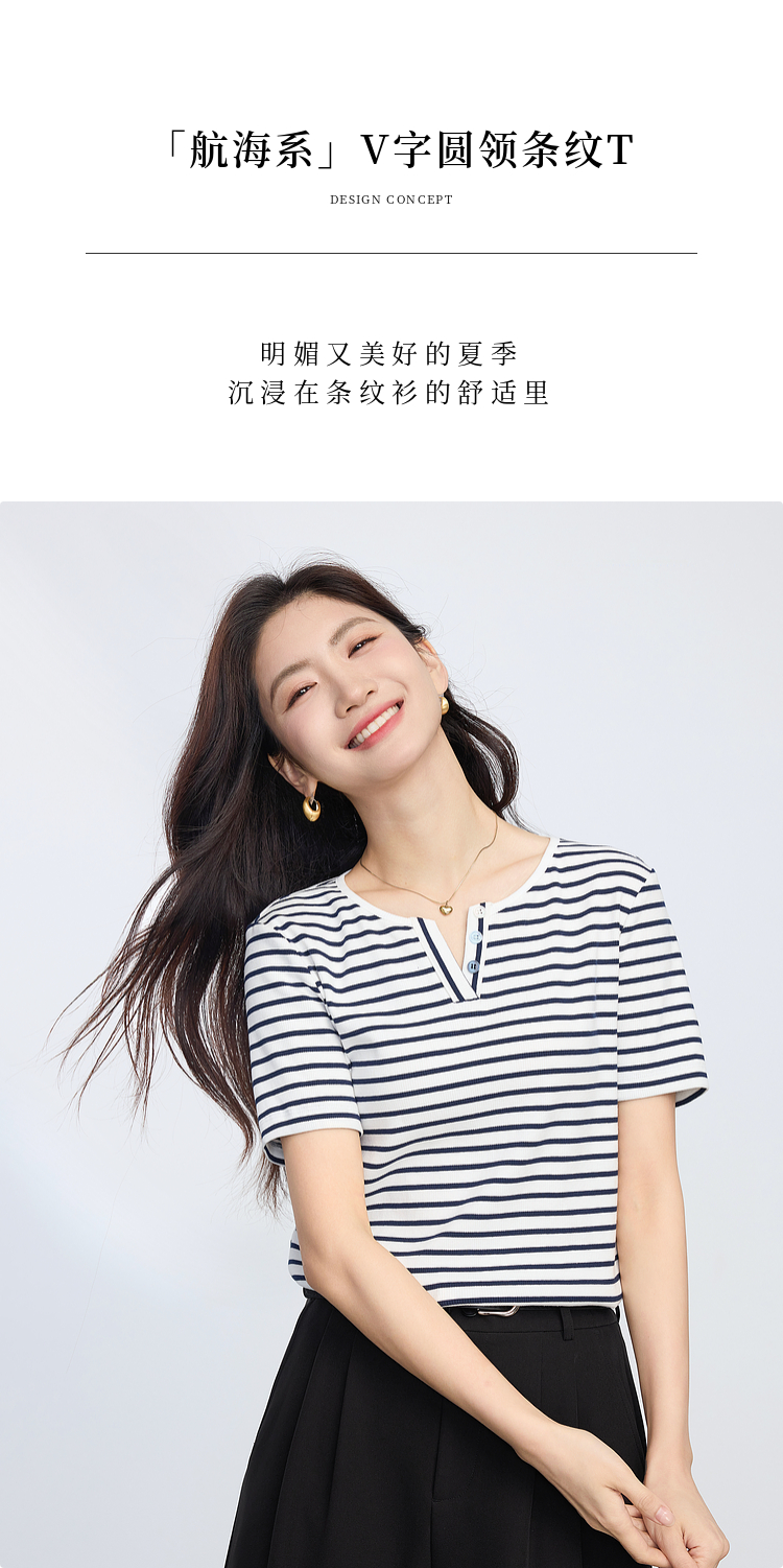 熙世界复古撞色条纹T恤女短袖2025夏季新款时尚宽松休闲百搭上衣