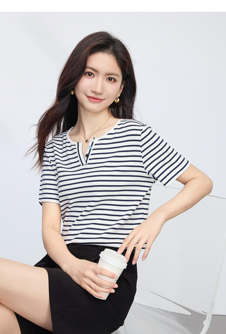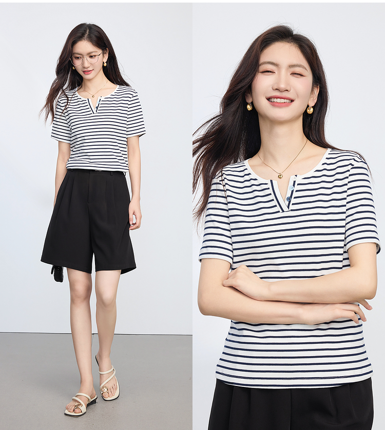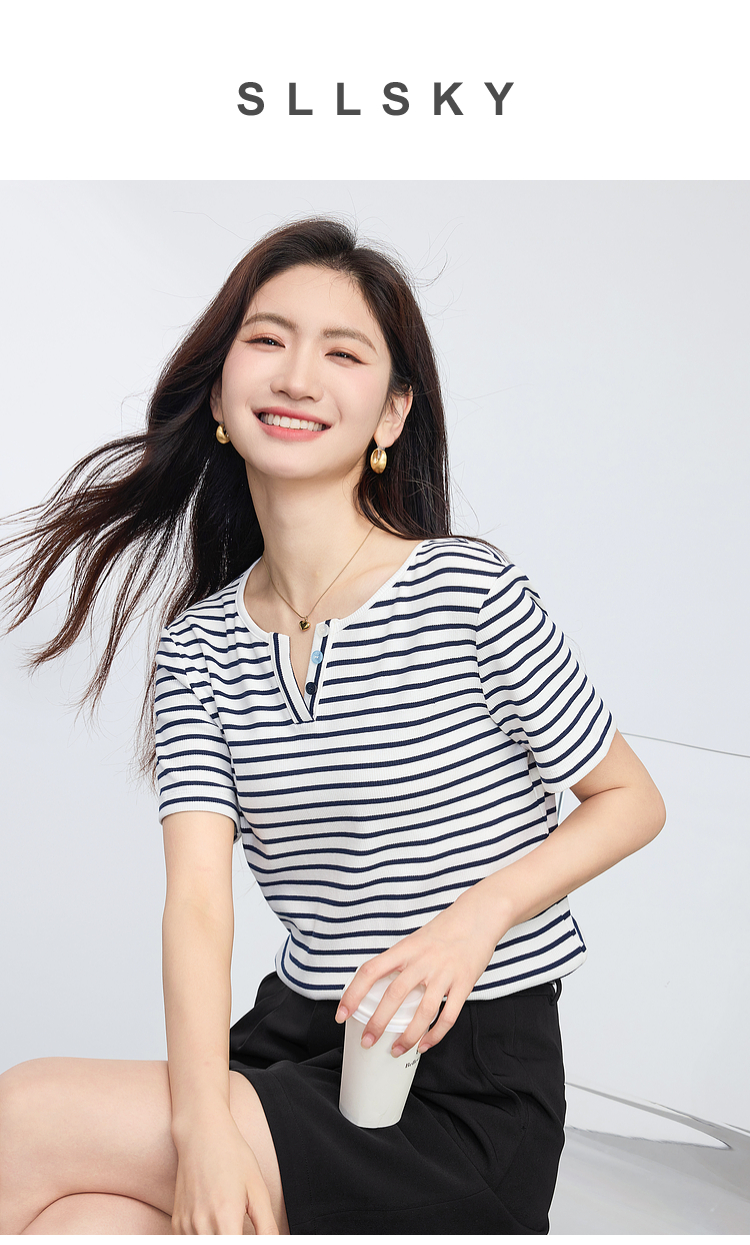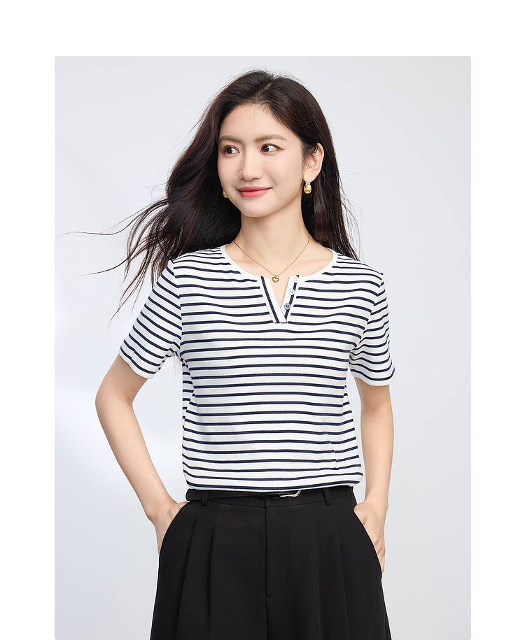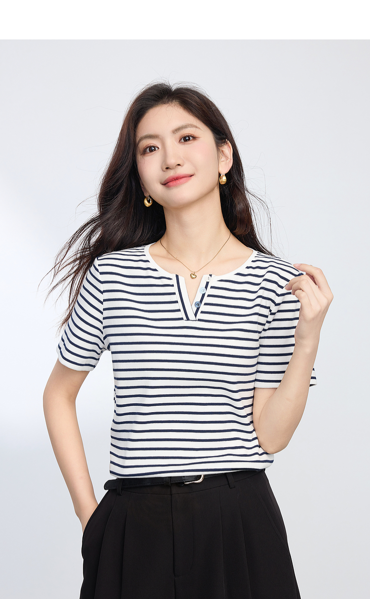 熙世界复古撞色条纹T恤女短袖2025夏季新款时尚宽松休闲百搭上衣