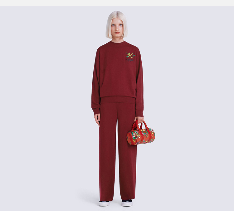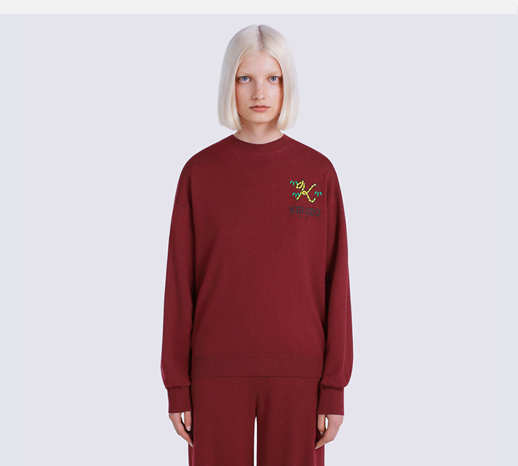 KENZO 高田贤三 女士 TIGER TAIL K系列 刺绣徽标羊毛长袖针织衫 紫红色 FC62 PU341 3LA 23
