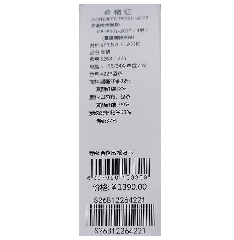 西贝伦长裤S26B1226
