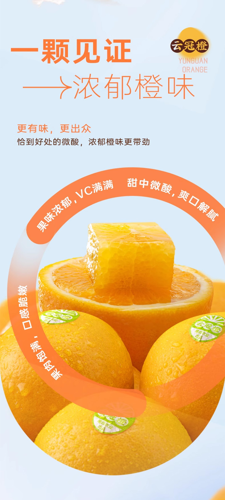 每一颗橙子200天以上挂果期,树上自然成熟,味甜皮薄,果肉纤维细腻,饱满汁浓;