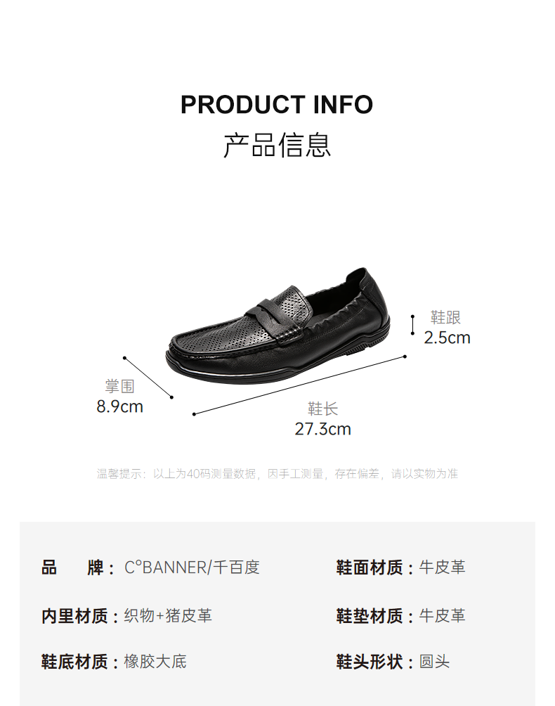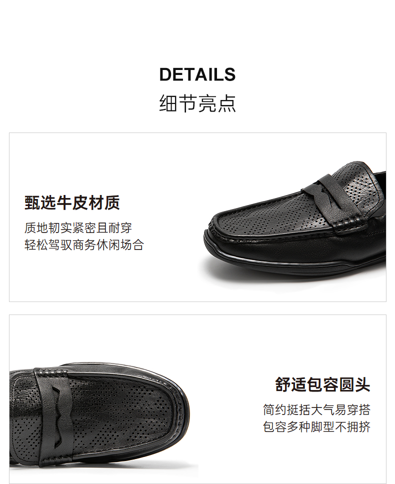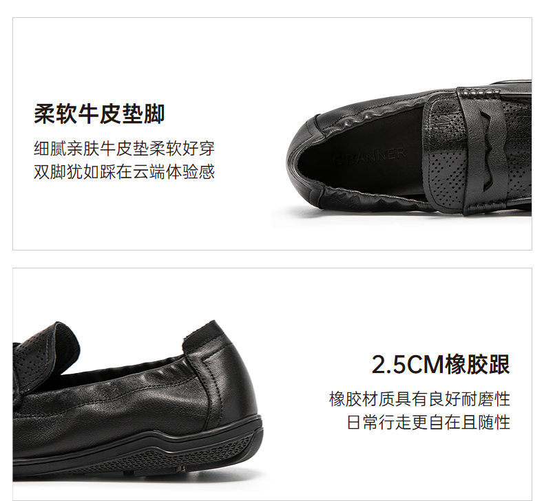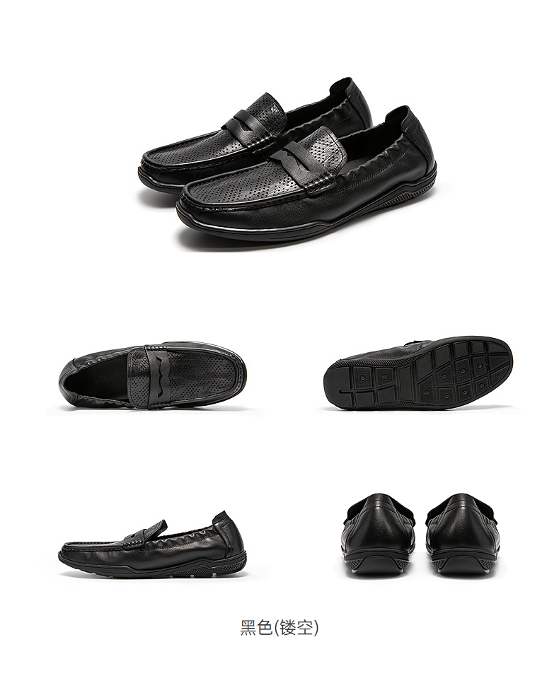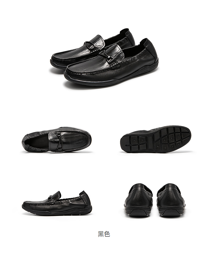 千百度男鞋休闲透气正装皮鞋一脚蹬豆豆鞋轻便皮鞋A25132332