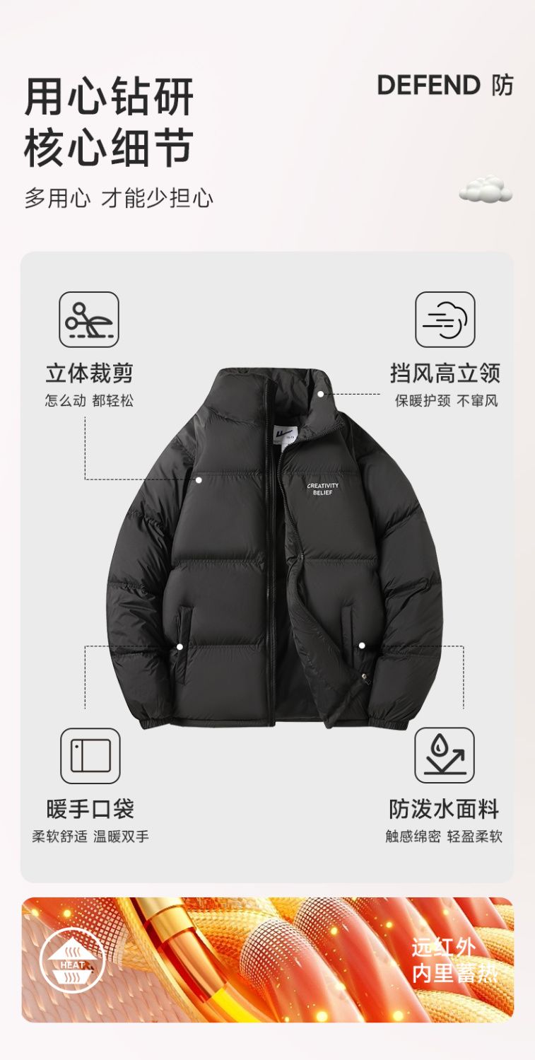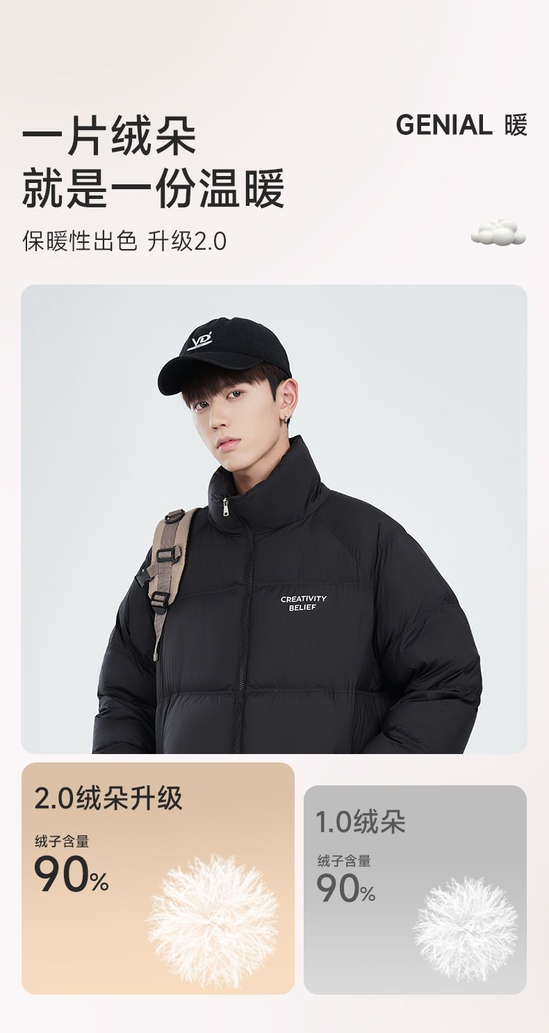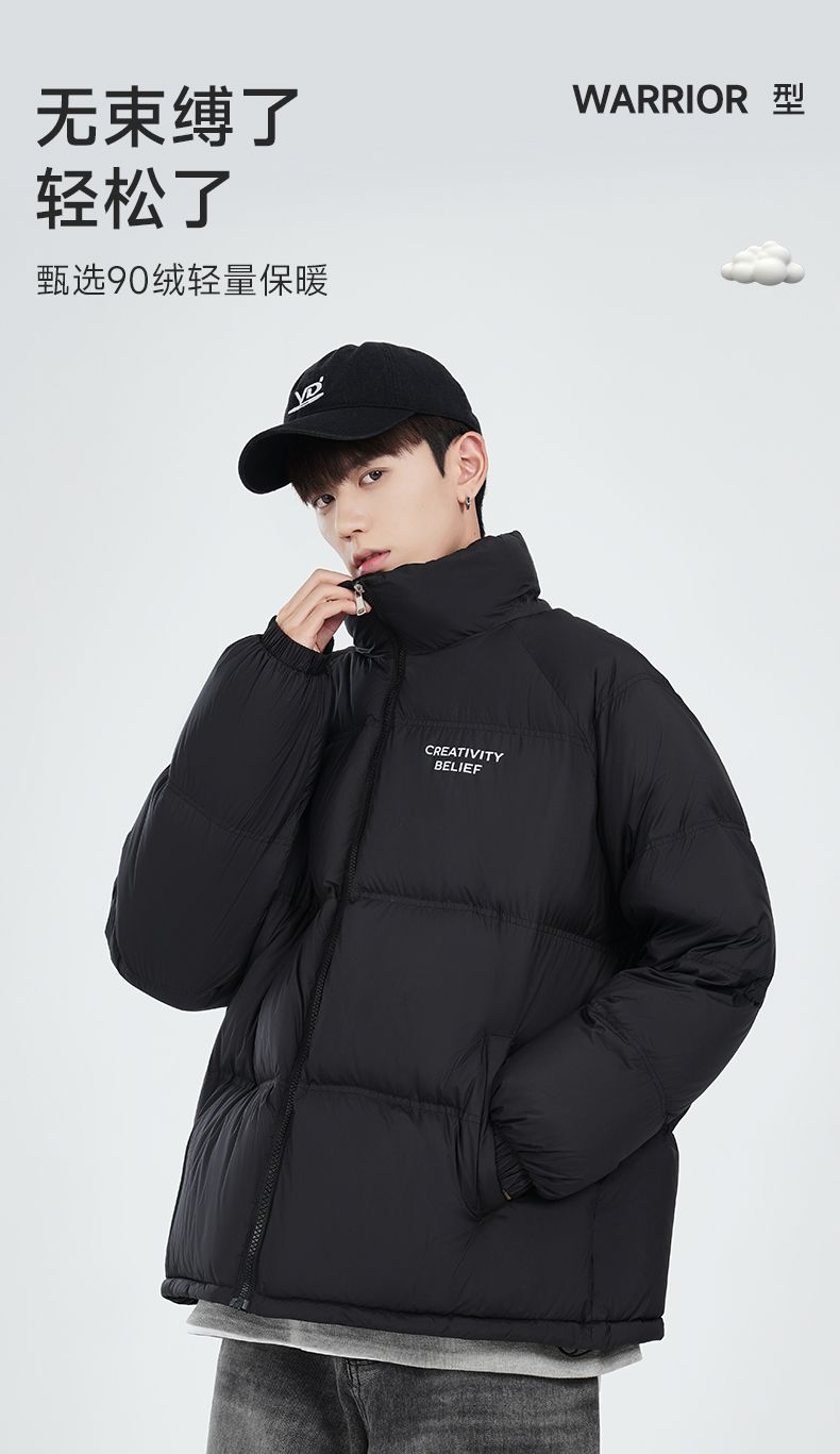 回力羽绒服男2025冬季新款90白鸭绒保暖立领加绒加厚轻羽绒潮外套