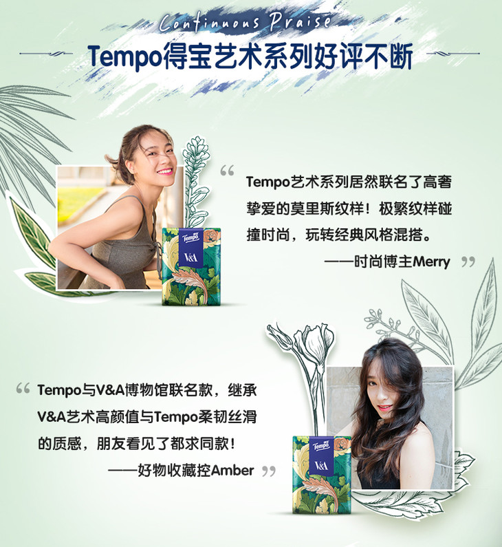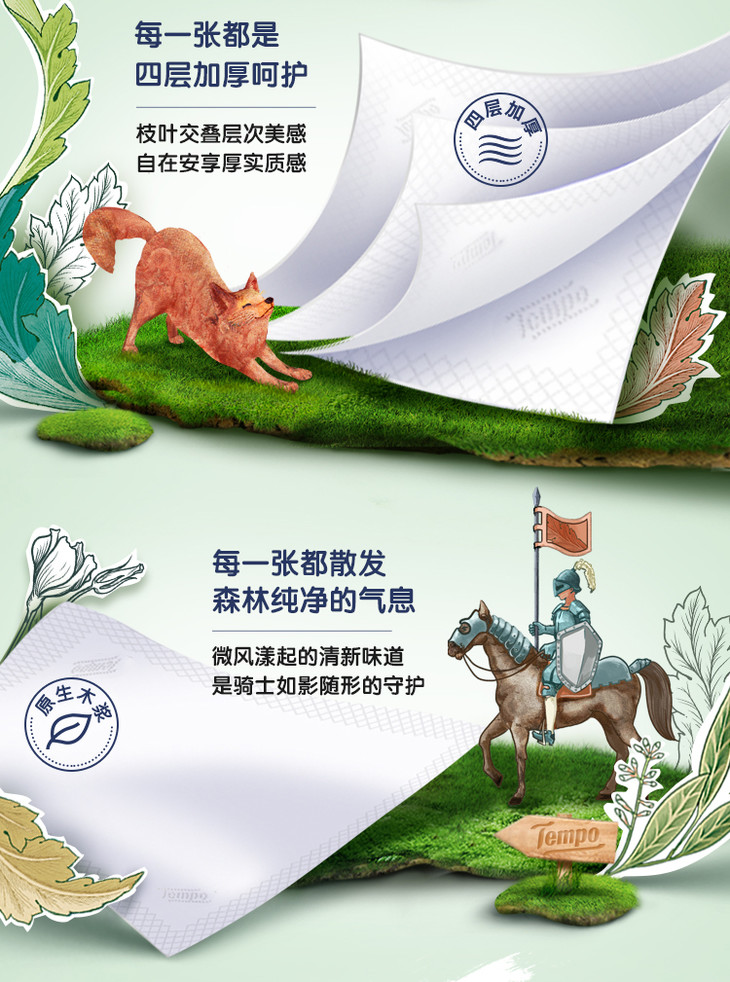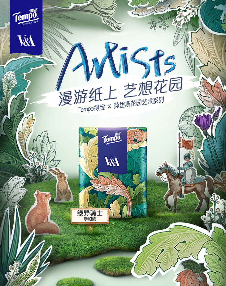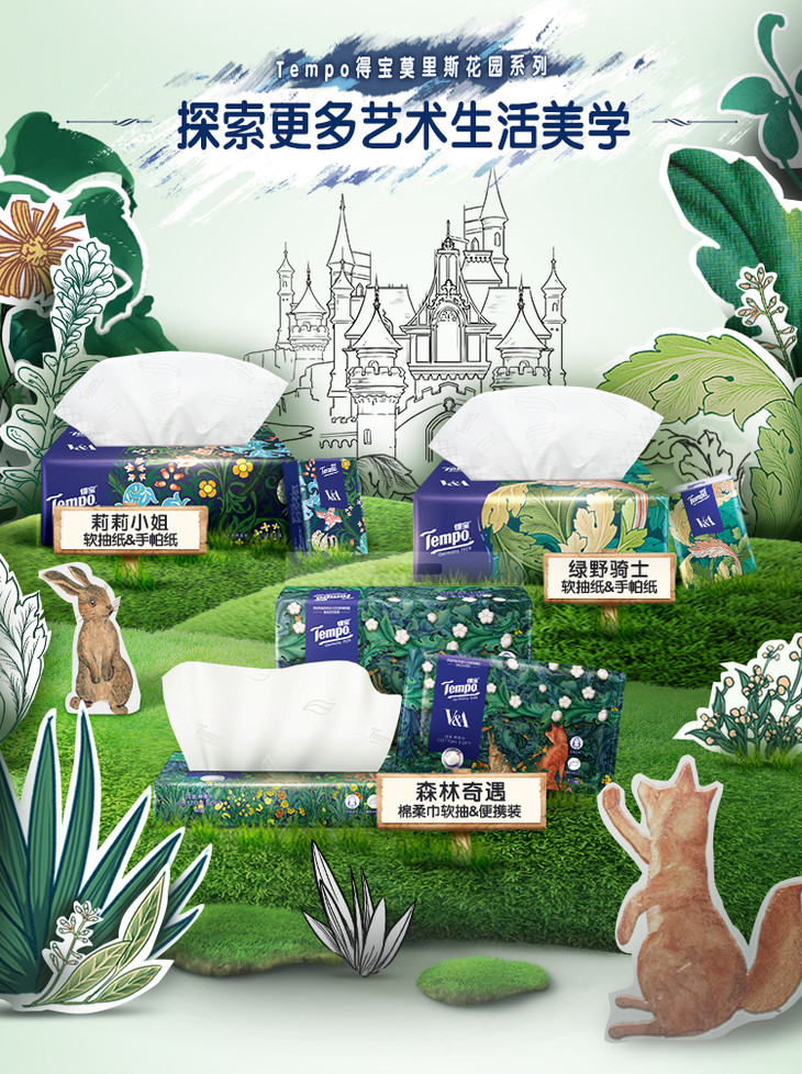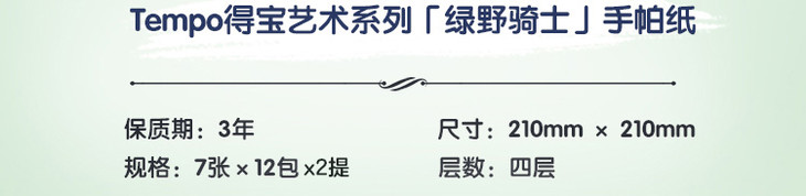 Tempo得宝V&A博物馆联名绿野骑士款手帕纸4层24小包纸巾小包便携装餐巾纸