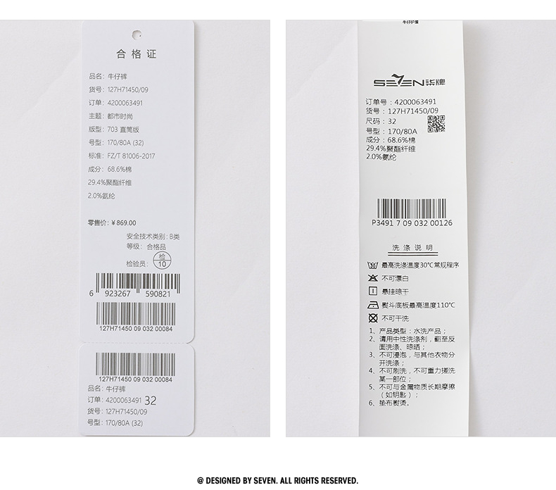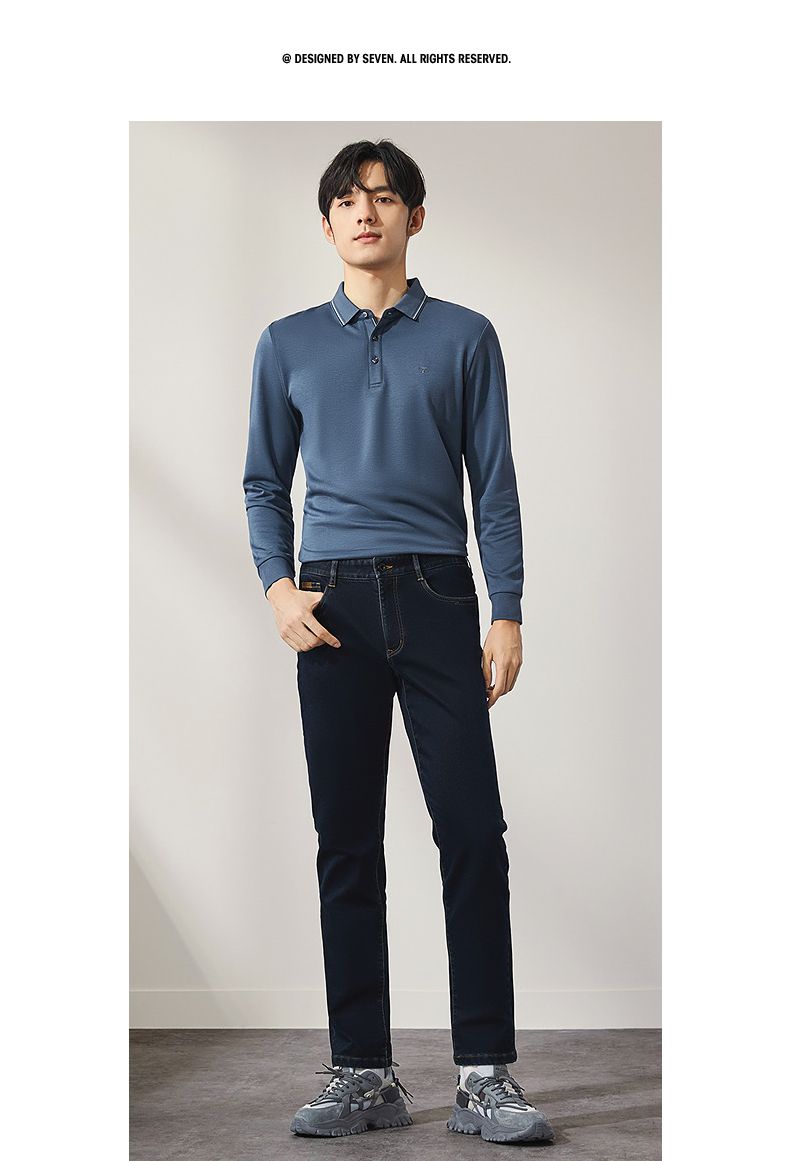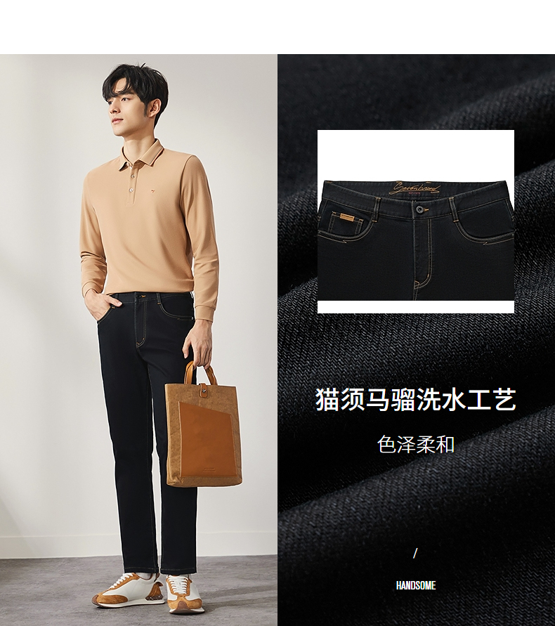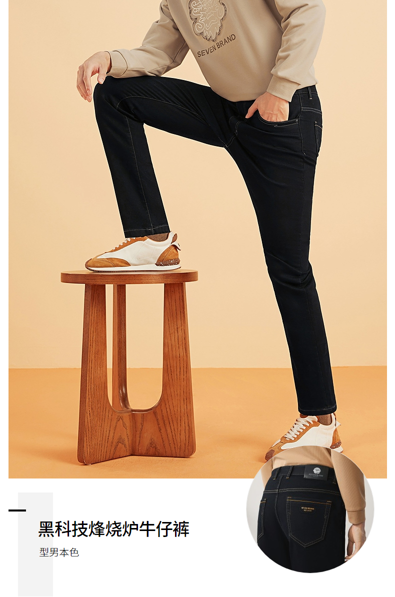 【烽煷炉蓄热】柒牌男装牛仔裤男2024秋冬新款时尚休闲直筒男裤子 127H71450