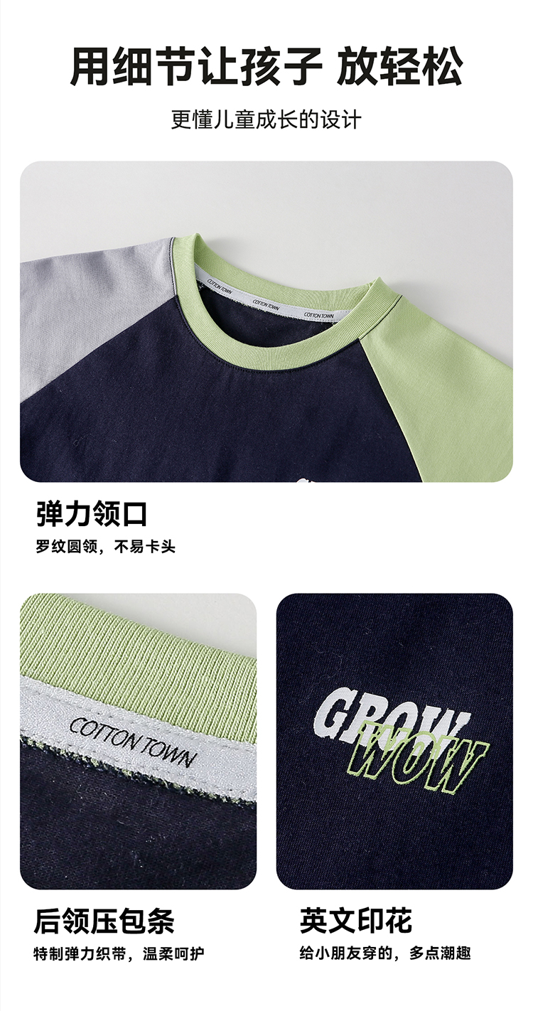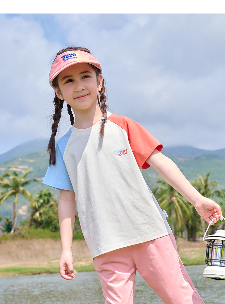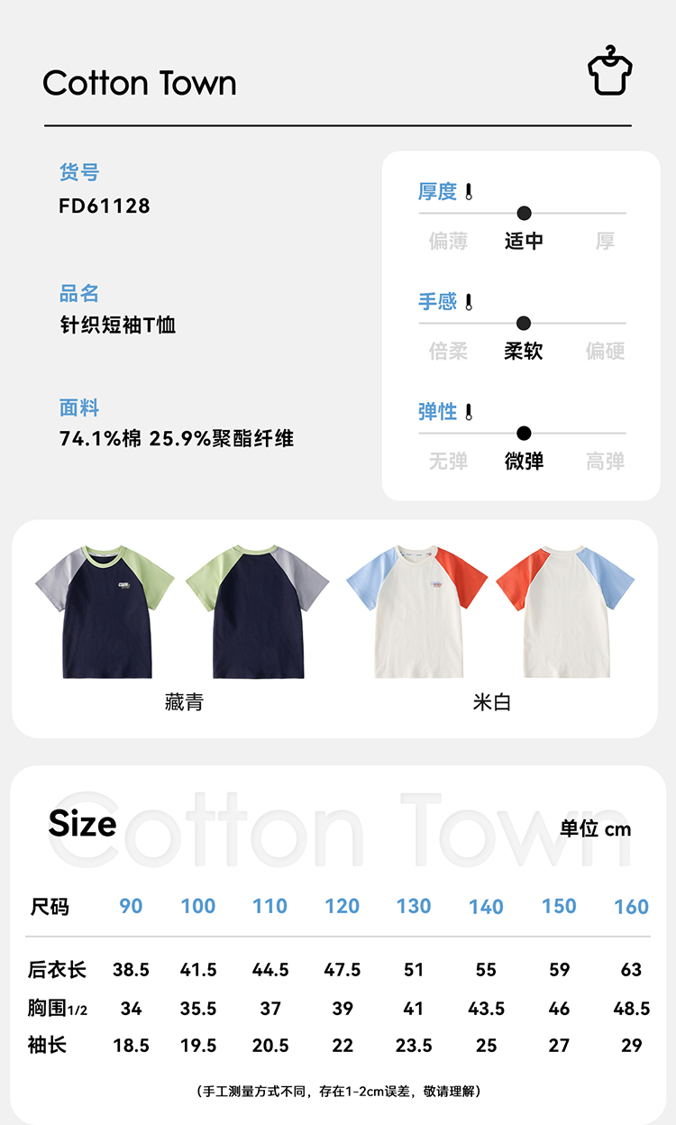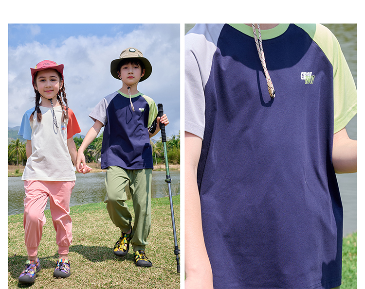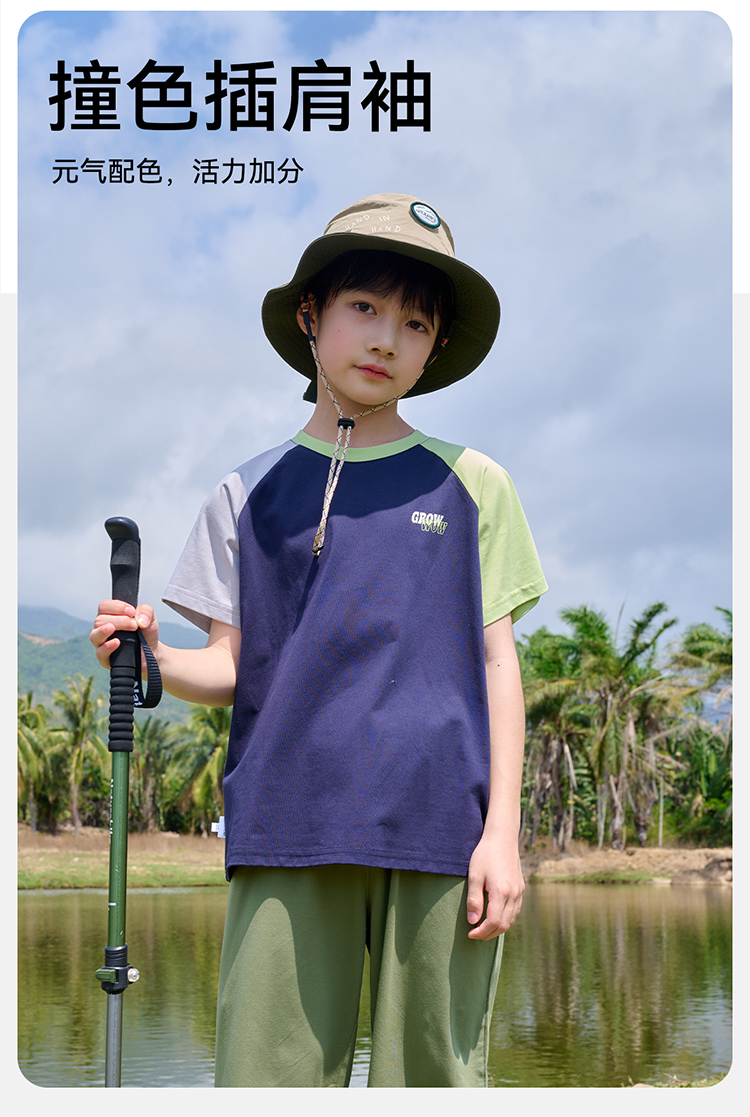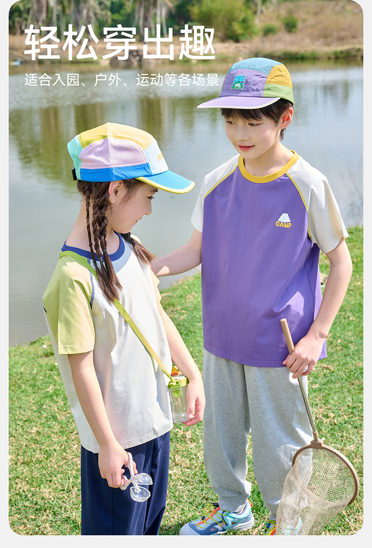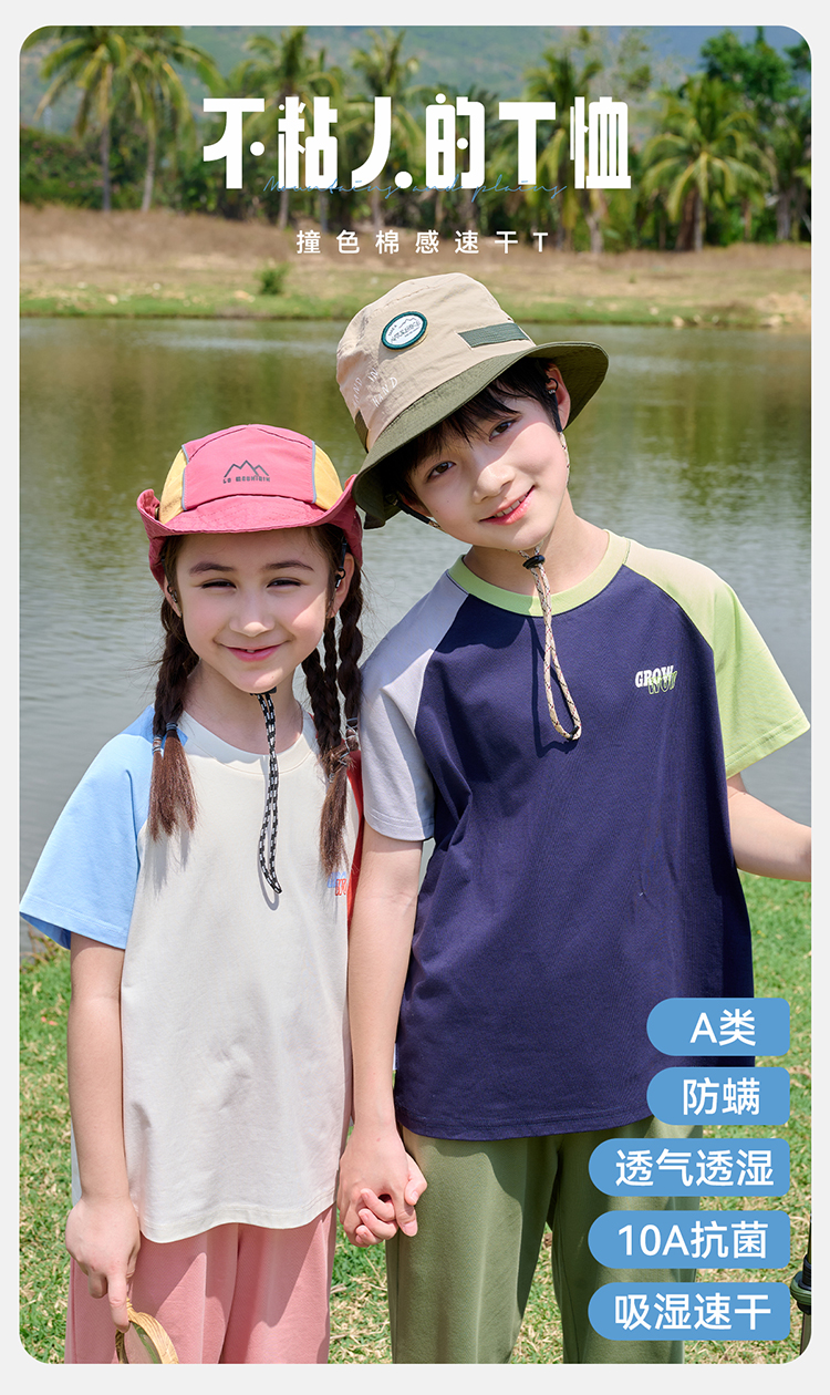 【10A抗菌】棉花堂夏款撞色不粘人弹性童装短袖速干T恤-- FD61128