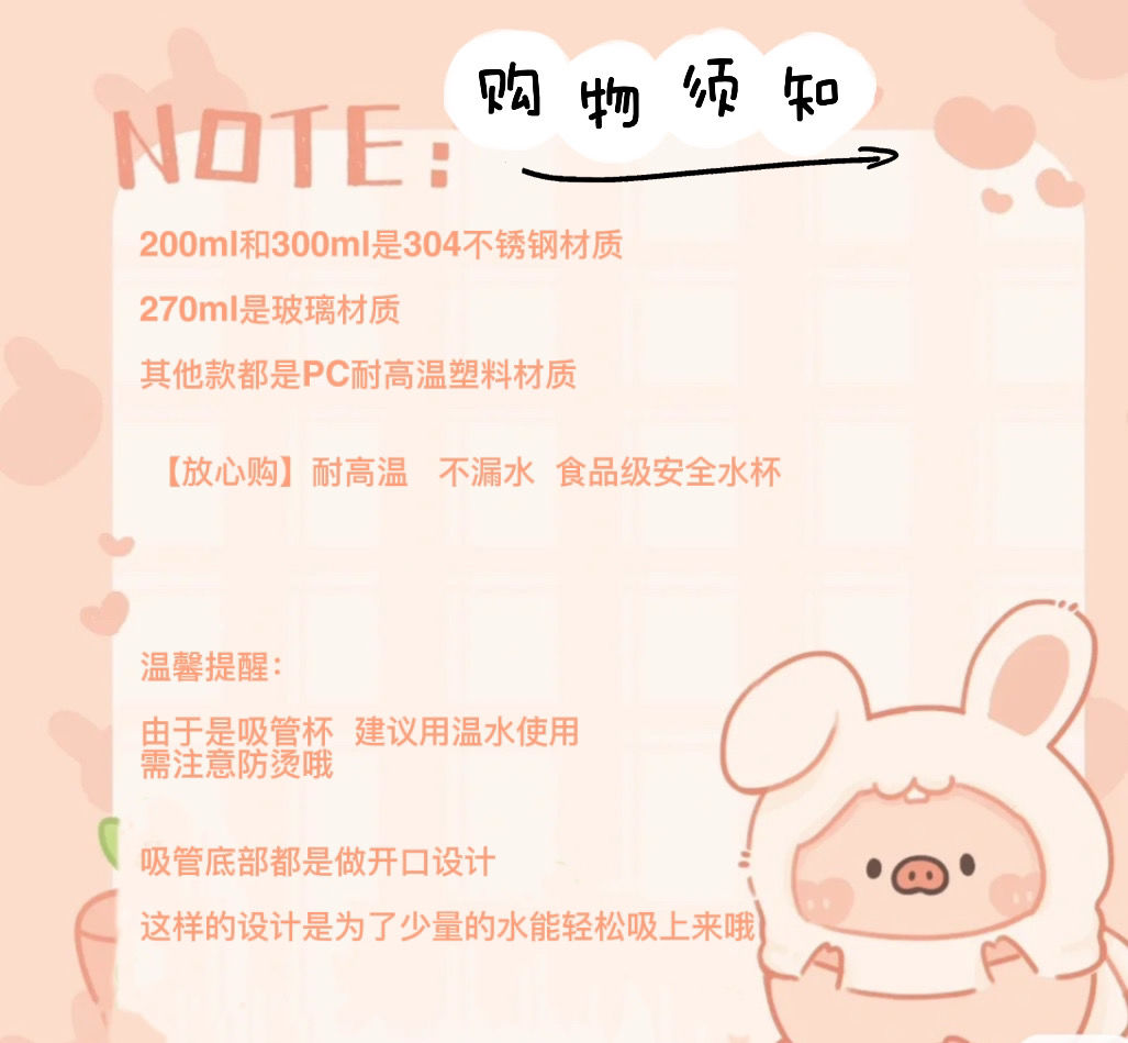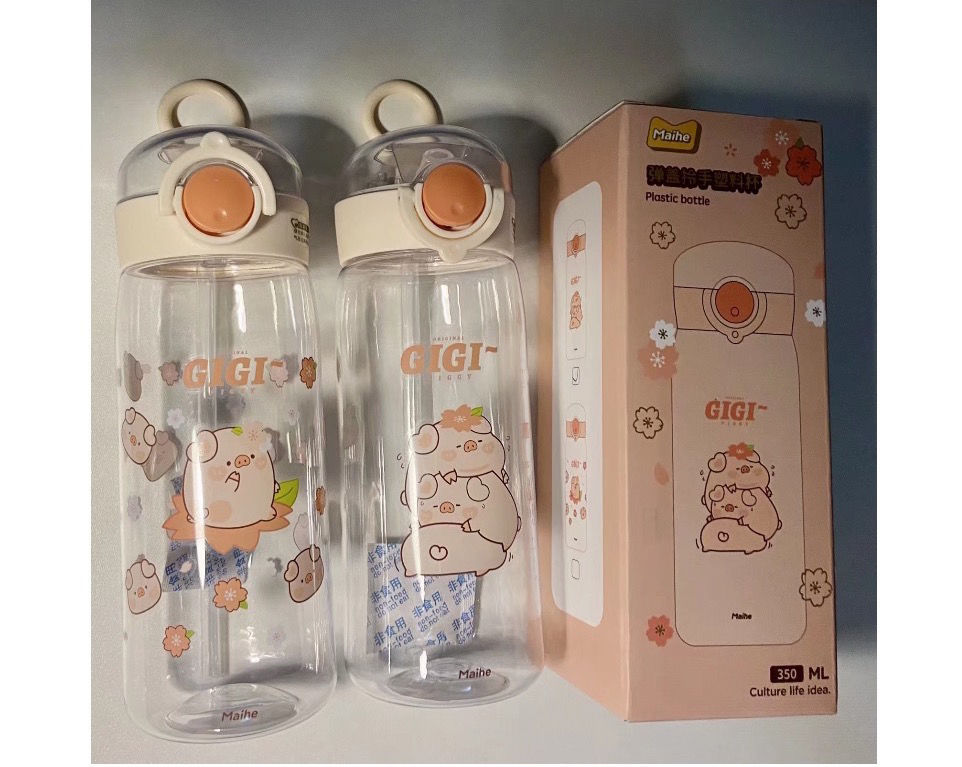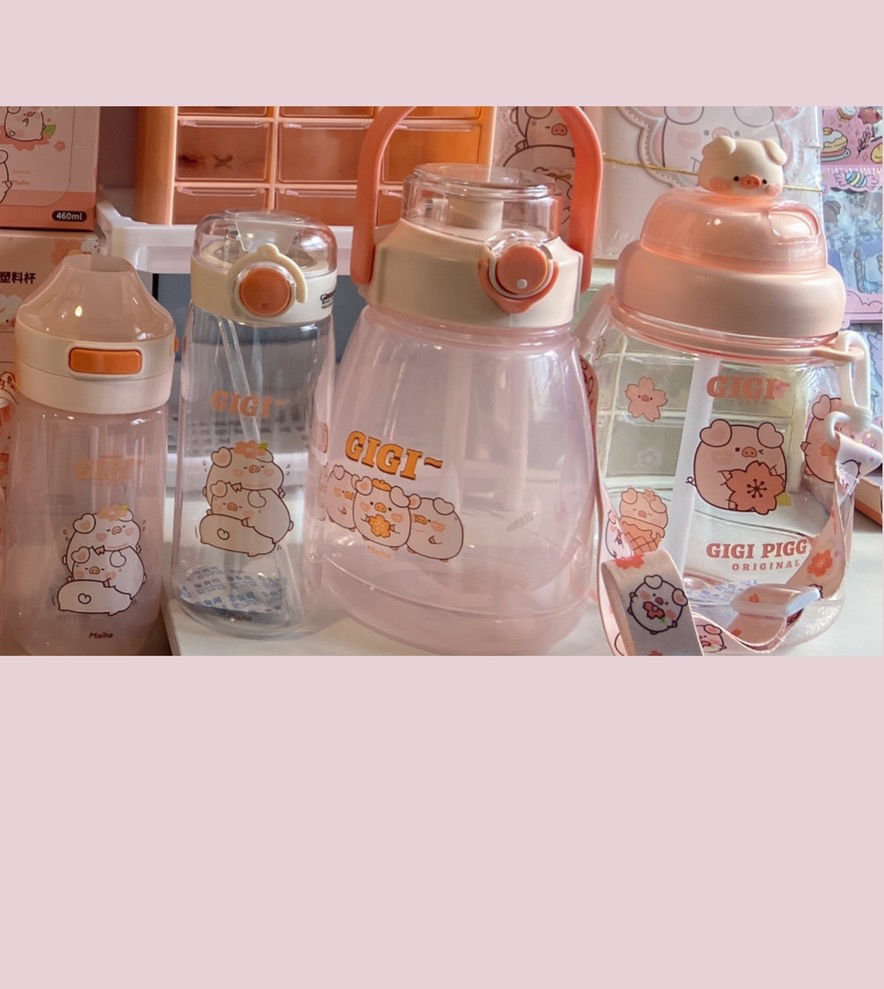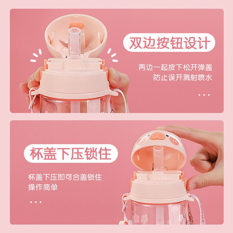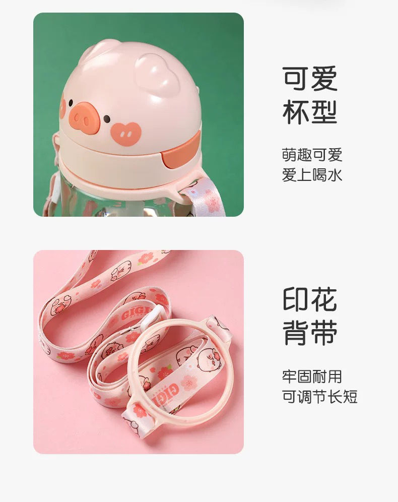 可爱猪猪水杯带吸管水杯迷你塑料杯子耐高温学生大容量小猪水杯国庆出游