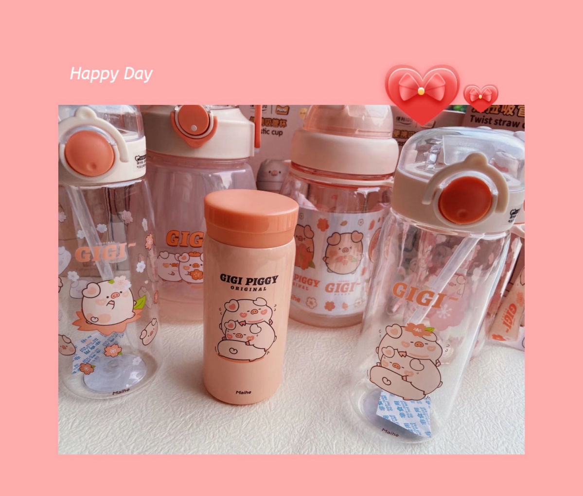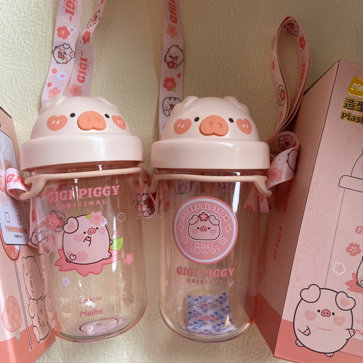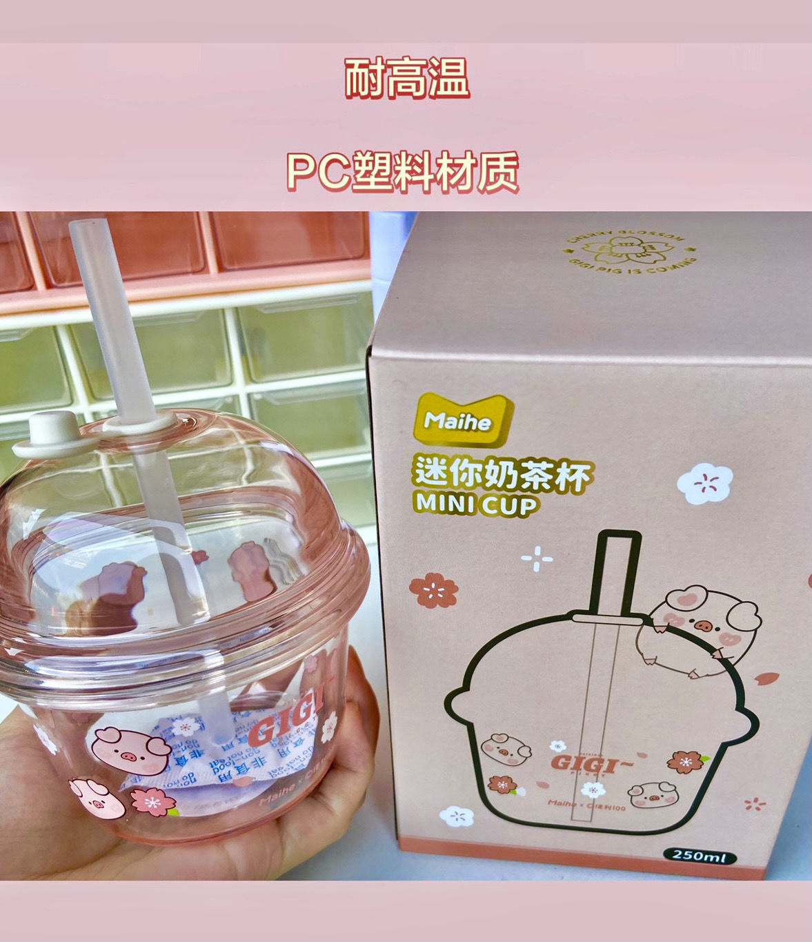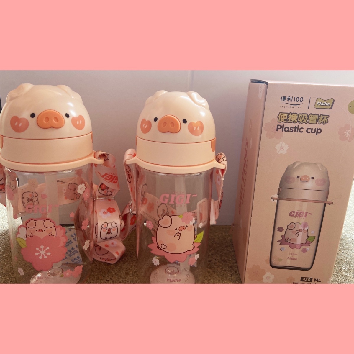 可爱猪猪水杯带吸管水杯迷你塑料杯子耐高温学生大容量小猪水杯国庆出游
