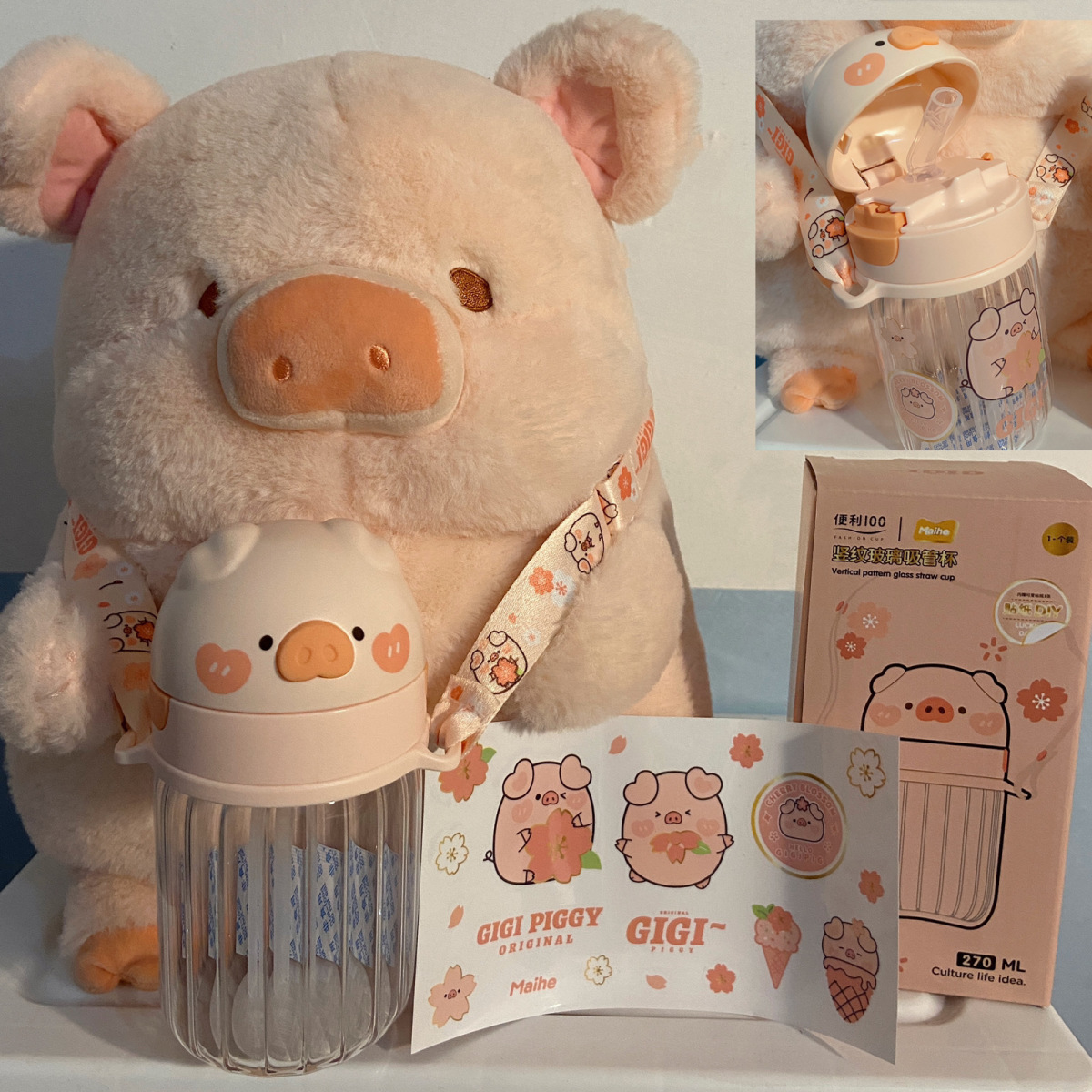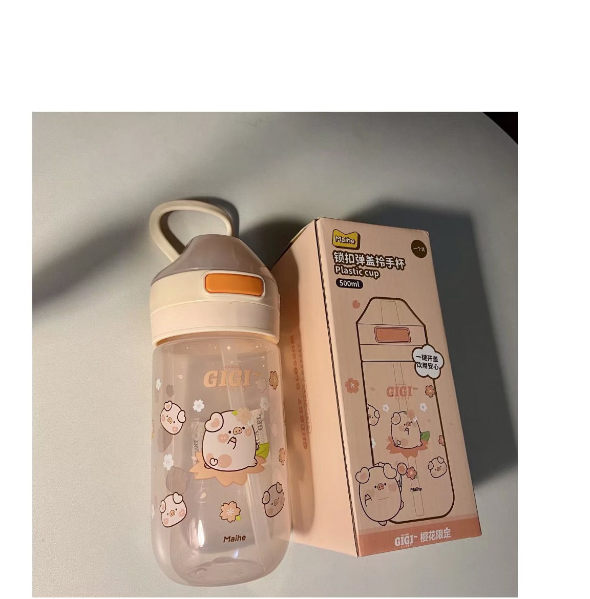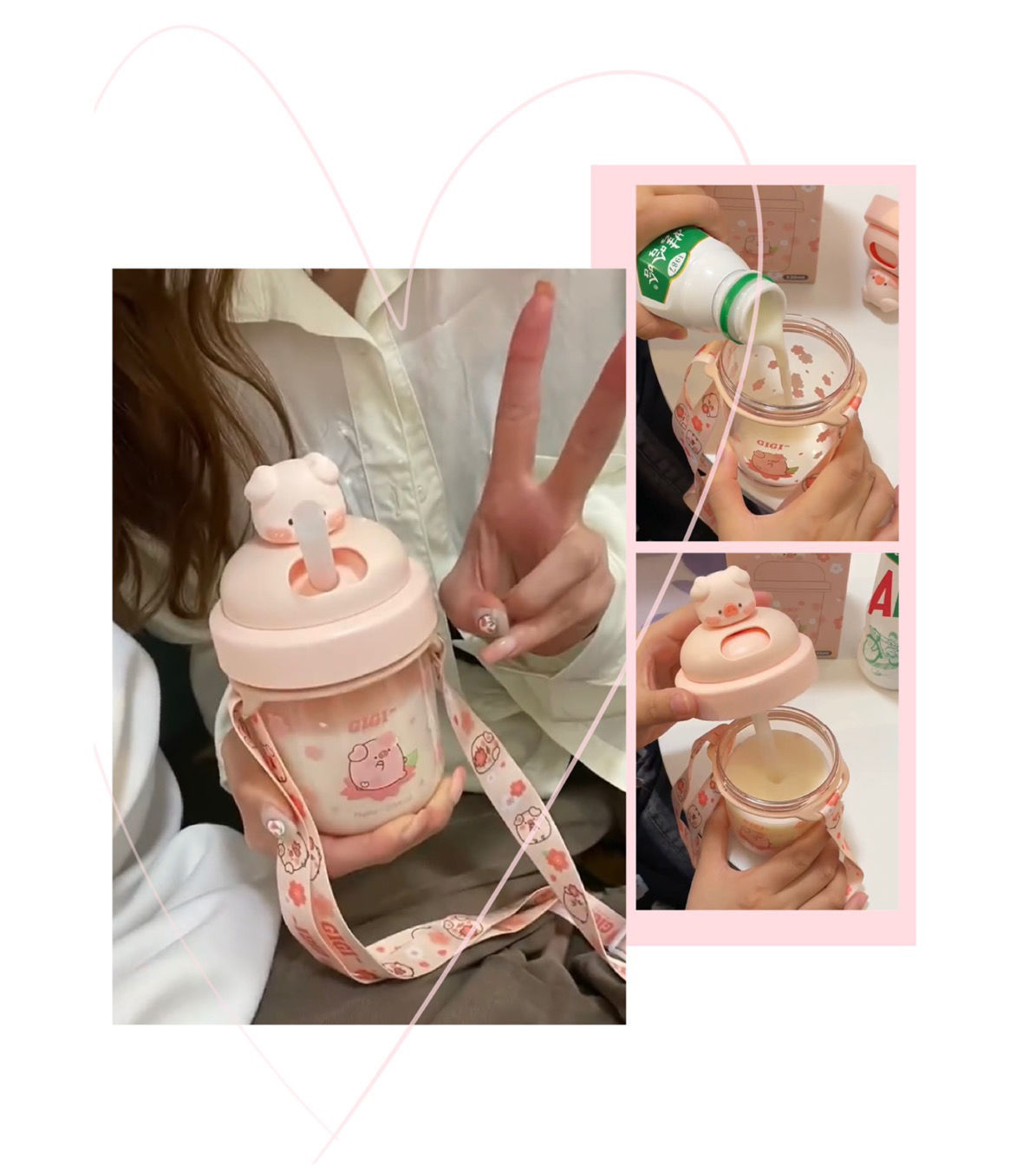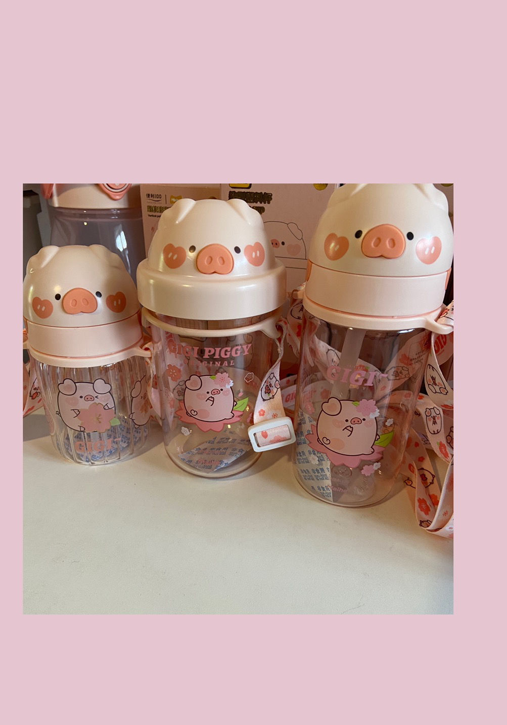 可爱猪猪水杯带吸管水杯迷你塑料杯子耐高温学生大容量小猪水杯国庆出游