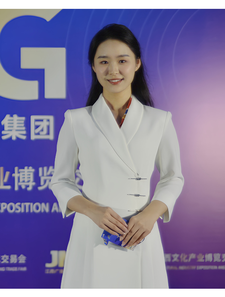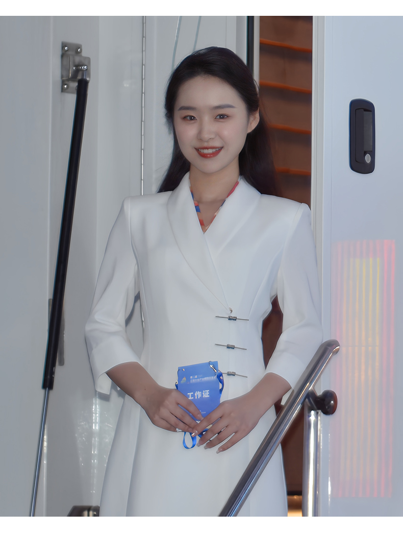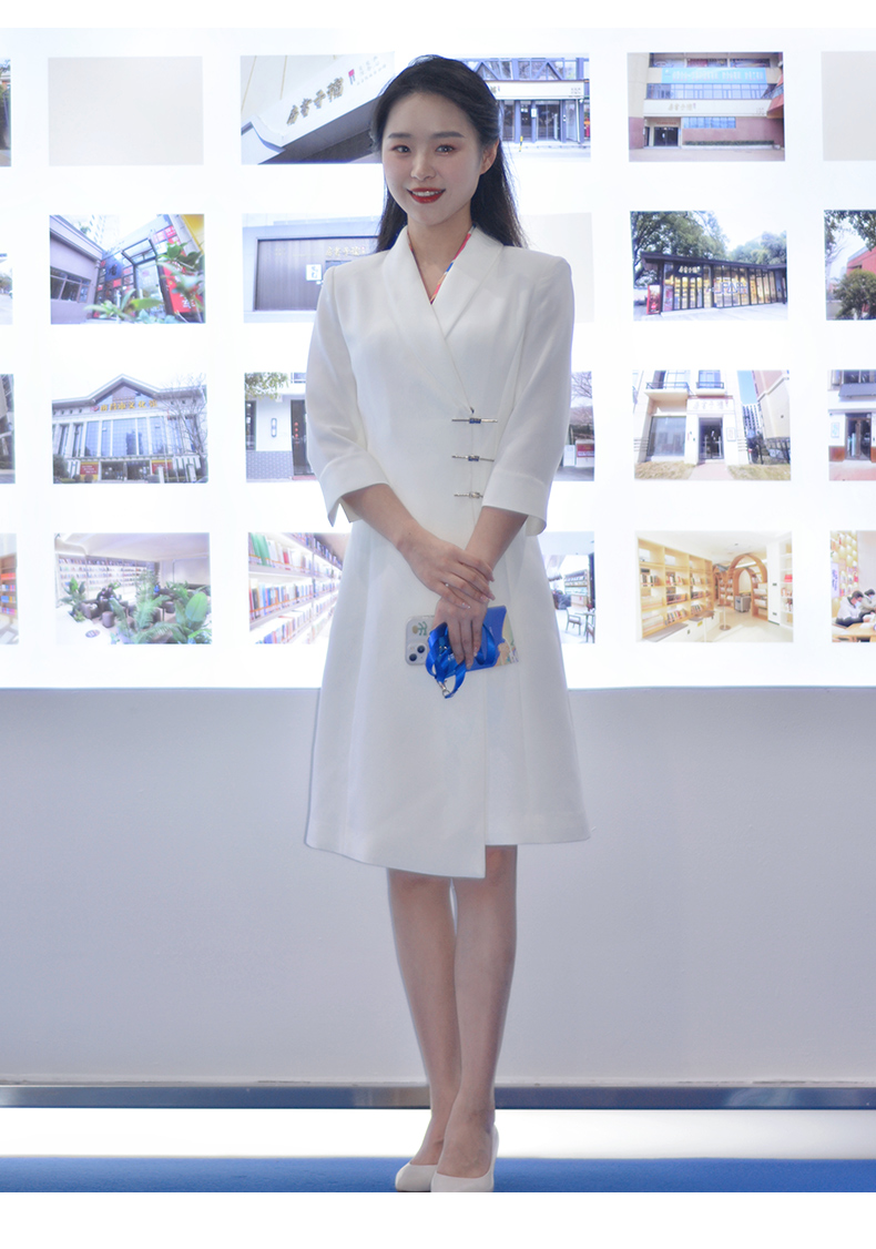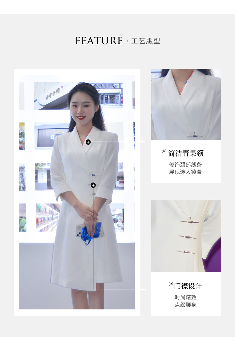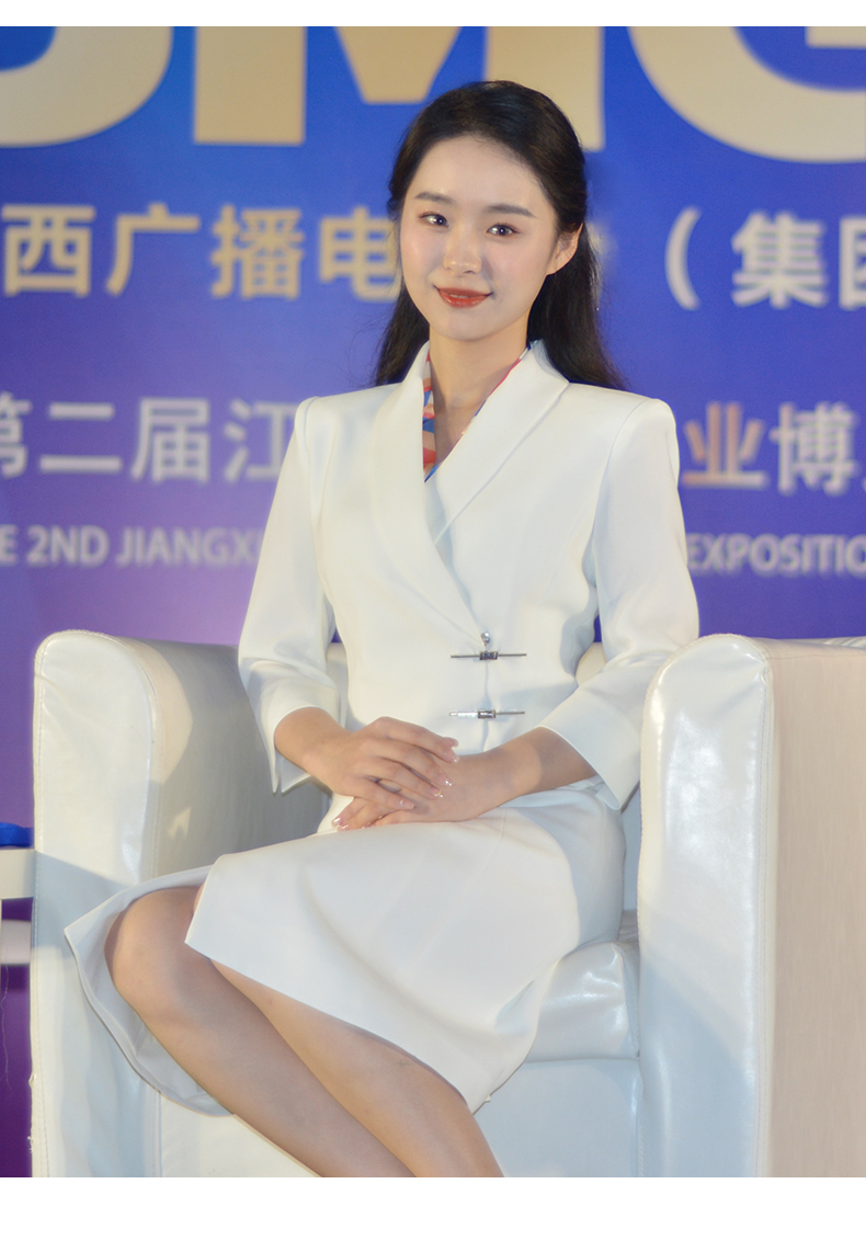 IWY/白色国风新中式连衣裙七分袖女气质上镜演讲比赛主持人正装裙Q1131-W