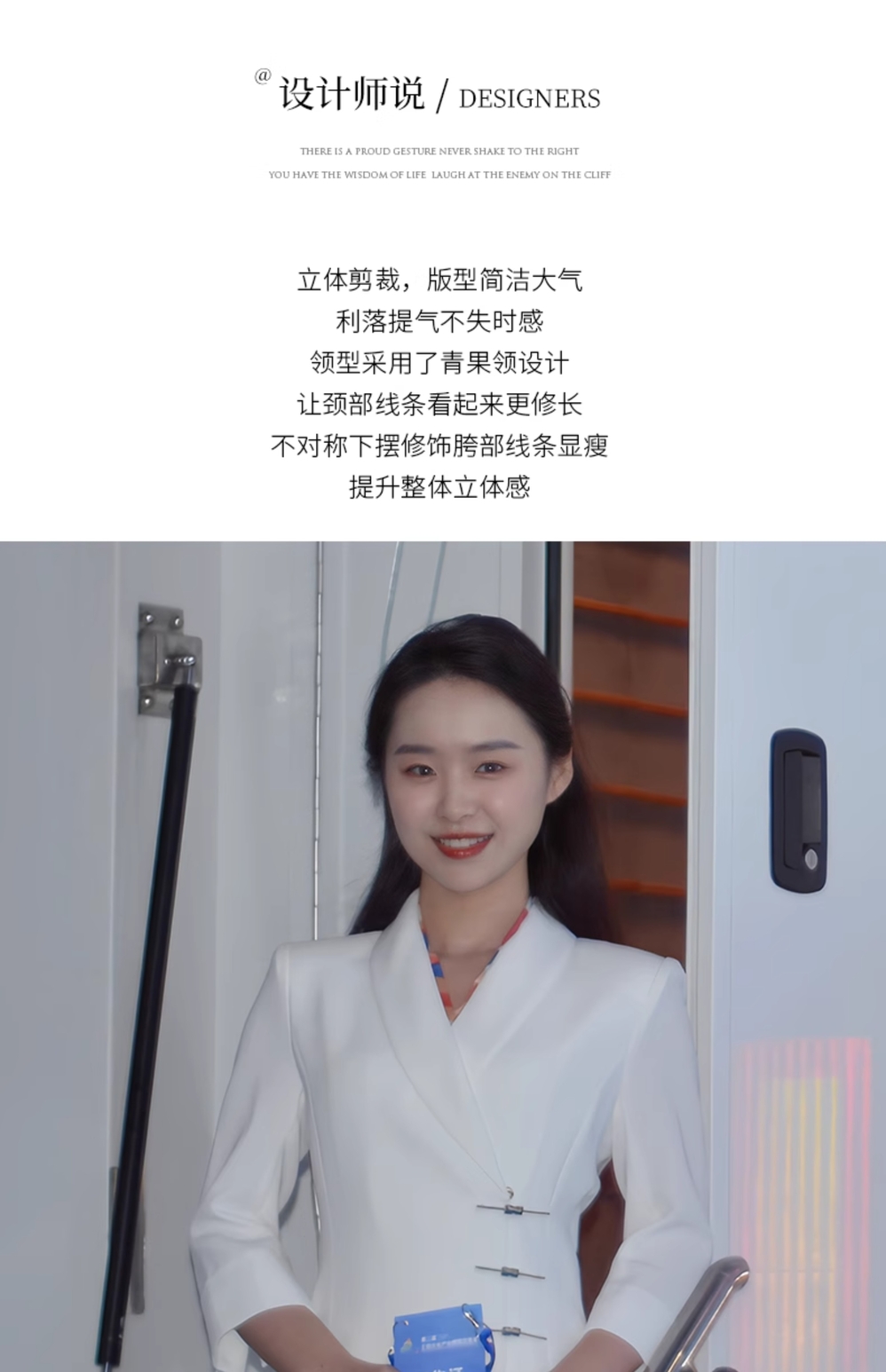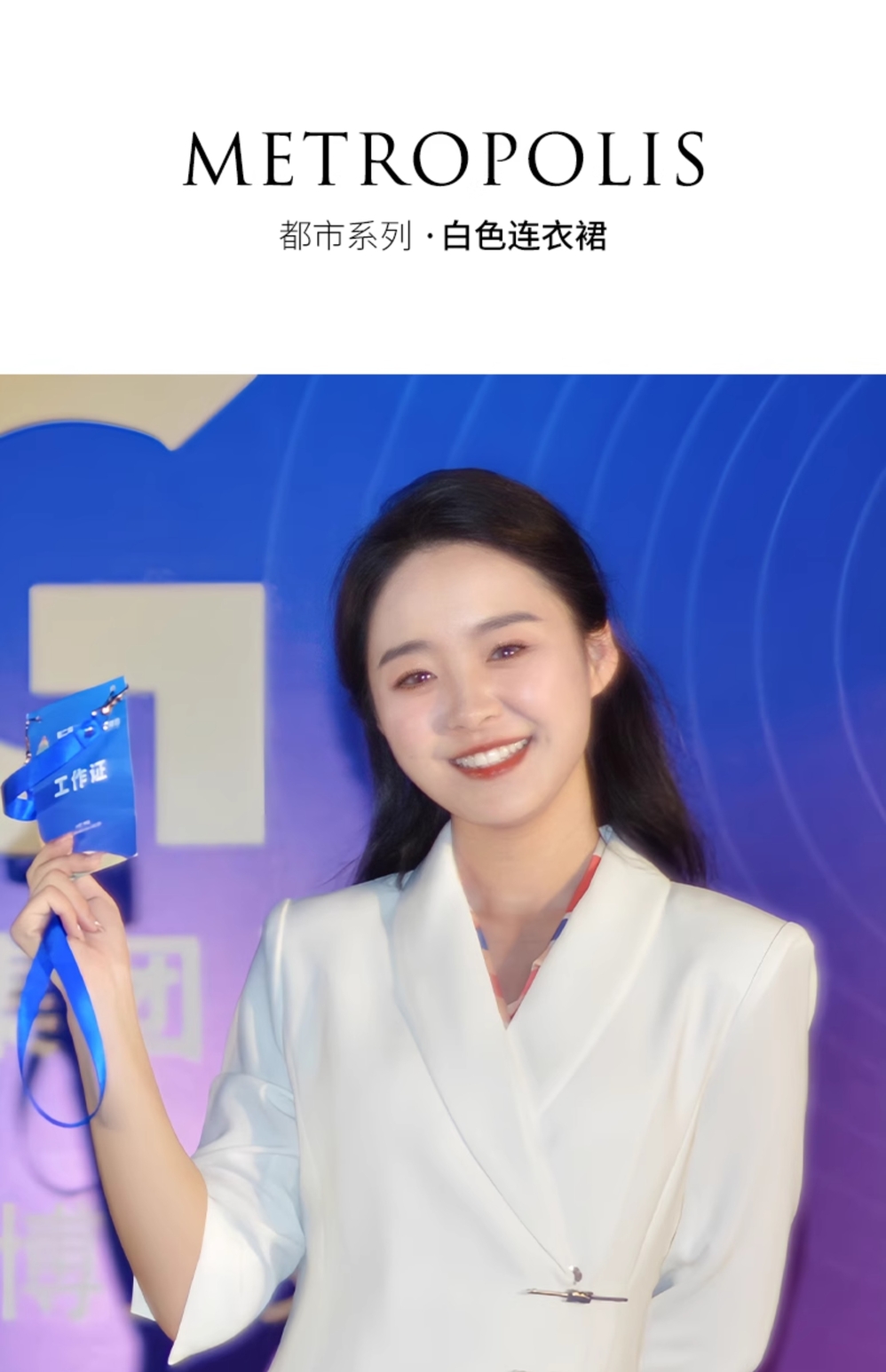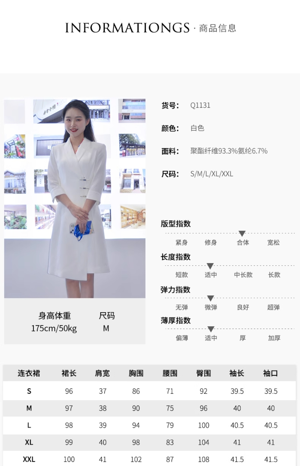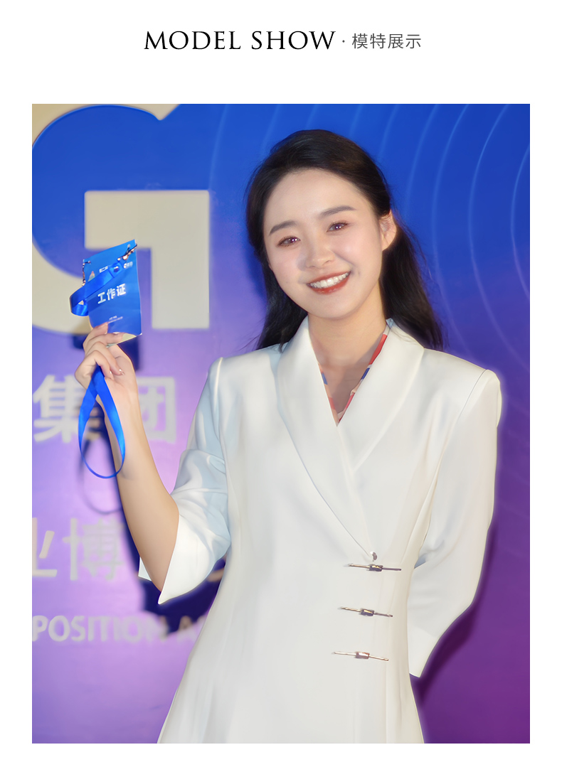 IWY/白色国风新中式连衣裙七分袖女气质上镜演讲比赛主持人正装裙Q1131-W