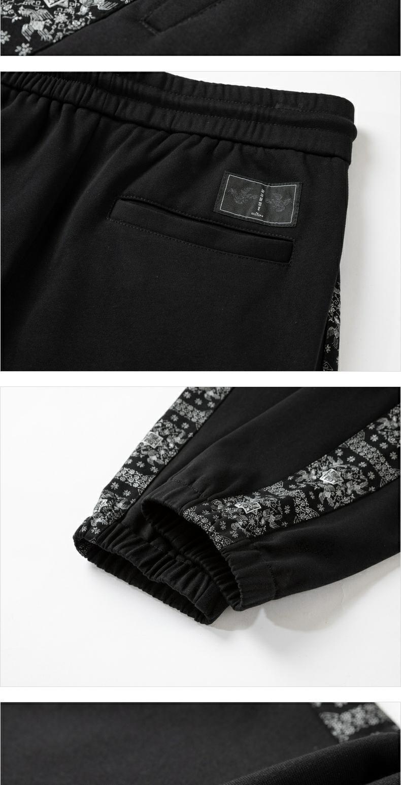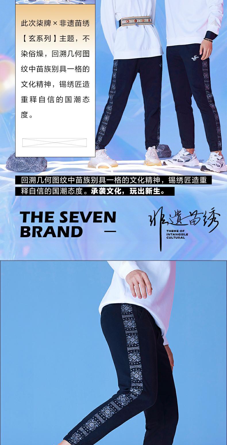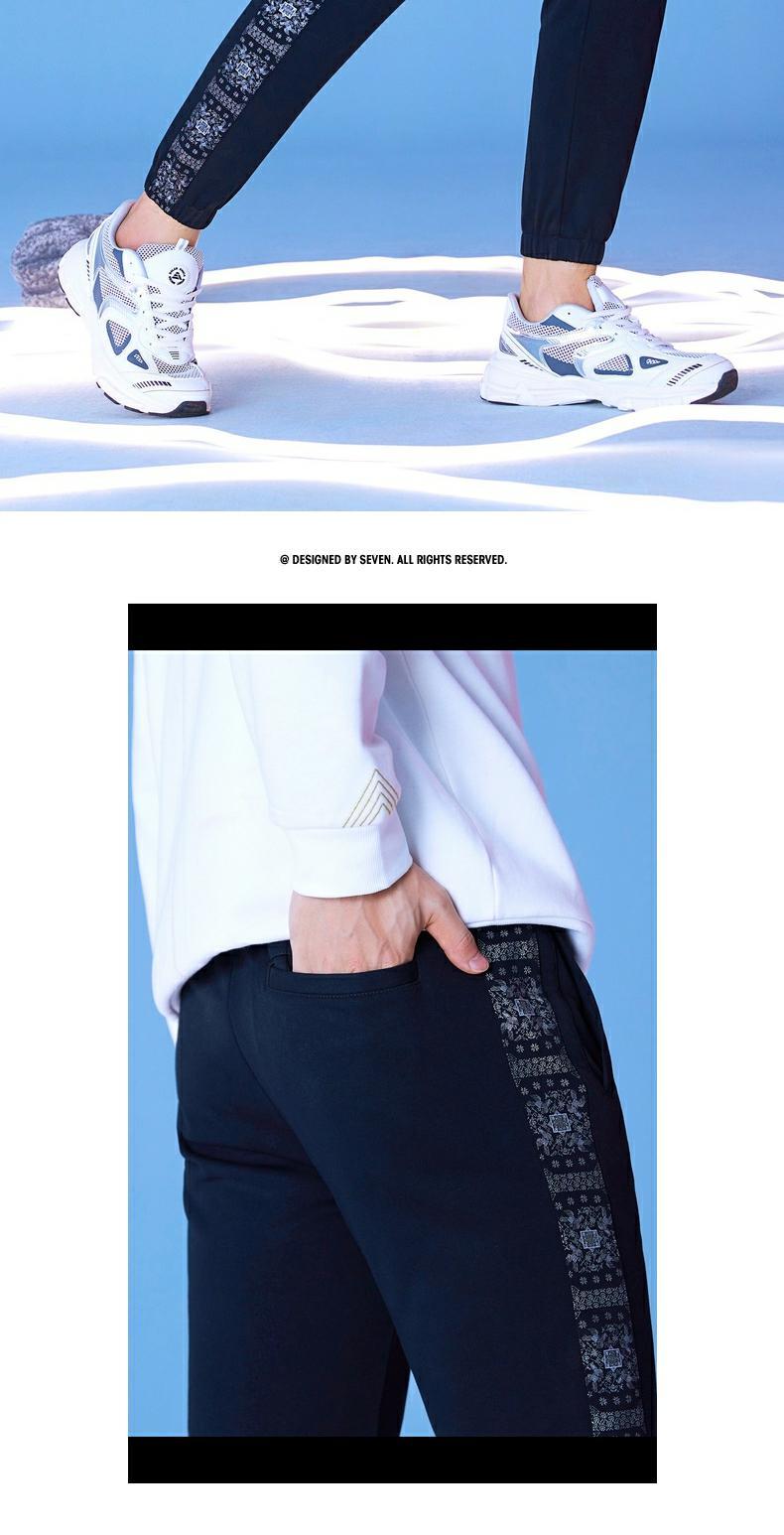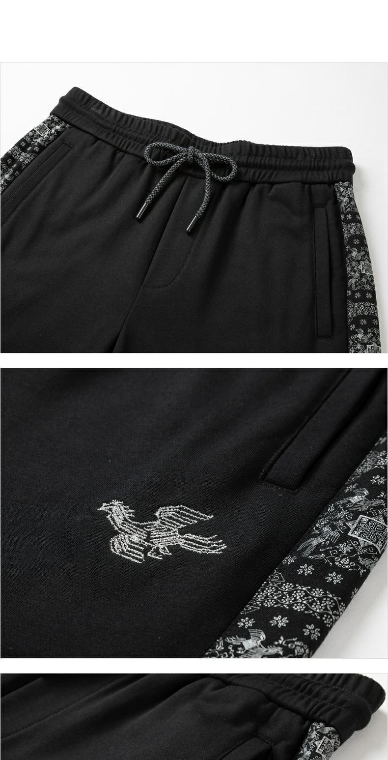 【特价】柒牌休闲长裤男非遗苗绣运动潮流简约印花松紧裤黑色修身束脚裤子 121H71070