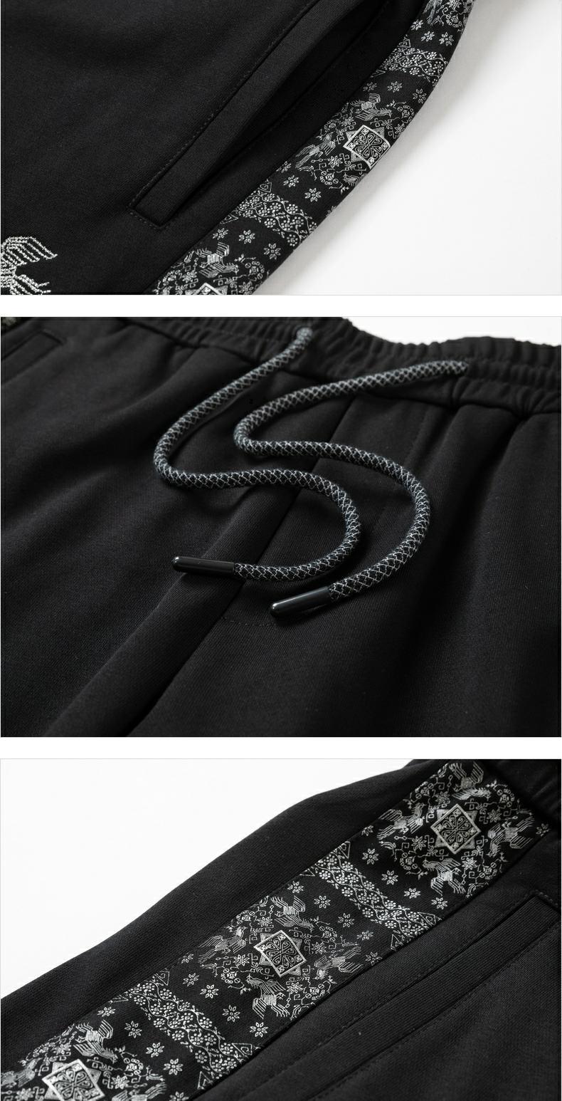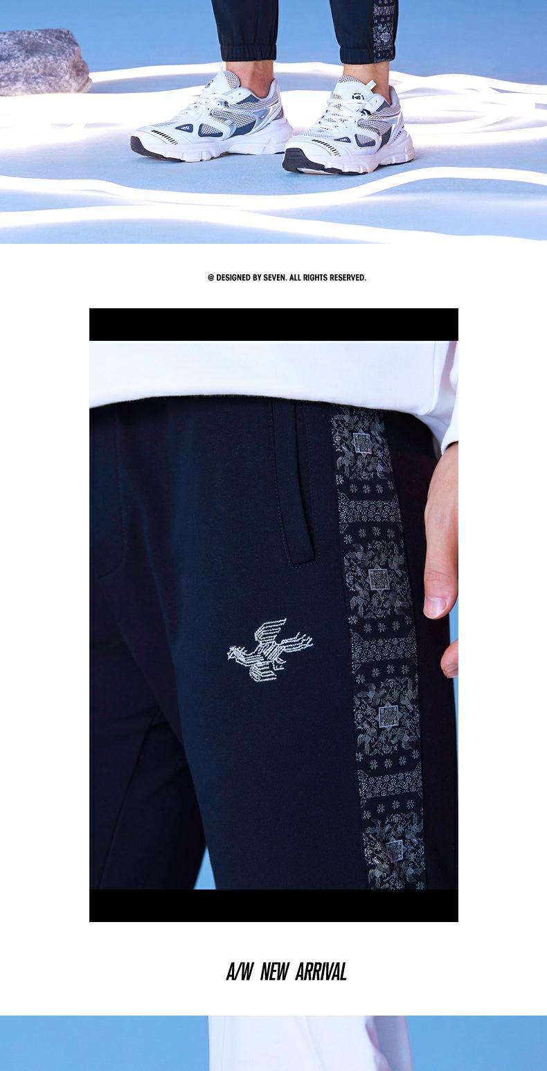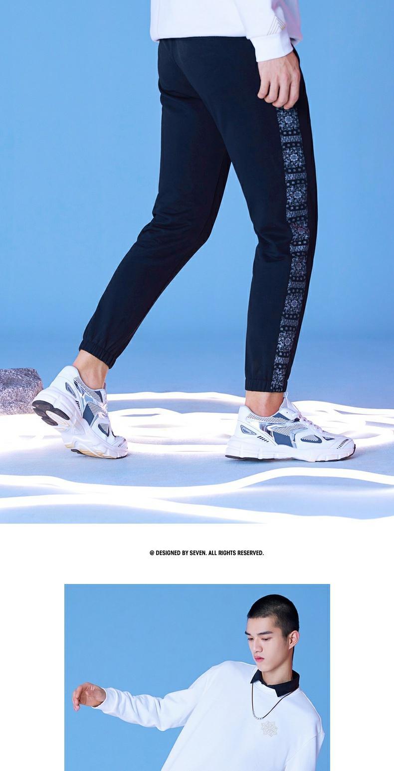 【特价】柒牌休闲长裤男非遗苗绣运动潮流简约印花松紧裤黑色修身束脚裤子 121H71070
