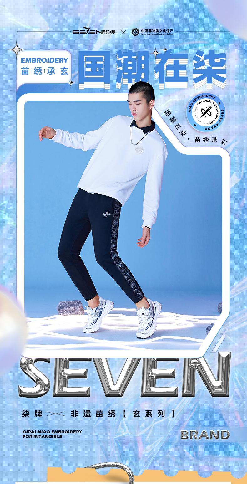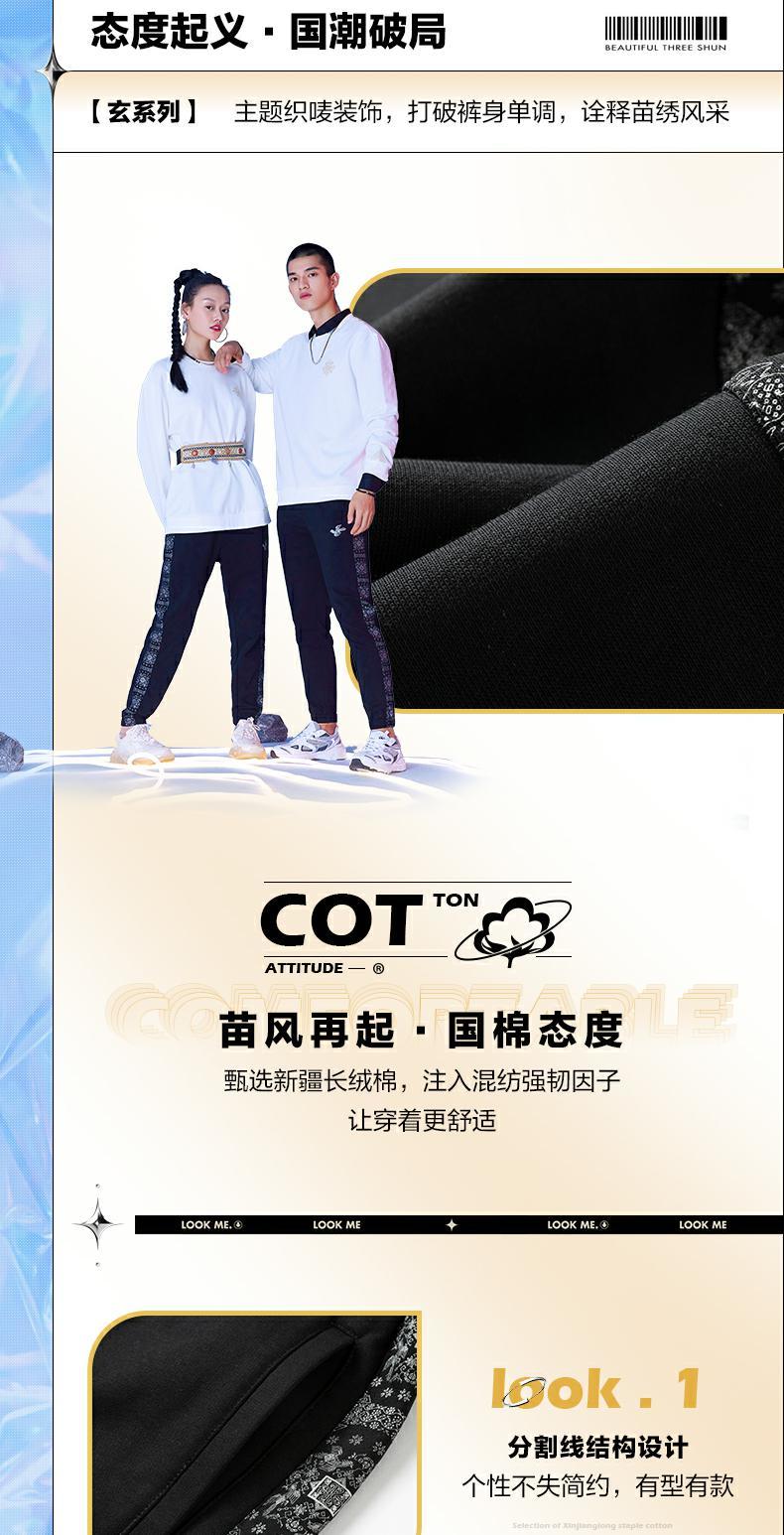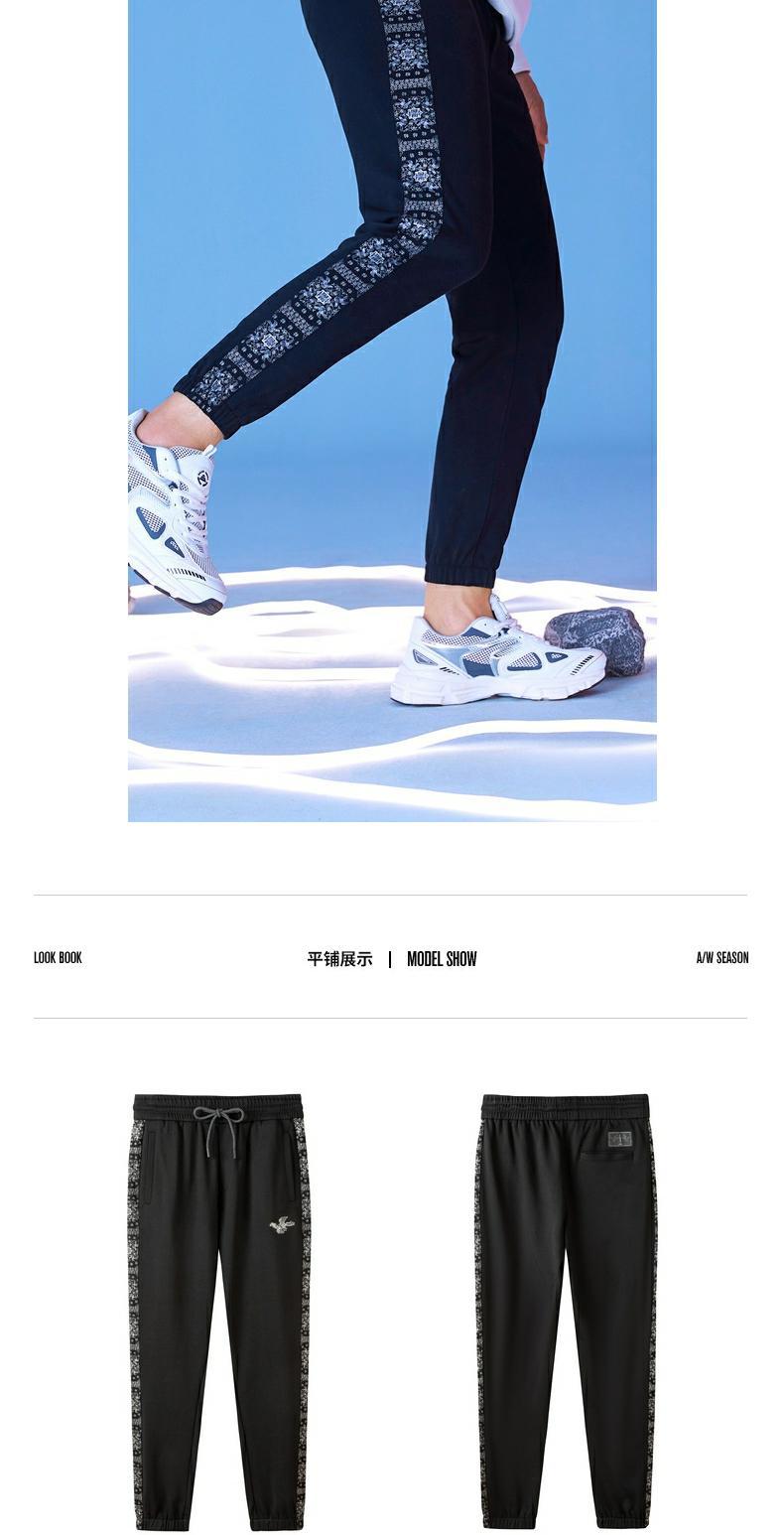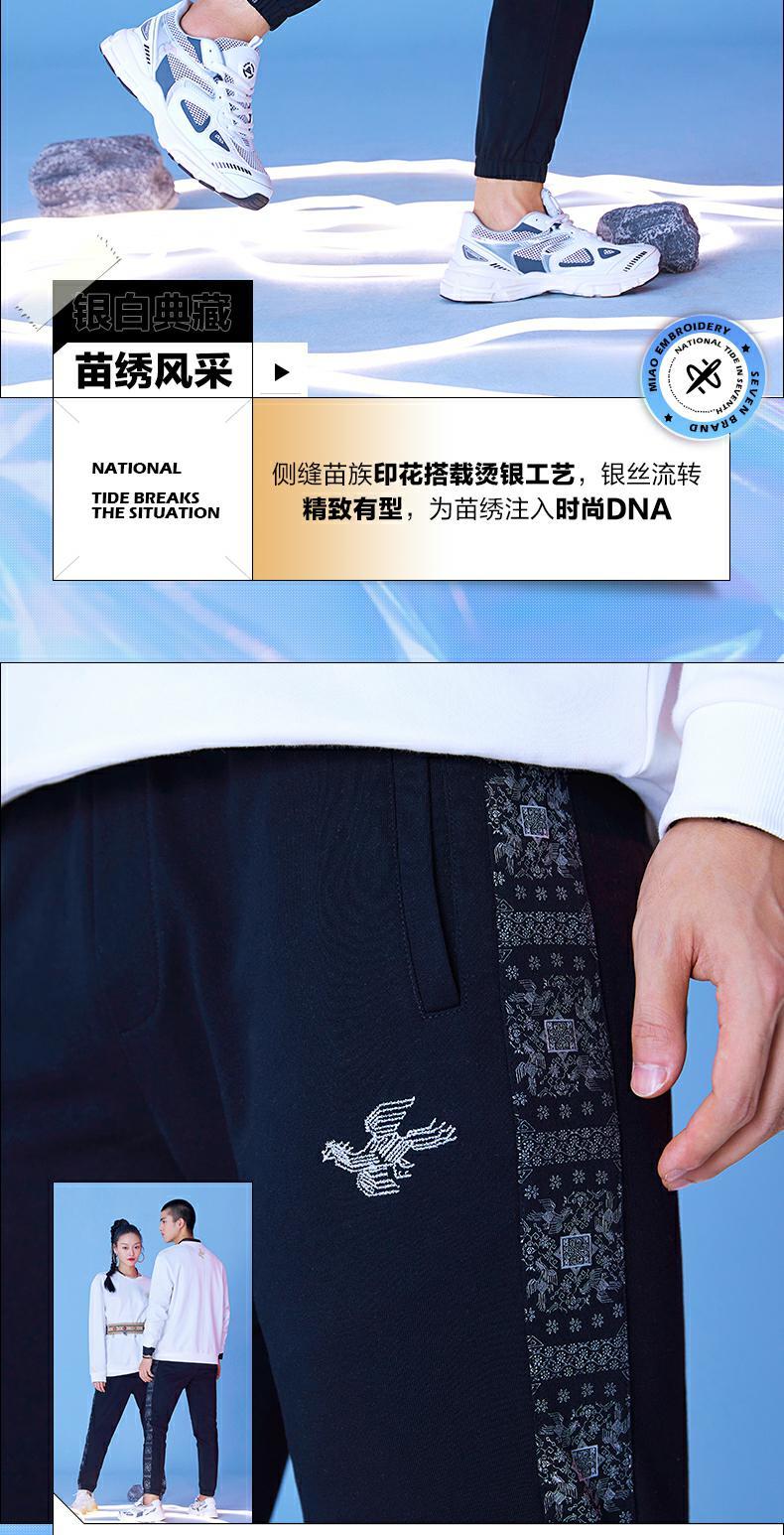 【特价】柒牌休闲长裤男非遗苗绣运动潮流简约印花松紧裤黑色修身束脚裤子 121H71070