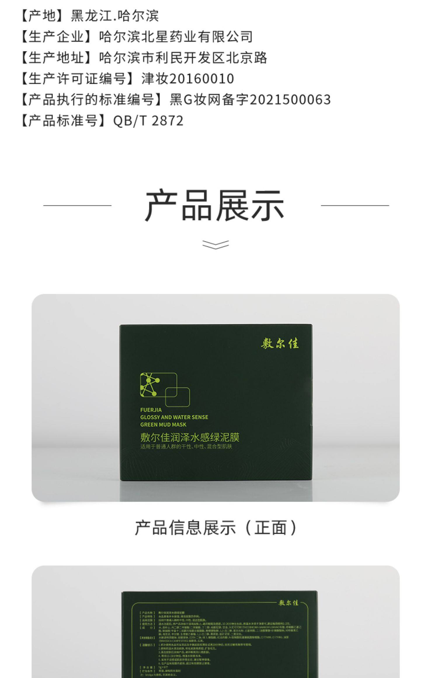 敷尔佳绿泥膜涂抹面膜润泽亮肤调节清洁皮肤毛孔滋养补水保湿5G*8颗