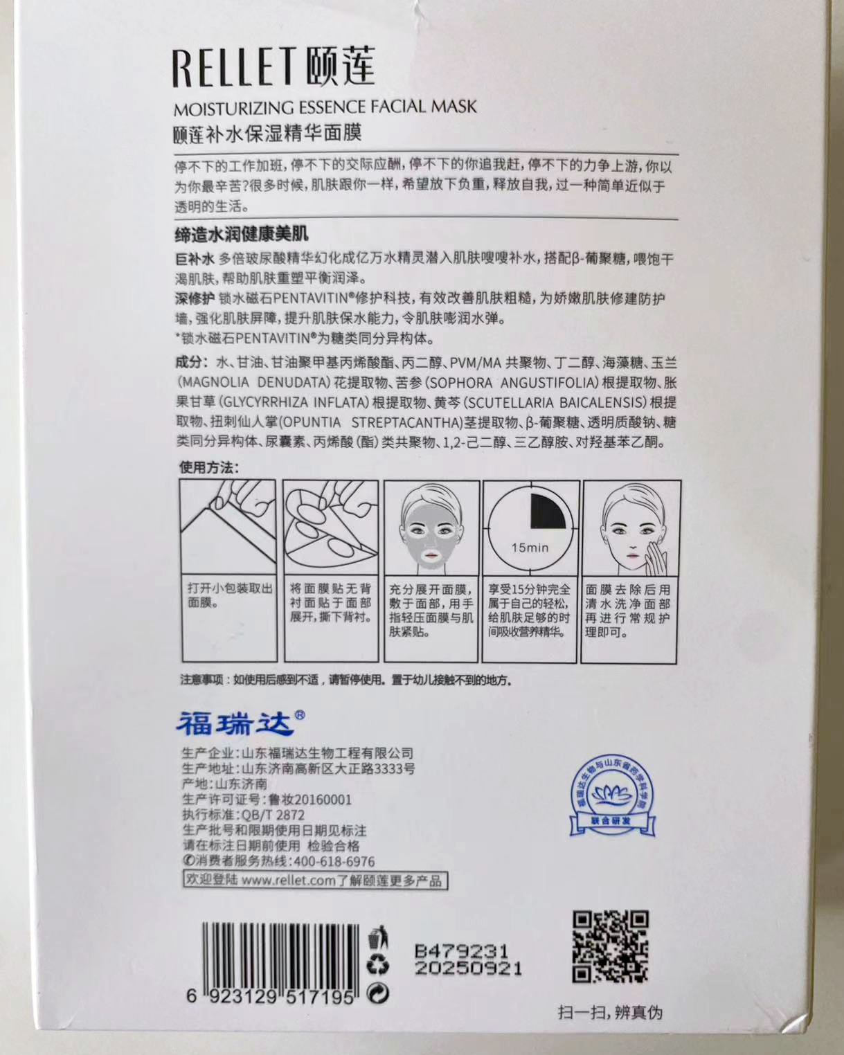 [买2送1] 福瑞达颐莲玻尿酸补水保湿面膜贴 补水紧致锁水毛孔清洁丝薄面膜