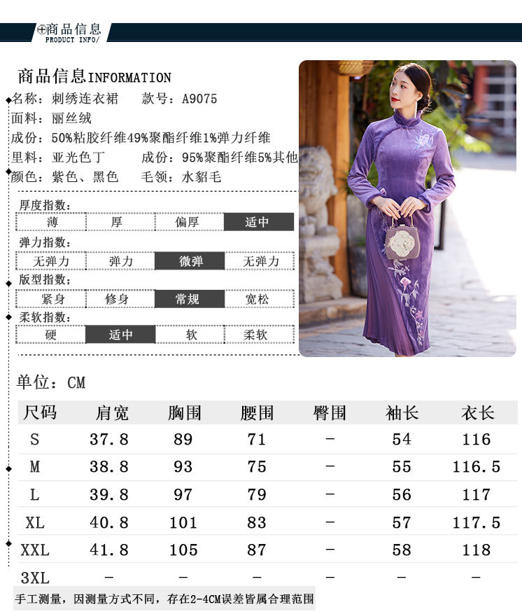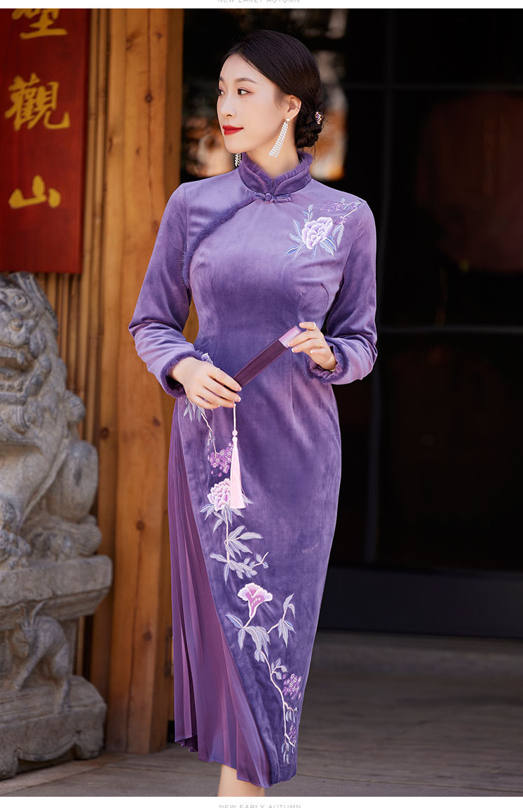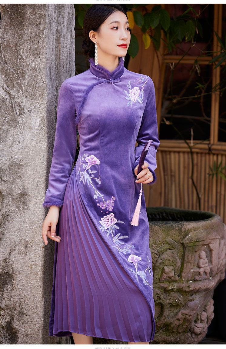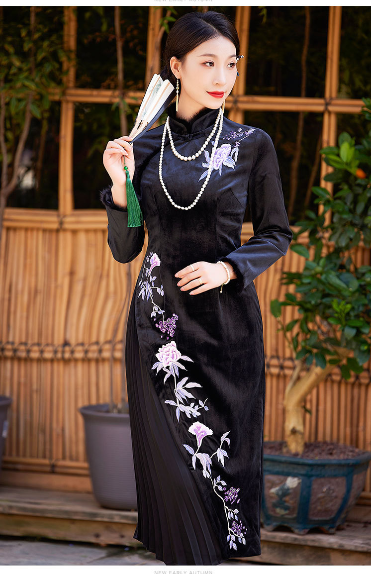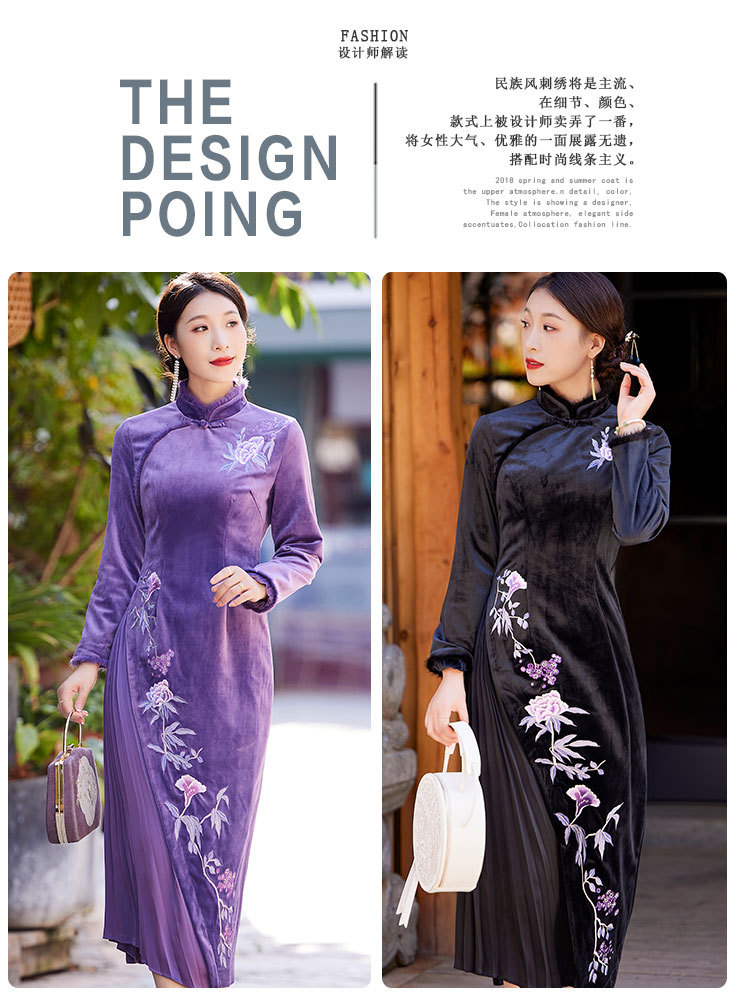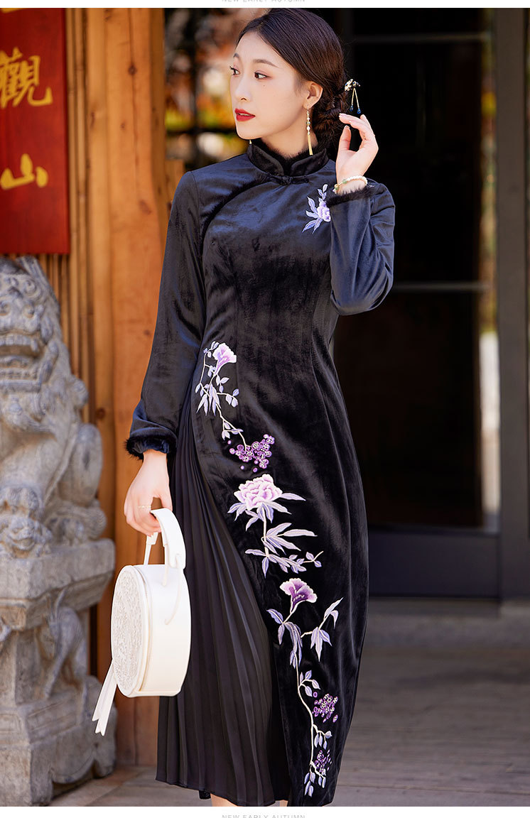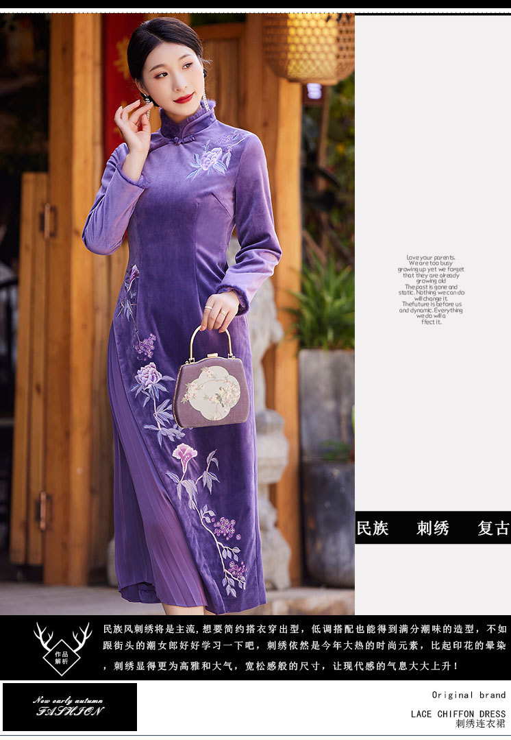 中国风衣服时尚改良旗袍丝绒国潮复古日常修身显瘦连衣裙OG-9075