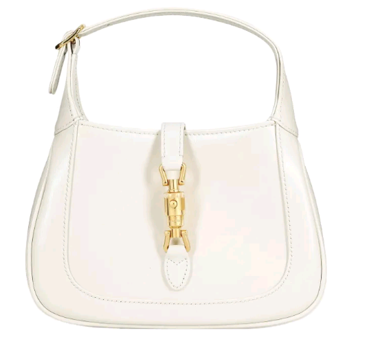 GUCCI古驰 Jackie 1961 金色锁扣搭配可拆卸延长肩带 皮革 半月腋下包 单肩包斜挎包 迷你 女款 白色