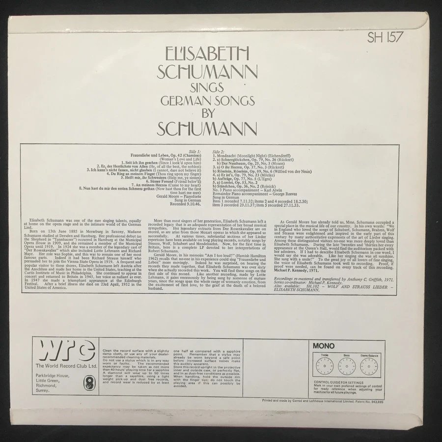 LP黑胶唱片 伊丽莎白 · 舒曼演唱德国歌曲精选