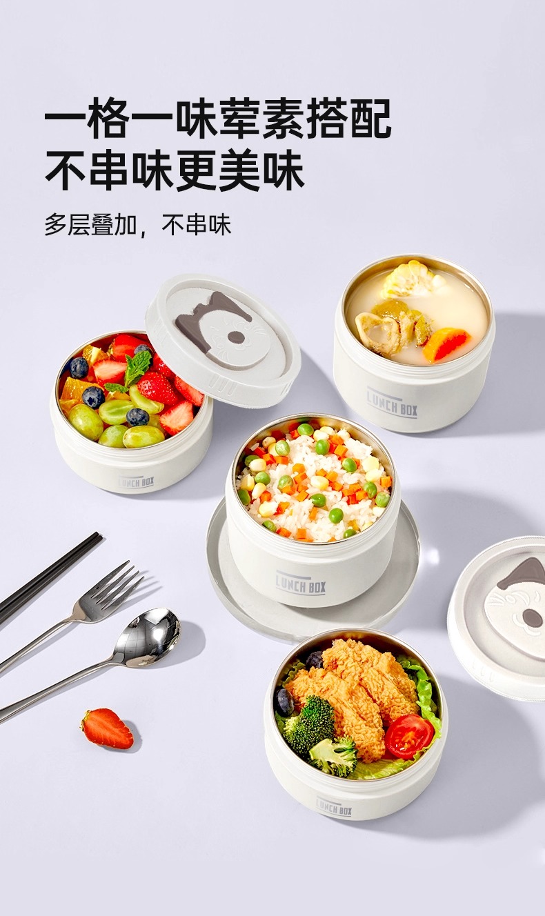隔热不烫手【304不锈钢 保温饭盒三件套】独立密封,不串味,三件套(400ml+600ml+保温袋),材质304不锈钢内胆+食品级PP外壳【容量】400ml+600ml