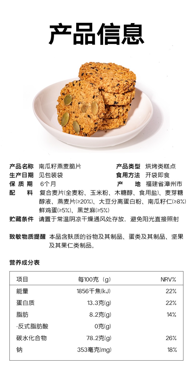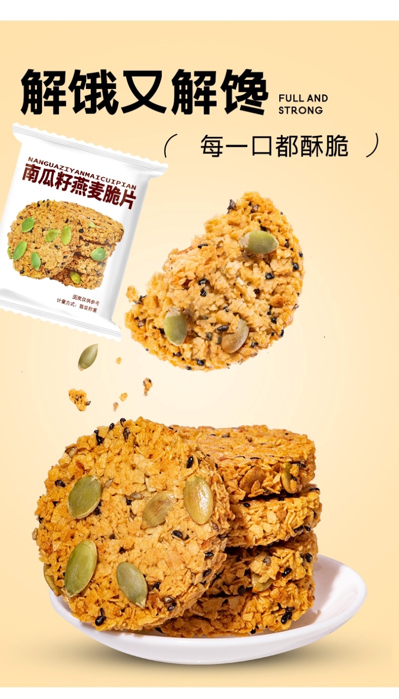 【轻食饱腹❗️南瓜籽燕麦脆片】0反式脂肪酸,不单独添加蔗糖,营养健康!谷物芝麻杂粮薄脆坚果炒货零食小吃办公室休闲食品
