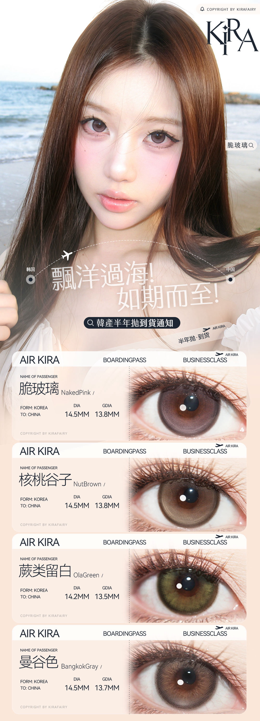 KIRA韩产保湿因子超舒适脆玻璃透明稚泪/半年抛美瞳