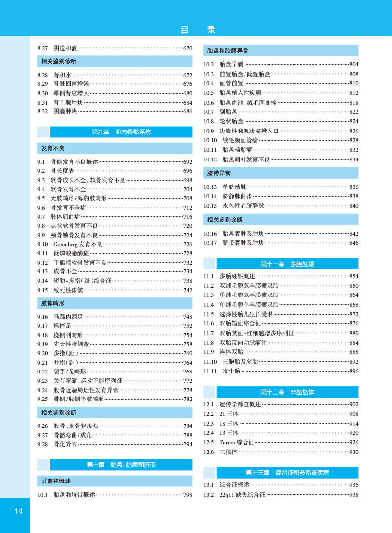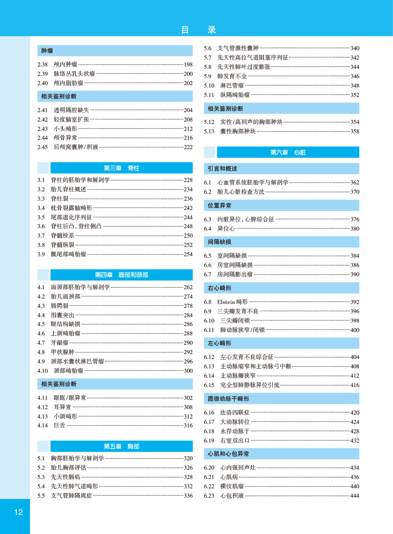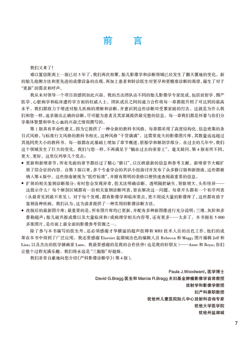 本书是美国妇产学会针对产科影像诊断从业人员专业提升编写的围生期诊断与筛查高级参考图库,专科医师培训的优秀教材。全书共16章314节,用5000多幅精美照片详细图解了胎儿大脑、脊柱、面部和颈部、胸、心脏、腹壁、胃肠道、泌尿生殖系统、肌肉骨骼、脐带、胎盘和胎膜在孕早、中、晚期的正常与常见异常情况的经典影像特征和相关鉴别论断,并对多胎妊娠、染色体异常、综合征和多系统疾病、感染性疾病等特殊状况的早期诊断进行了经验独到的讲解,对孕期母体相关疾病的影像论断与鉴别也进行了专门论述。
