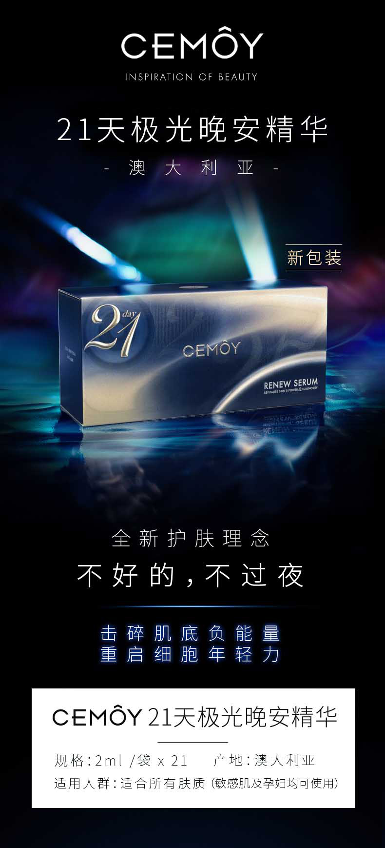 【品牌优选】澳洲CEMOY21天极光晚安精华夜间焕亮修护 补水提亮