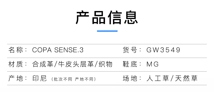 ADIDAS/阿迪达斯COPA SENSE.3 MG短钉中端足球鞋男GW3549