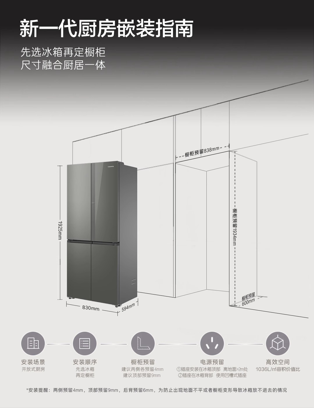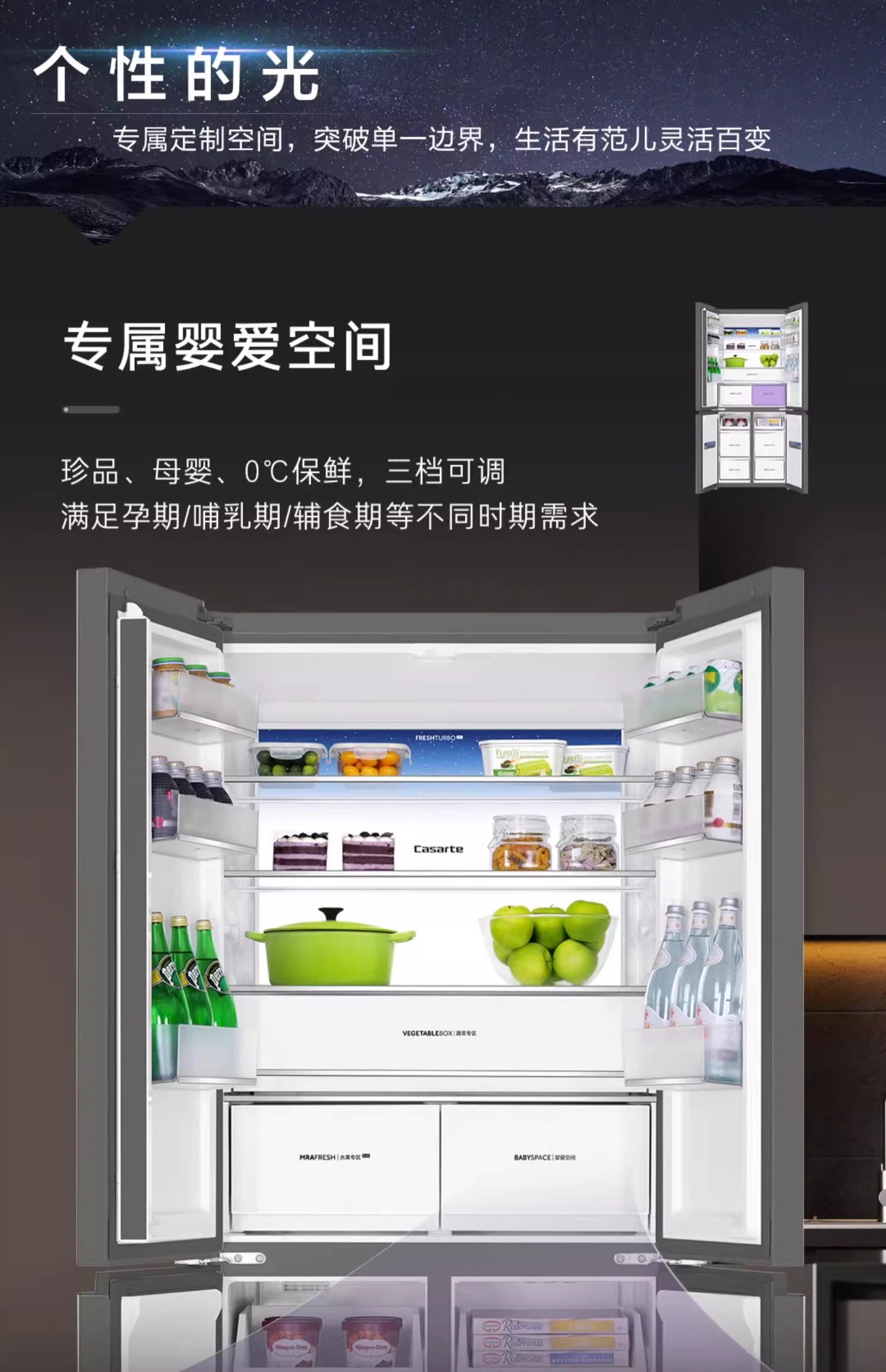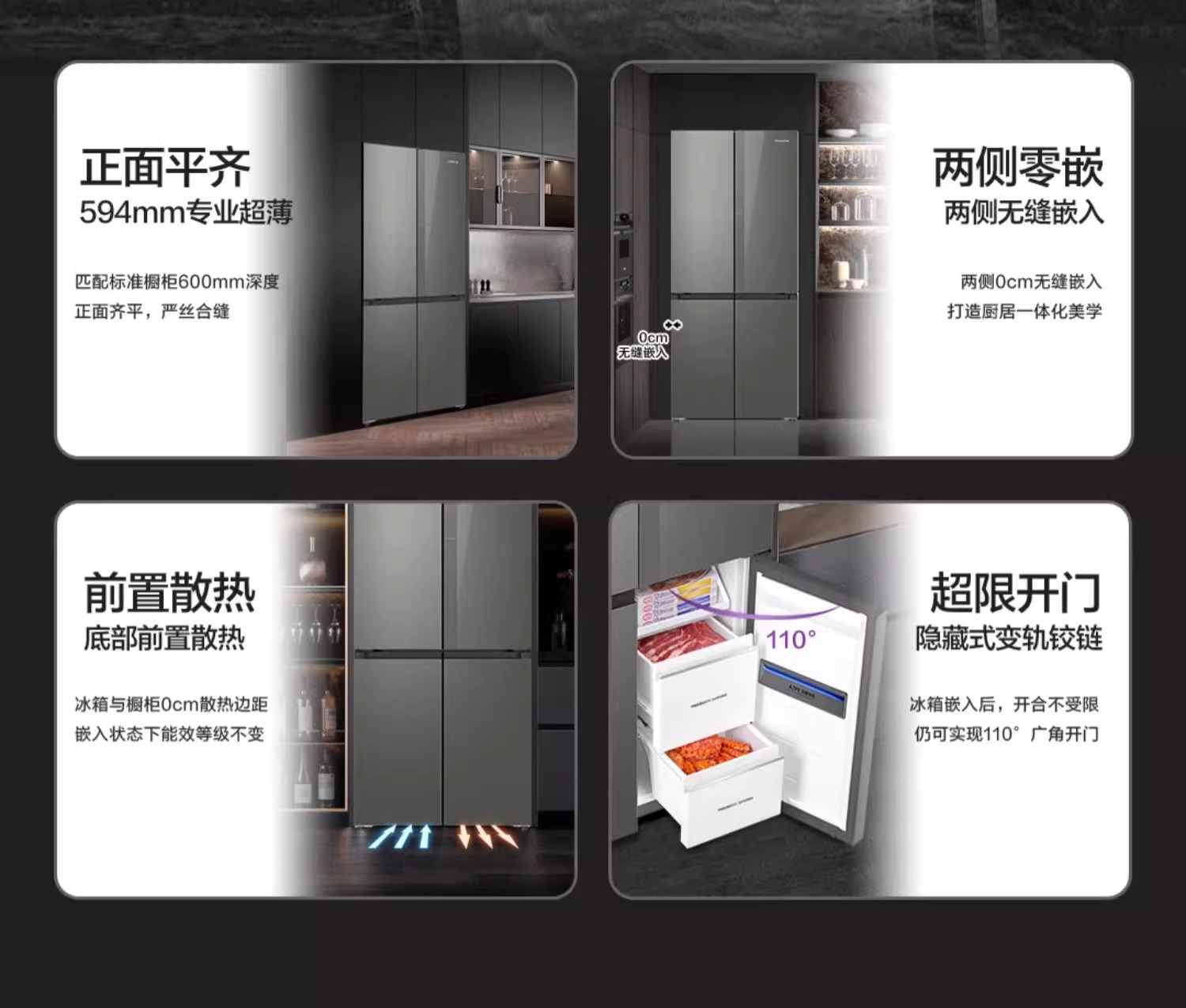 以旧换新卡萨帝揽光521L超薄零嵌入式十字四门风冷无霜家用电冰箱