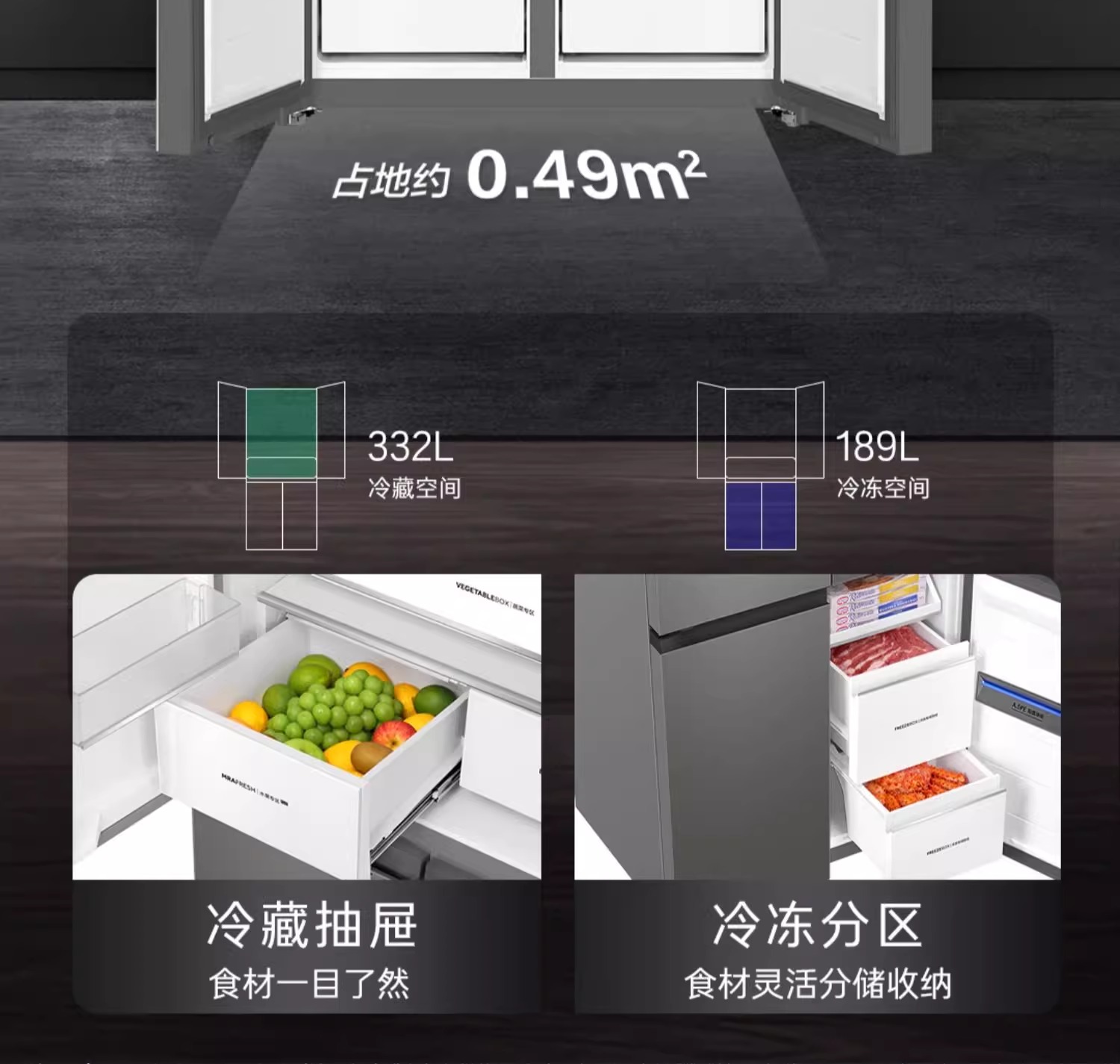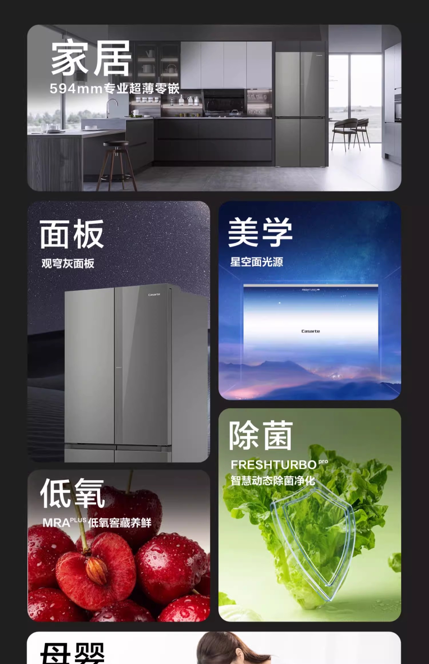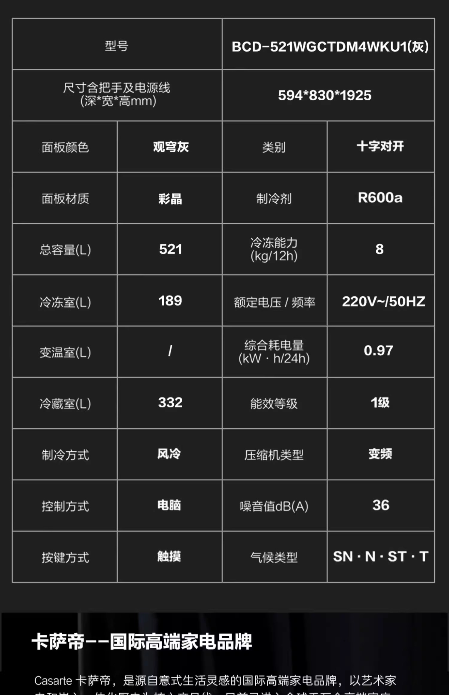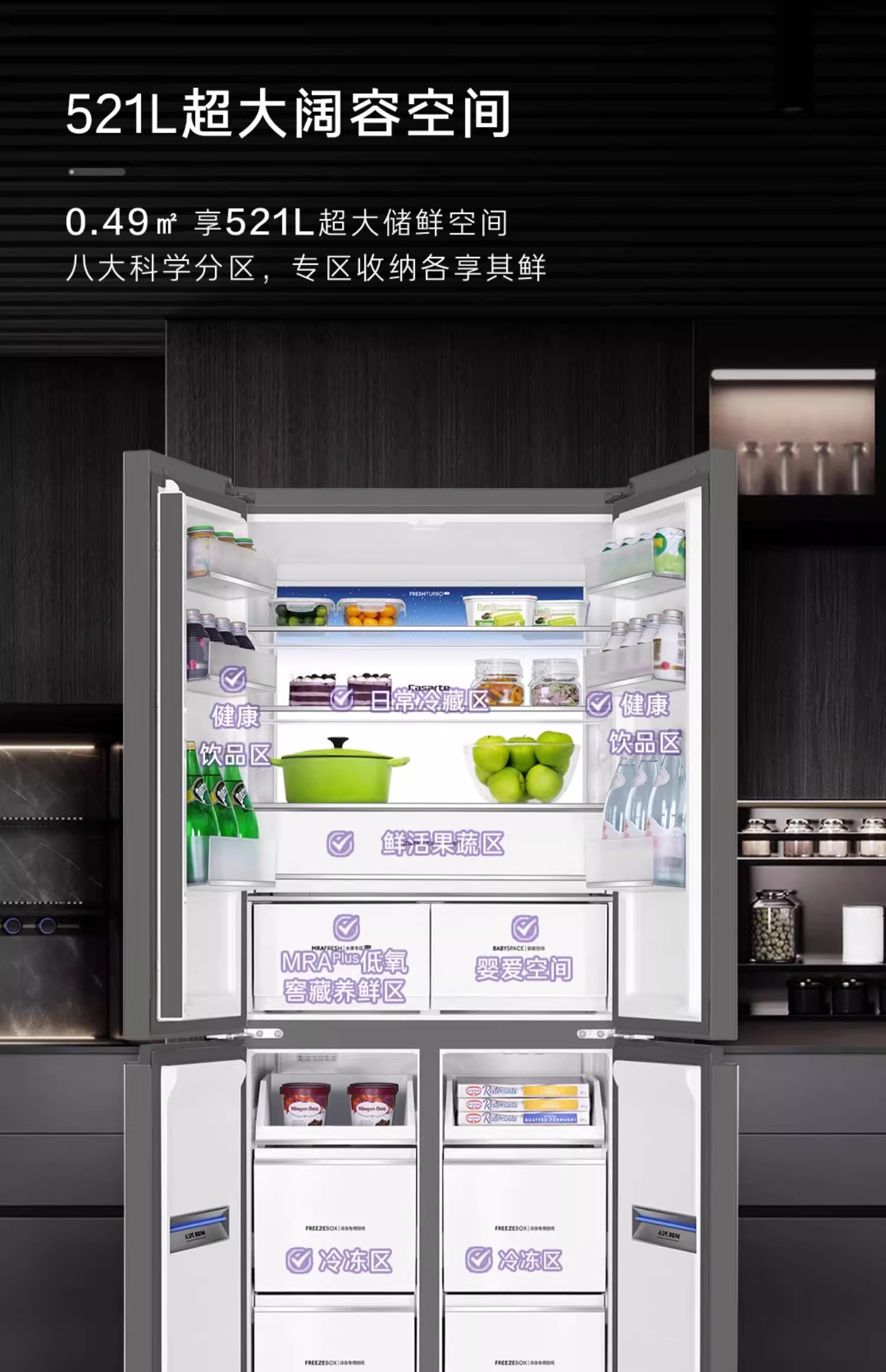 以旧换新卡萨帝揽光521L超薄零嵌入式十字四门风冷无霜家用电冰箱