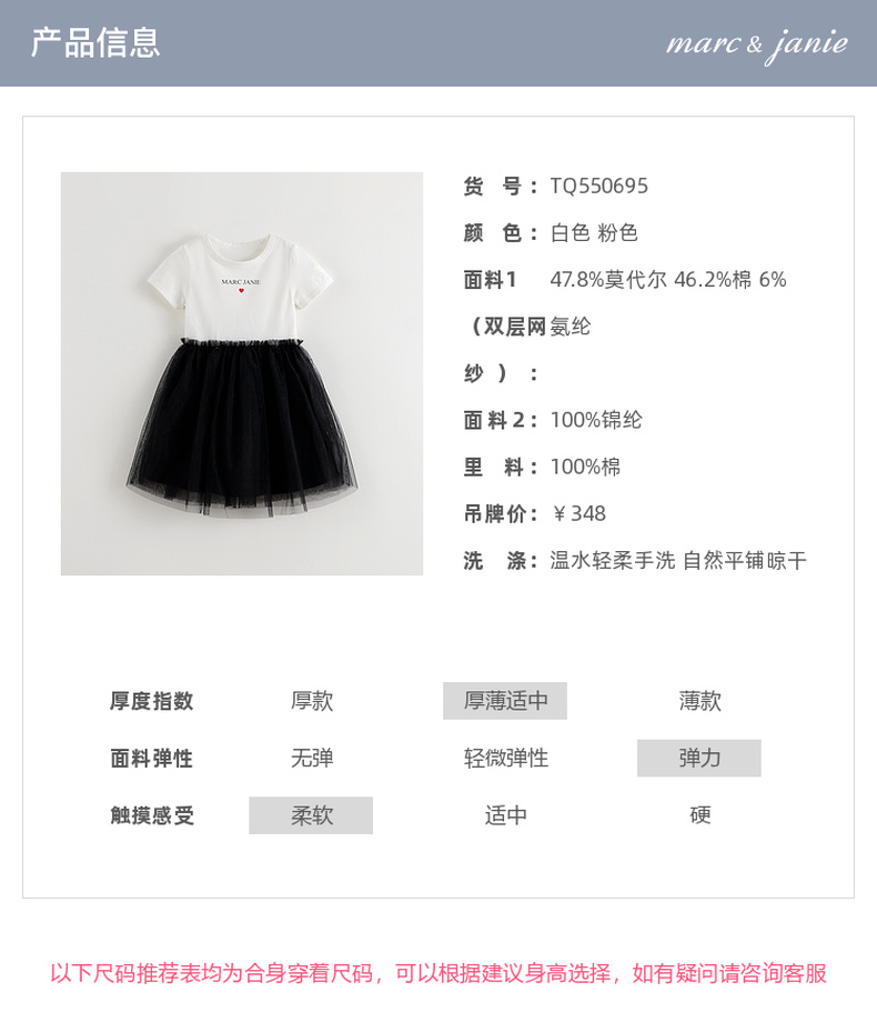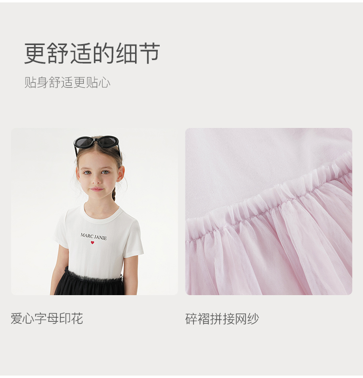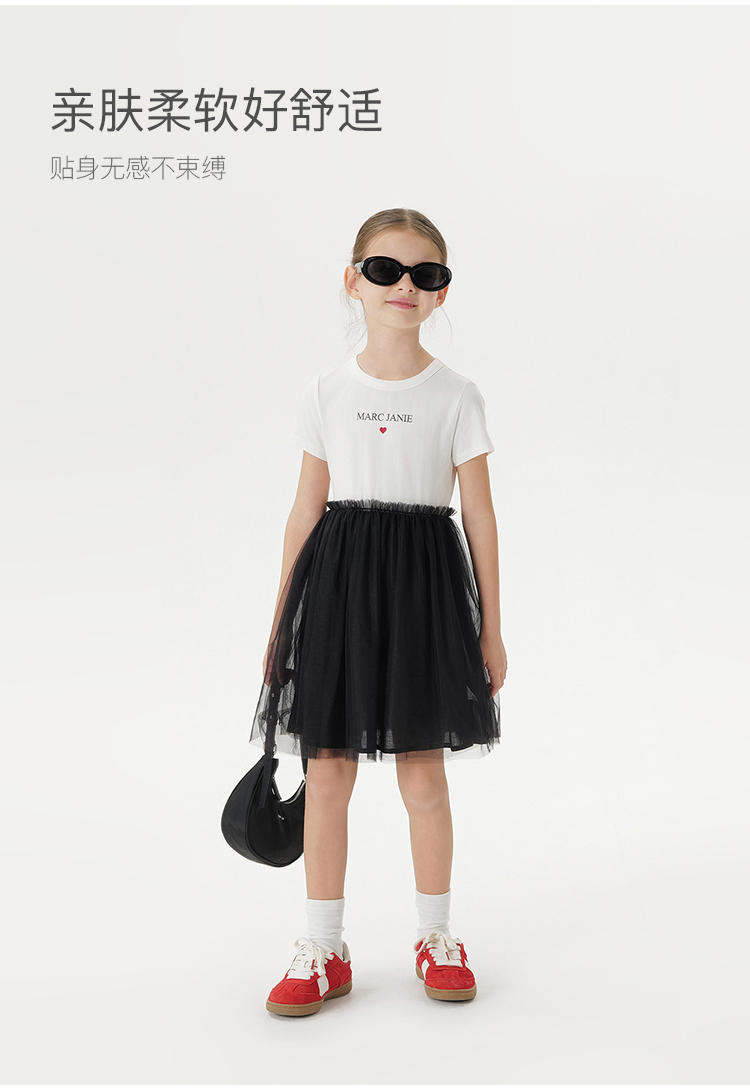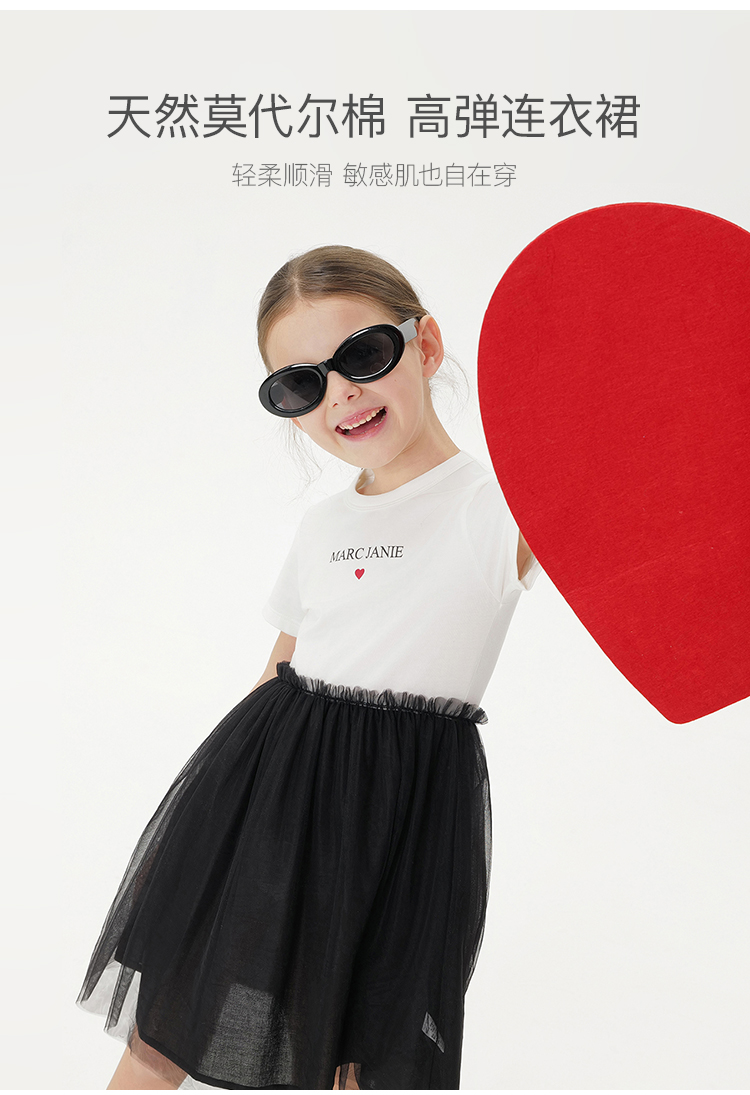 马克珍妮女童莫代尔棉高弹网纱裙儿童连衣裙2025年夏装新款550695