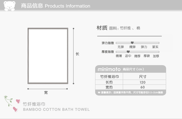 香港小米米用品婴儿竹纤维浴巾大毛巾120x60cm